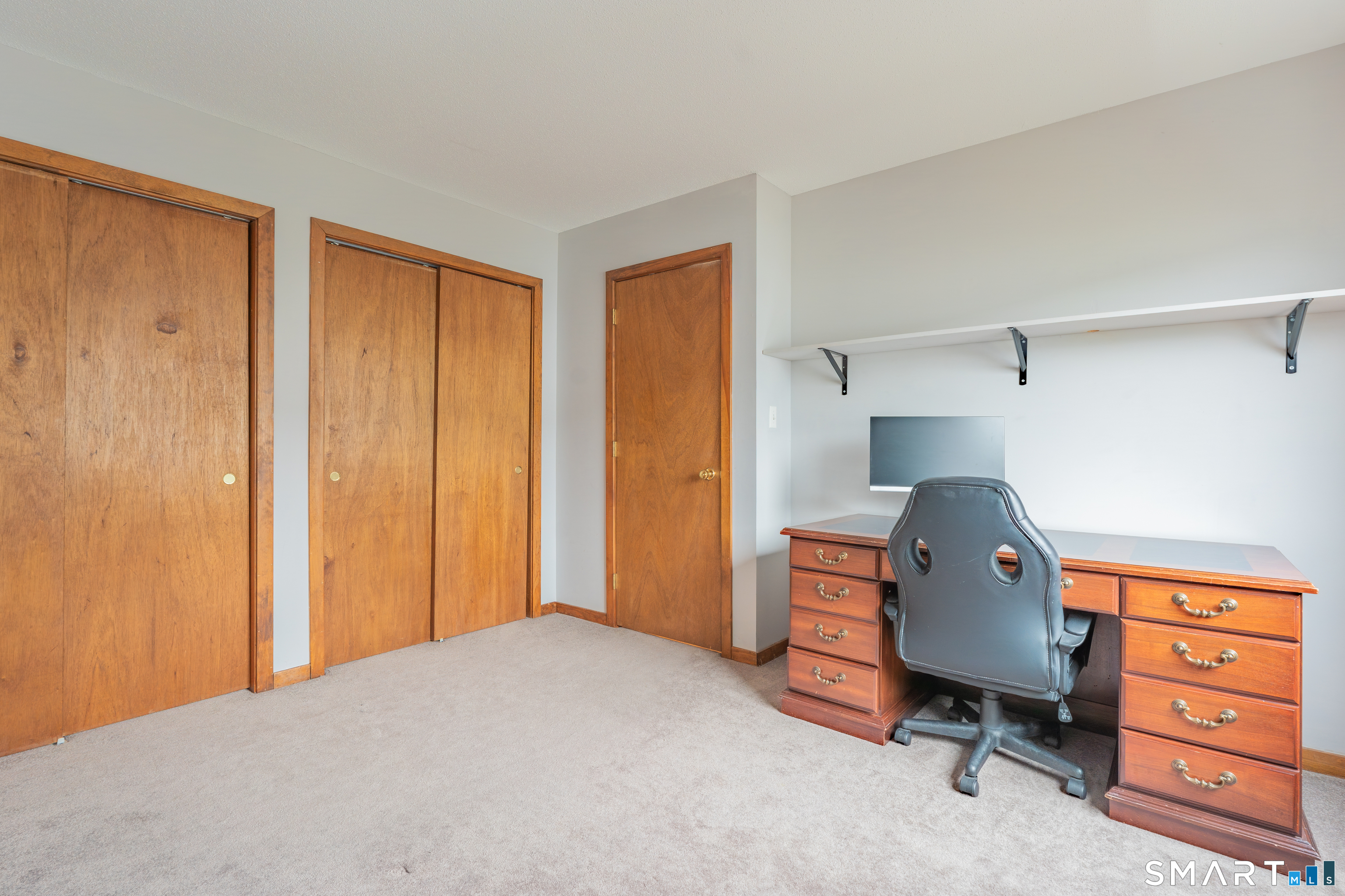 END UNIT! 2 car garage and storage room on the lowest level. Main level features a living room / dining room combo, a kitchen, a half bath, under the stairs storage, laundry closet, and coat closet. Upper level has an oversized primary bedroom with a walk-in closet, a second bedroom with double closets, and a full bath with linen closet. Lots of storage! This unit is located right off of Pamela Drive making it super easy to get to and from for both residents and visitors. This is one of the most convenient places to live in Wallingford. 1 mile away from Route 15 entry and access. Route 5 shopping areas right outside the complex. Improvements include: All new blinds in 2025. Dryer vent cleaned in 2025. New automatic garage door opener in 2024. New hot water heater in 2023. New Roof in 2023. New fridge and dishwasher in 2022. Listing Agents are the owners of the property.