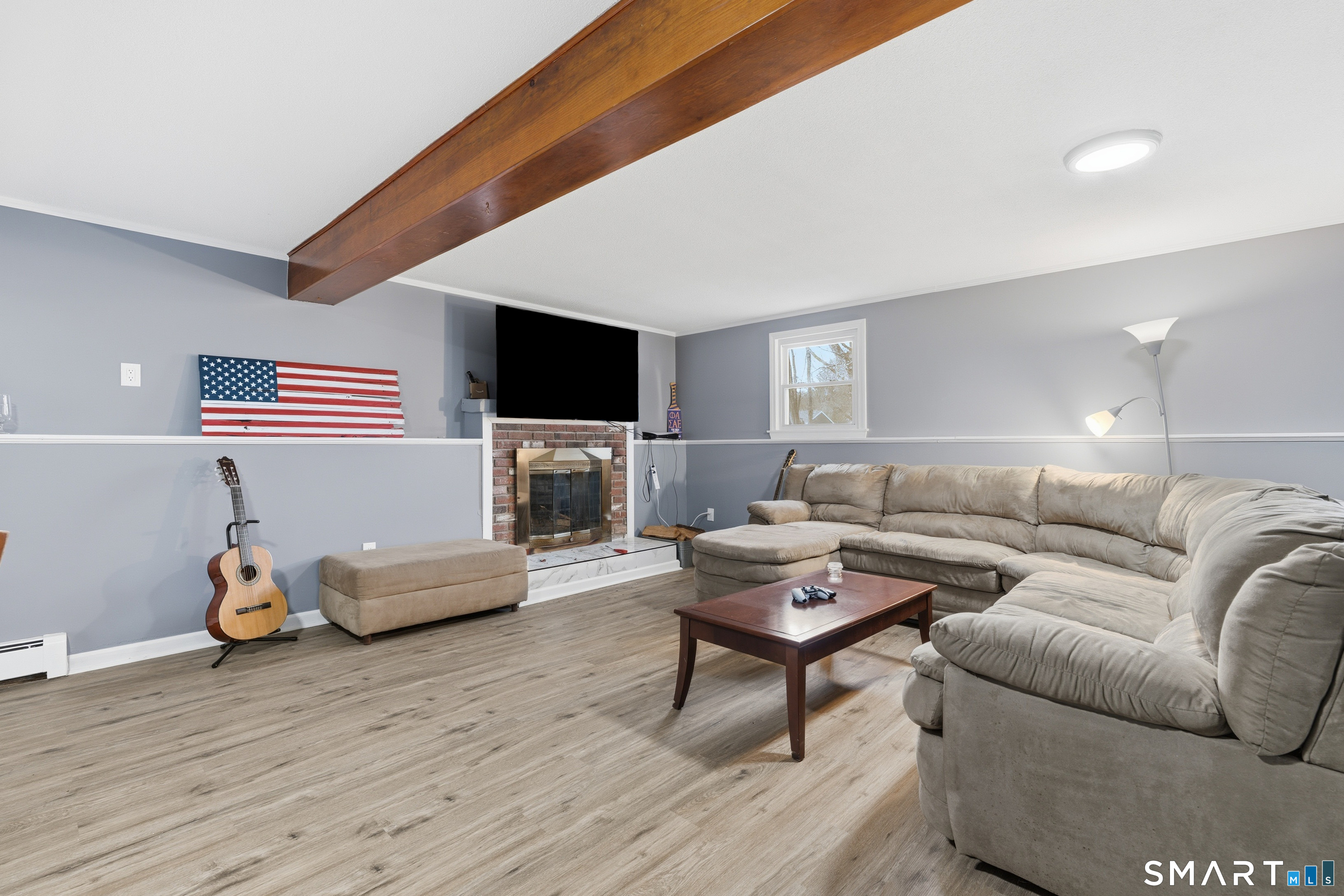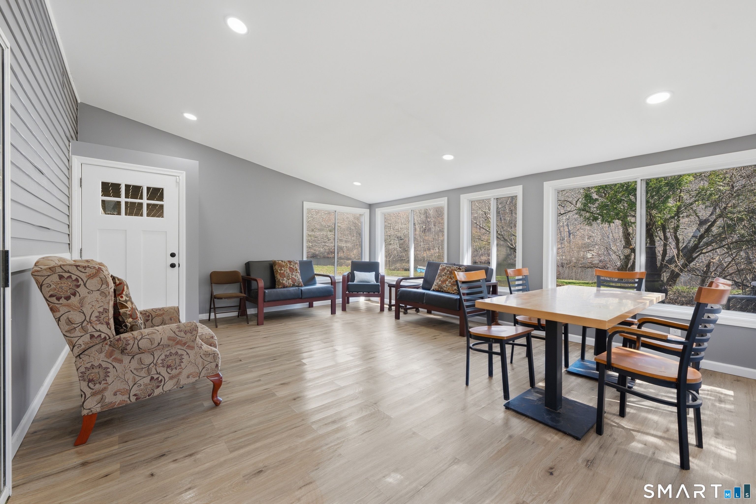 Fully remodeled 3-bedroom, 2 full bathroom home offering modern updates, flexible living space, and a unique waterfront-style backyard setting. This move-in ready property features a long list of major improvements completed in 2023, including a new roof, new septic system, new central air system with condenser, and more-giving buyers peace of mind on all the big-ticket items. The main level showcases beautiful hardwood floors, a bright living space with a new bay window, and seamless access to a brand new 30x10 Trex deck-perfect for outdoor entertaining and built for long-term durability. The finished lower level offers excellent versatility with a separate entrance, full bathroom, and kitchen-creating strong potential for a true in-law apartment, guest suite, or additional living space. The lower-level recreation room also features a large, working fireplace, adding warmth and character. A three-season porch off the rear adds even more usable space and connects you to the scenic backyard. Set on a picturesque lot with water running through the rear of the property, this home offers peaceful views and a rare natural setting. Optional lake rights available for just $100/year provide added recreational value. A turnkey property combining updates, flexibility, and location-don't miss this opportunity