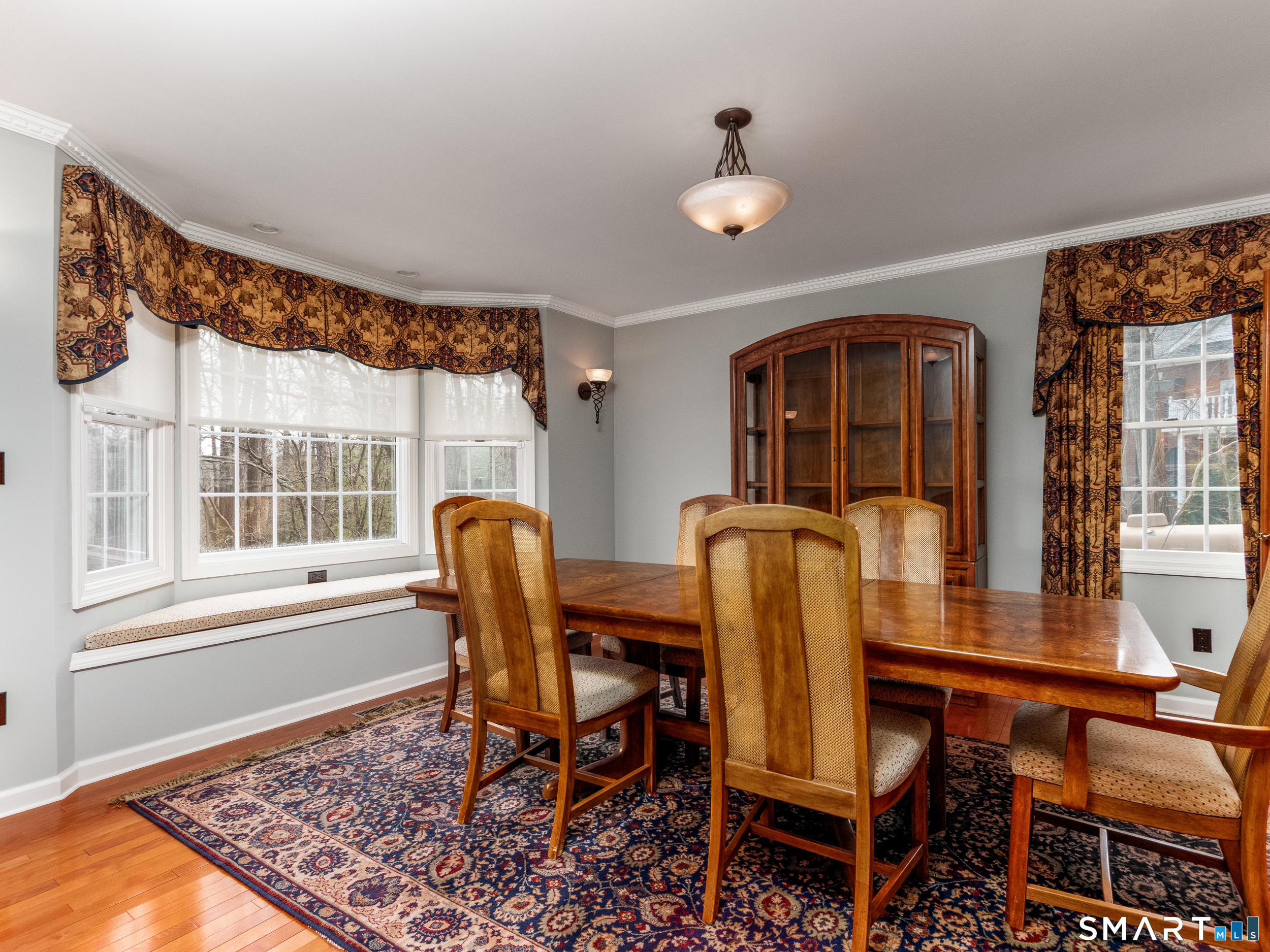 Stately custom-built Colonial offering over 3,400 sq ft of luxury living on a quiet West Woods cul-de-sac. This 4-bedroom, 2.5-bath masterpiece welcomes you with a dramatic two-story foyer featuring a Palladian window and natural light. The main level is designed for entertaining, boasting a chef's kitchen with cherry cabinetry, granite countertops, a center island with cooktop, double wall ovens, and dual pantries. Host guests in the formal dining room with a bay window seat, or relax in the formal living room-both featuring elegant French doors and hardwood flooring. The spacious family room serves as the heart of the home with a cozy fireplace and custom window seating. The upper level is highlighted by a palatial primary suite retreat, complete with a fireplace-warmed sitting area, vaulted ceilings, a private balcony, and dual closets. The spa-like ensuite features a Jacuzzi tub, skylight, and double vanities. Three additional bedrooms offer custom closet organizers and share a second full bath with a Jacuzzi tub. Outdoor living is an oasis featuring a fenced, heated inground pool (new liner 2024), professional landscaping, and a stone paver walkway. Notable upgrades include a whole-house Generac generator, newer architectural roof, new front door/shutters, freshly painted main level, and a circular driveway. Equipped with a security system and irrigation, this impeccably maintained home is a must-see for the discerning buyer.