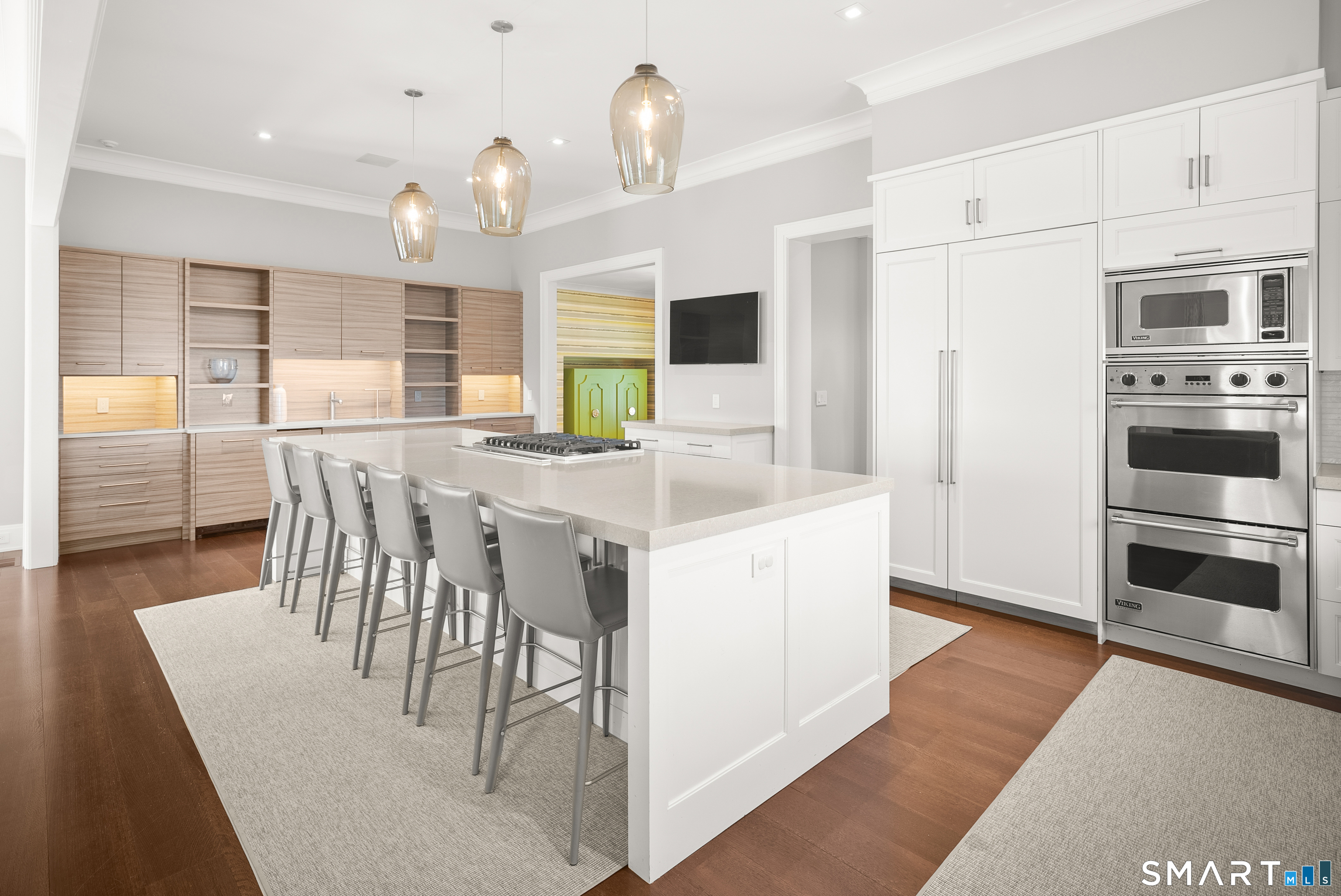 Located within the highly desirable Stony Point association, this exceptional home offers a rare combination of privacy, water views, and convenience just moments from the train, local restaurants, and everyday amenities. This particular home enjoys private dock membership, providing summer boat access just steps from your door. Completely transformed and expanded in 2016, the home features over 6,500sf of thoughtfully designed living space, including 6 bedrooms and 9 baths. Expansive panoramic windows capture serene water views and fill the home with natural light. A dramatic two-story entry foyer and soaring ceilings create an impressive sense of space. The open-concept kitchen/living room is a true centerpiece, featuring a massive 12-foot island with seating for 6, high-end appliances, dual dishwashers, a wine fridge, an ice maker - ideal for both everyday living and entertaining. Designed for effortless indoor-outdoor living, the home seamlessly connects its interior to exceptional outdoor entertaining areas. The spacious family room features sliders that open directly to the expansive covered patio with retractable screens, an outdoor kitchen, and a relaxing pool and spa. The 3rd floor great room has amazing water views, and features a 1/2 bath and wet bar. Additional highlights include a private office, whole house generator, 2 laundry rooms, sauna, a mudroom, and a charming 'hidden' playroom. A truly turnkey offering, this home embodies the very best of the Stony Point