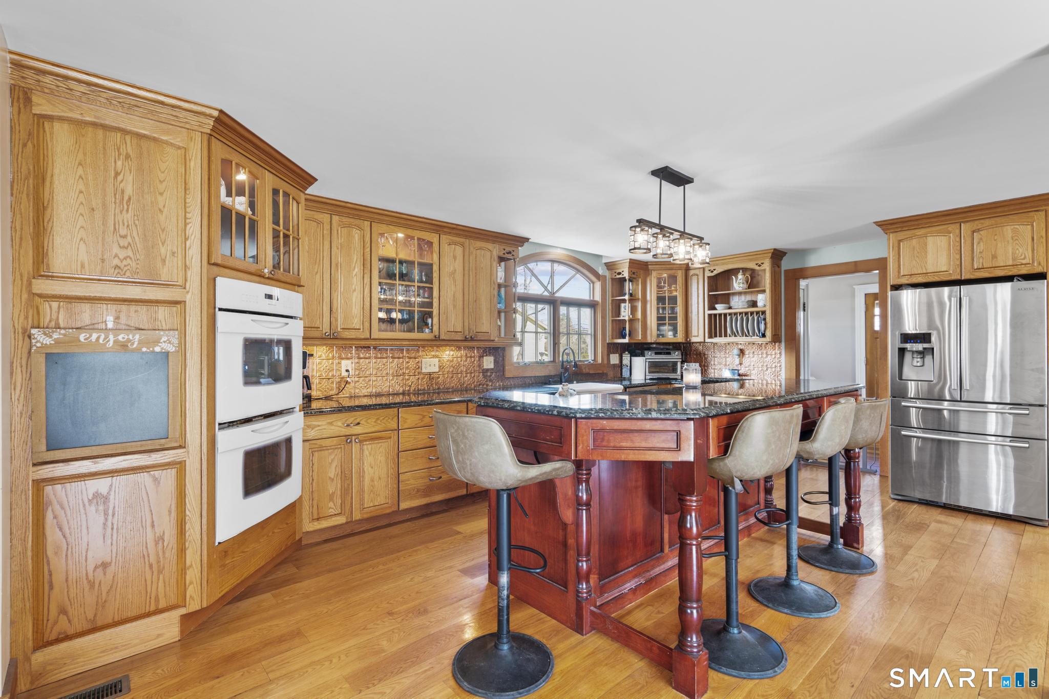 Beautifully maintained 3-bedroom, 2.5-bath Colonial with a two-car garage, offering spacious living areas and an open layout ideal for both everyday living and entertaining. A bright living/sunroom with a cozy fireplace provides the perfect spot to relax or enjoy your morning coffee. French doors lead to the dining area and kitchen, featuring granite countertops, double ovens, and a large island overlooking the great room. The great room is incredibly spacious and filled with natural light and features a ceiling fan, with French doors opening to a generous deck and fully fenced backyard, perfect for gatherings. Upstairs includes two spacious bedrooms, a full bath, and a large primary suite with a spa-like bath, separate shower, soaking tub, and a convenient walk-in laundry room. The walk-out lower level offers great flexibility for multigeneration living or entertaining, with a private office and a separate media room complete with projector and sound system. Located within walking distance to Gulf Beach and close to Milford's vibrant downtown, dining, shopping, and year-round activities. Easy access to the train, Merritt Parkway, and I-95. A perfect blend of comfort, space, and location.