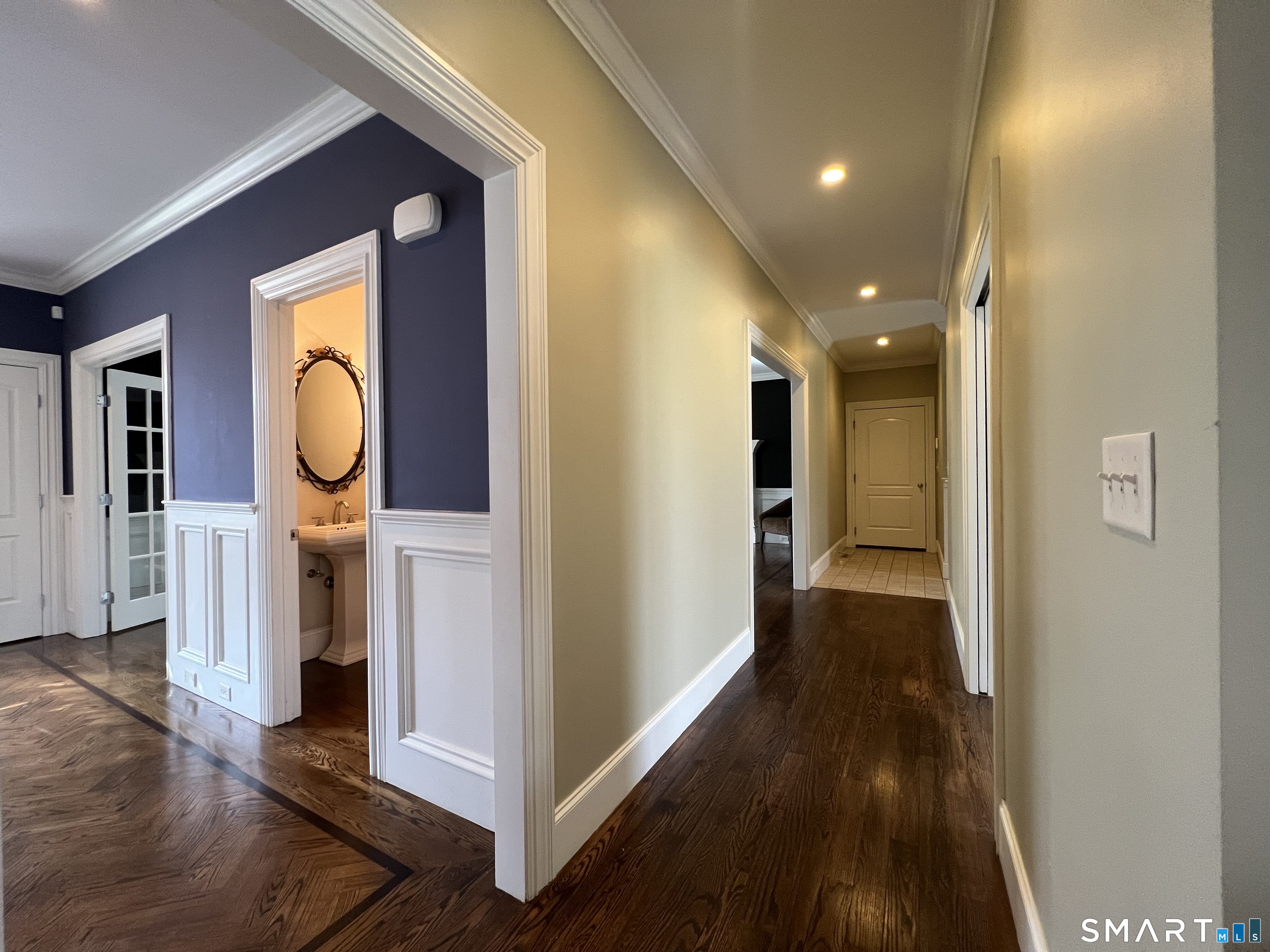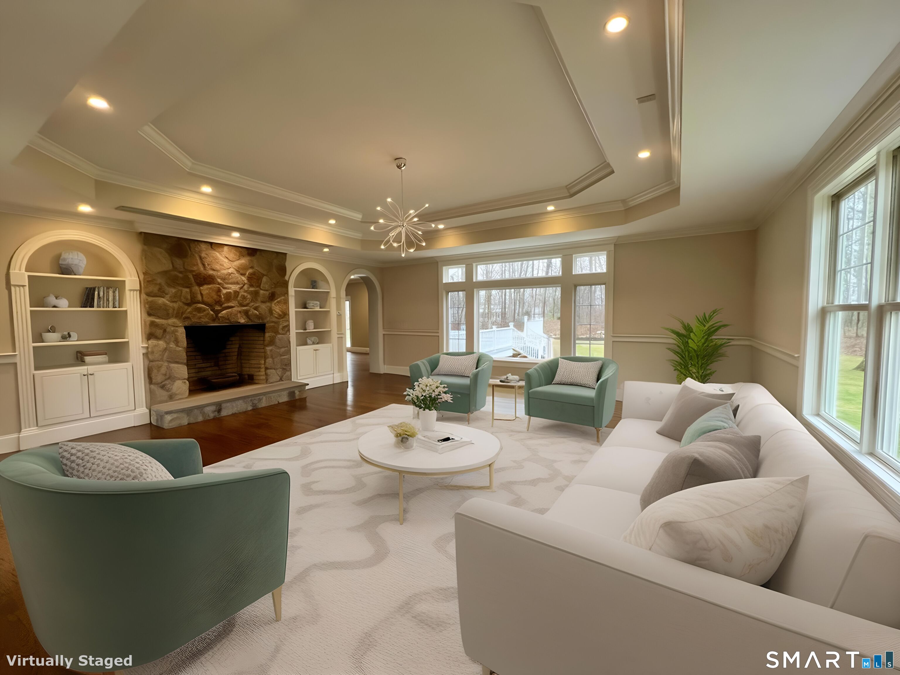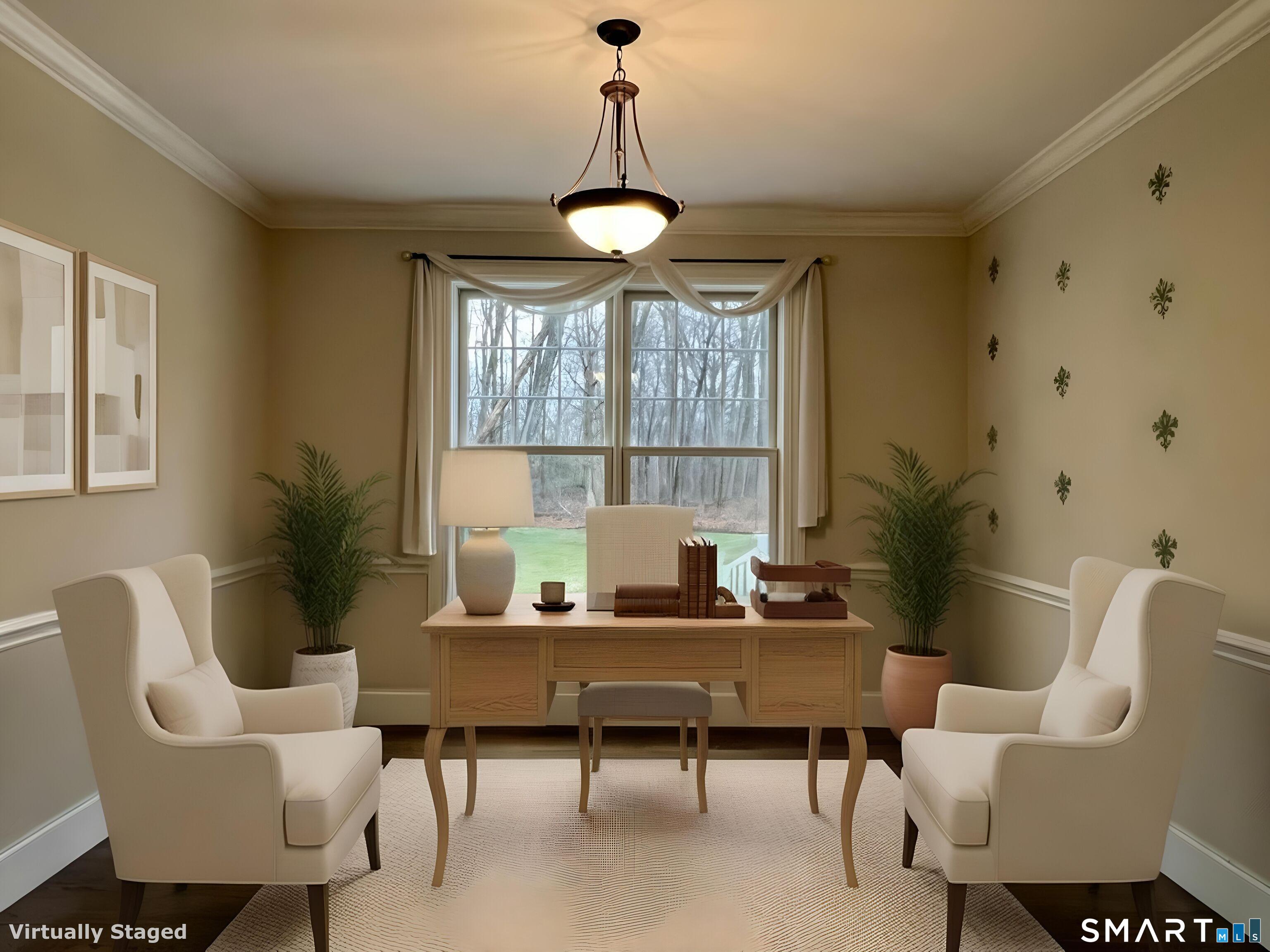 Set at the end of a tranquil cul-de-sac, this distinguished 4-bedroom, 6-bath Colonial offers refined elegance, exceptional craftsmanship, and a rare sense of privacy. A dramatic living room welcomes you with coffered ceilings, oversized windows, a sophisticated home theater system, and one of two beautifully appointed fireplaces-creating an ideal setting for both grand-scale entertaining and intimate gatherings. The chef's kitchen serves as the heart of the home, featuring premium stainless steel Thermador appliances and custom cabinetry. A private home office provides a quiet, polished workspace tailored to today's lifestyle. The upper level is anchored by a sumptuous primary suite with dual walk-in closets and a spa-inspired en-suite bath designed for ultimate relaxation. Additional bedrooms are generously proportioned, each complemented by impeccably finished bathrooms. A partially finished basement and attic offer flexible space for a fitness studio, media lounge, or refined guest accommodations. Outdoors, an expansive deck transitions seamlessly to an above-ground pool-ideal for hosting summer soirees or enjoying peaceful moments in the lush, level backyard framed by mature trees. Completing the residence is a rare four-car attached garage. A graceful blend of classic Colonial architecture and modern luxury, this exceptional home presents a rare opportunity to enjoy elevated living in a private, picturesque setting.