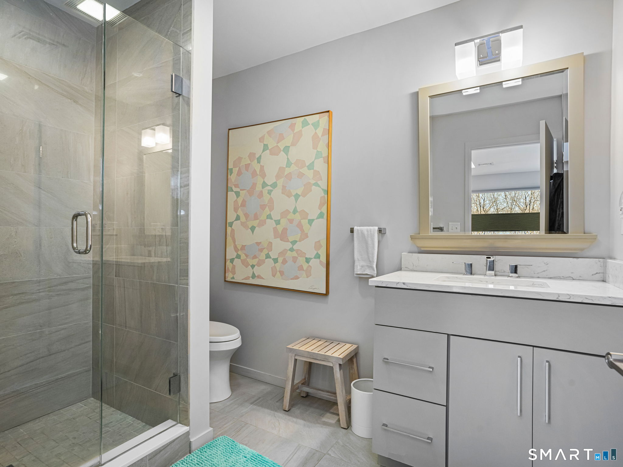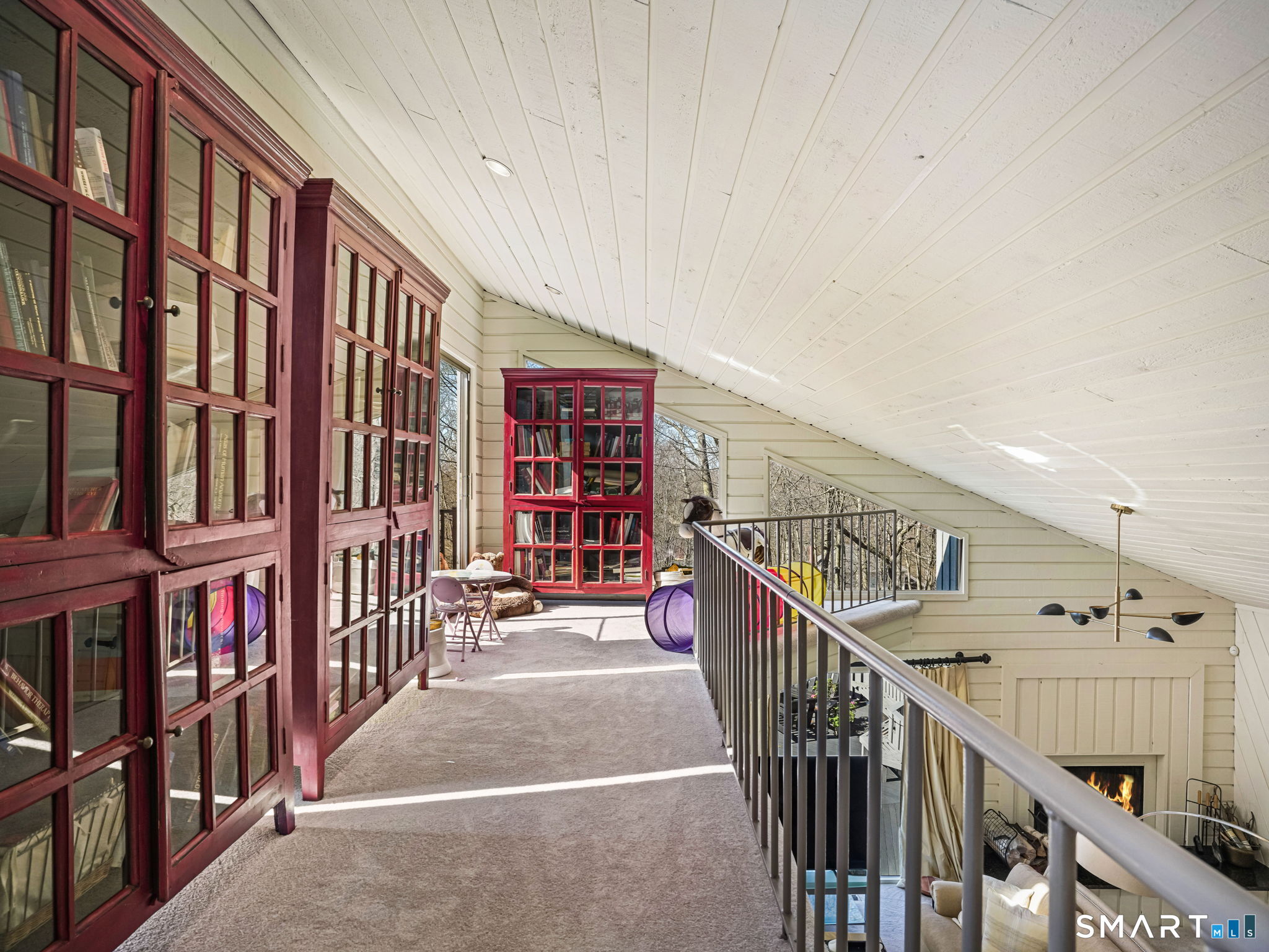 A distinctive architectural statement offering a rare blend of design, scale, and lifestyle, set in the highly desirable Nichols section of Trumbull with deeded rights to Dogwood Lake. Just under 5,000 sf, this thoughtfully updated & exceptionally well-maintained residence reflects a true attention to detail throughout, from the intentional window placement that captures natural light & views to the custom hardwood flooring patterns. Defined by soaring ceilings, walls of glass & a seamless connection between indoor and outdoor living, the main living areas open to a private backyard retreat featuring an in-ground pool and multiple entertaining spaces. The kitchen is a true centerpiece, designed w/ custom Segue by Ovation cabinetry, GE Monogram appliances, a walk-in pantry spanning the entire back wall, and an oversized island with glass countertops that anchors the space while flowing effortlessly into the surrounding rooms. A stunning dining area w/ vaulted ceilings, skylights, and wraparound glass creates a dramatic, light-filled setting with beautiful views of the property. Multiple balconies further enhance the connection to the outdoors. The primary suite offers a private retreat with a spacious walk-in closet and two fully renovated, spa-like bathrooms, while every bathroom throughout the home has been updated with clean, modern finishes. The outdoor setting delivers a true resort-style experience & deeded rights to Dogwood Lake offer an added lifestyle benefit.