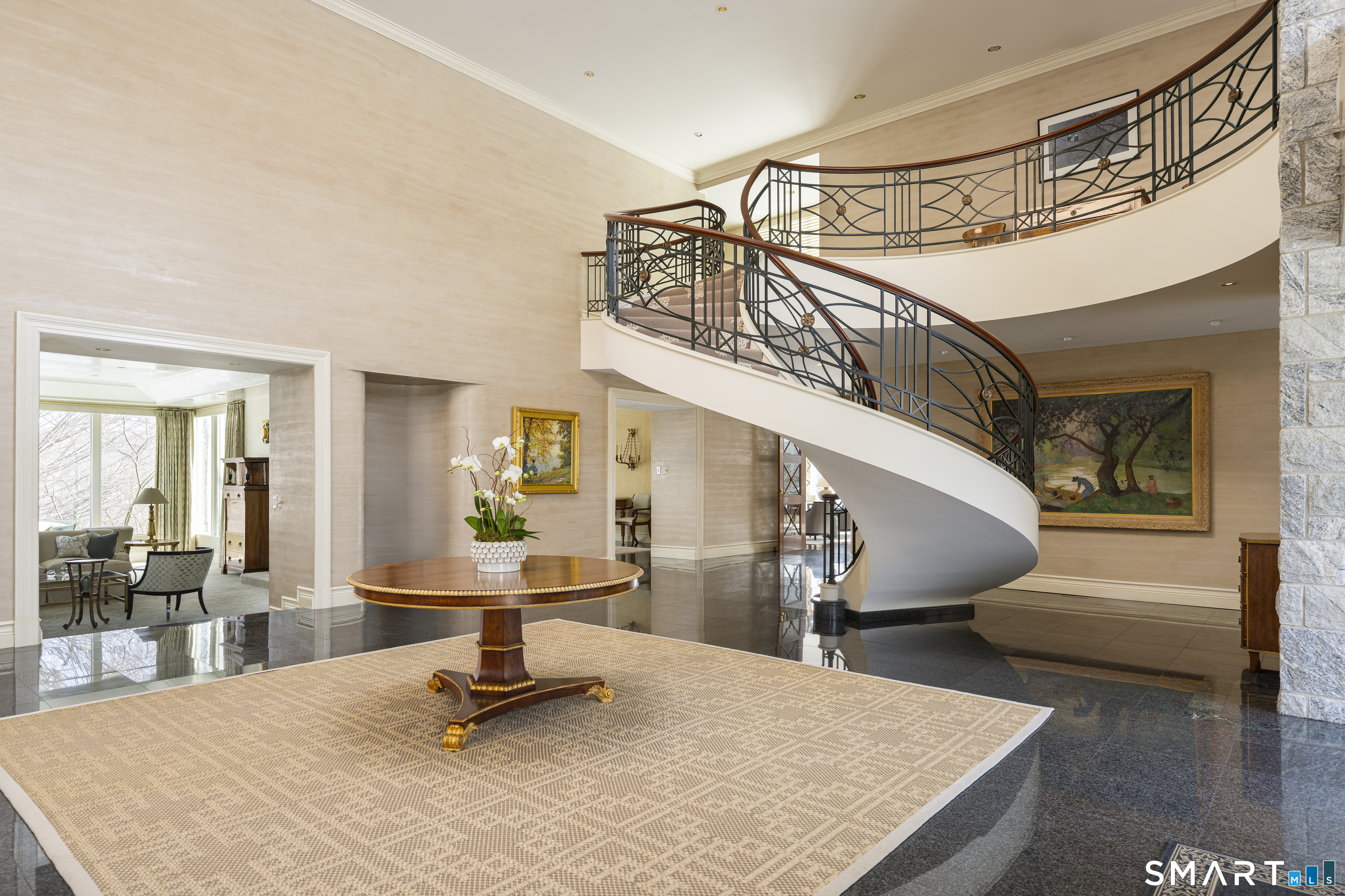 Set on 8 private acres in one of Greenwich's most prestigious enclaves, 38 Partridge Hollow Road offers luxury and tranquility and the ultimate privacy. Boarded by protected land on three sides, this five-bedroom, 7.5-bath home blends timeless elegance with modern sophistication, featuring a first-floor primary suite with dual baths, separate closets, and access to a private office and gym. Bright, sunlit interiors and a chef's kitchen flow into inviting living spaces ideal for entertaining. Outdoors, enjoy a pool, tennis court, and beautifully landscaped grounds. This exceptional estate offers both convenience and serenity.
