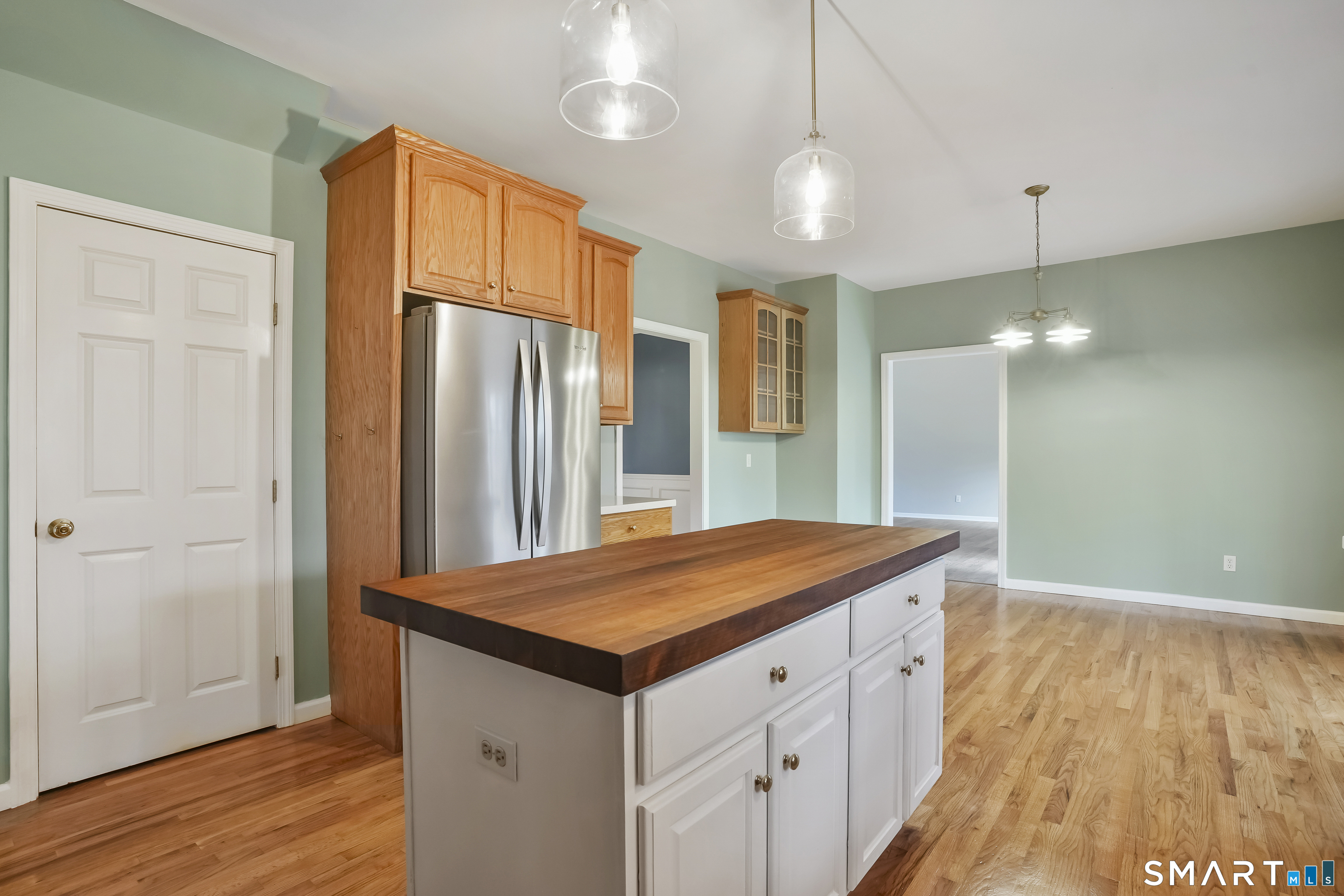 Discover timeless elegance and modern comfort in this beautifully refinished Colonial set on 2 private acres with breathtaking golf course views. The Welcoming foyer with custom tilework and spacious closet sets the tone. The expansive family room features vaulted ceilings, a wood-burning fireplace, and newly refinished floors. The updated eat-in kitchen combines style and function with new countertops, a designer tile backsplash, mahogany butcher block, and brand-new appliances, including a dishwasher, sink, and stove. A main-level washer and dryer hook up add everyday ease. Sliding doors open to a large screened-in porch, ideal for outdoor dining and enjoying peaceful surroundings. The formal dining room showcases hardwood floors and custom wainscoting, while the formal living room offers additional versatile space. A remodeled first-floor bath features tiled flooring, wainscoting, and a distinctive custom vanity. Upstairs, four generously sized bedrooms provide ample closet space and wall-to-wall carpeting. The hall bath includes a new cast iron tub, cultured marble counters, and dual sinks with illuminated mirrors. The primary suite offers vaulted ceilings, a walk-in closet, and a newly tiled walk-in shower. Brand-new roof, refurbished furnace with thermal upgrades, C/A, central vac, dual oil tanks, a new water treatment system, and city sewers. A three-car garage and expansive driveway ensure ample parking.