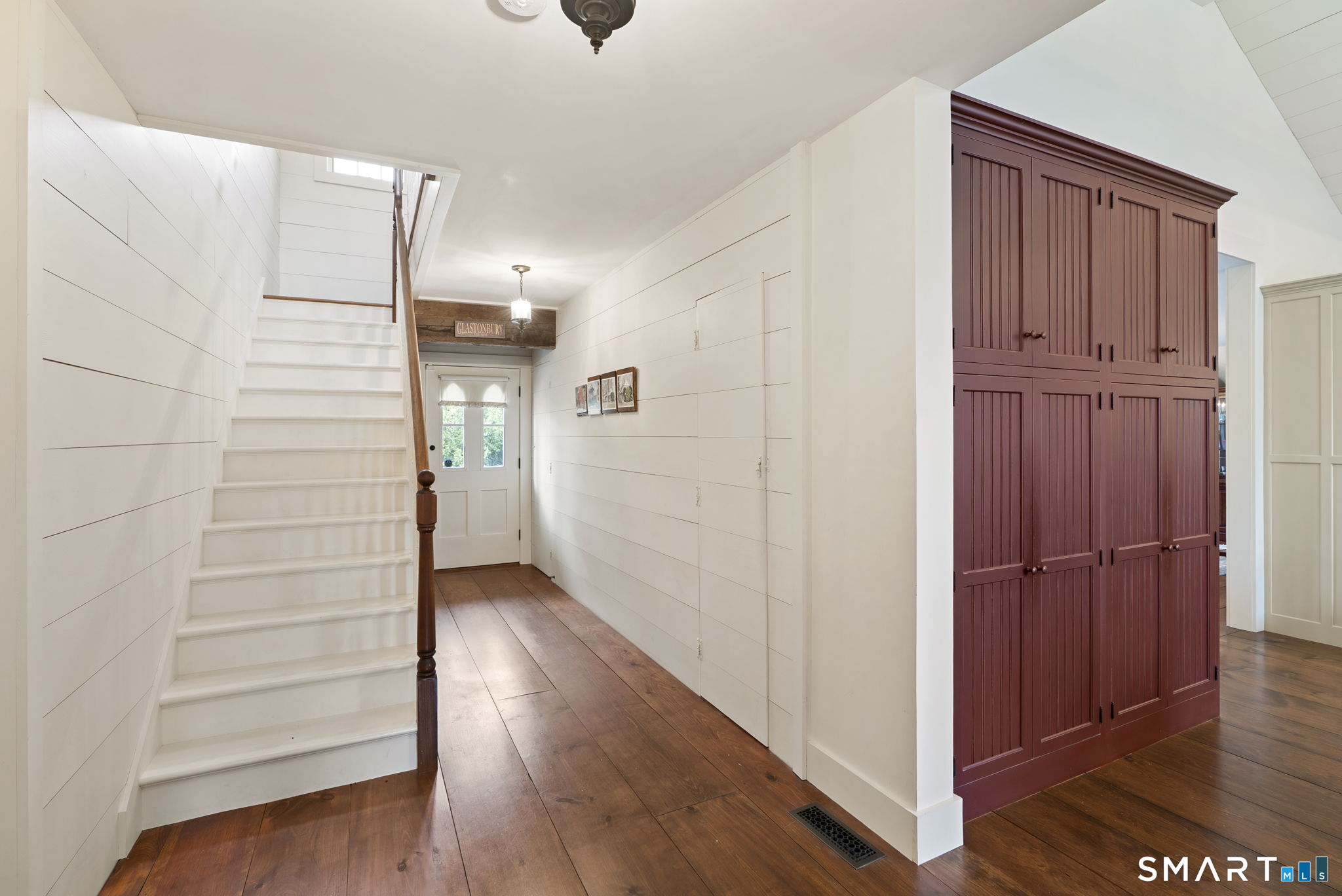 The Andrews-Bailey-Knox House: The Quintessential Glastonbury Main Street Colonial. Situated a perfect distance from the town center, this Greek Revival masterpiece offers the rare combination of historical prestige and the modern luxuries required for a sophisticated lifestyle. Spanning 3,860 square feet on a picturesque 1.1-acre lot, this home is a testament to timeless design and thoughtful preservation. The interior is defined by stunning random-width pine floors and a layout that balances grand entertaining with everyday comfort. The chef's kitchen is a showstopper, featuring custom Vermont cabinetry, tactile soapstone counters, and a suite of high-end stainless steel appliances, including a double wall oven and wine fridge. Designed for flexibility, the main level includes a coveted first-floor bedroom suite-perfect for guests or multi-generational living-alongside a dedicated first-floor office for the modern professional. The second floor is intelligently partitioned for ultimate privacy. Two spacious guest rooms and a full guest bath occupy the main hallway. The Primary "Wing" is a true sanctuary; it can be accessed via a private back staircase or sectioned off from the main hallway by a passage door. This retreat features an oversized bedroom, an expansive walk-in closet, a private bath, and dedicated laundry for maximum convenience. The first floor attached 2 car garage is also heated with extra storage. The exterior is an oasis of tranquility and utility.