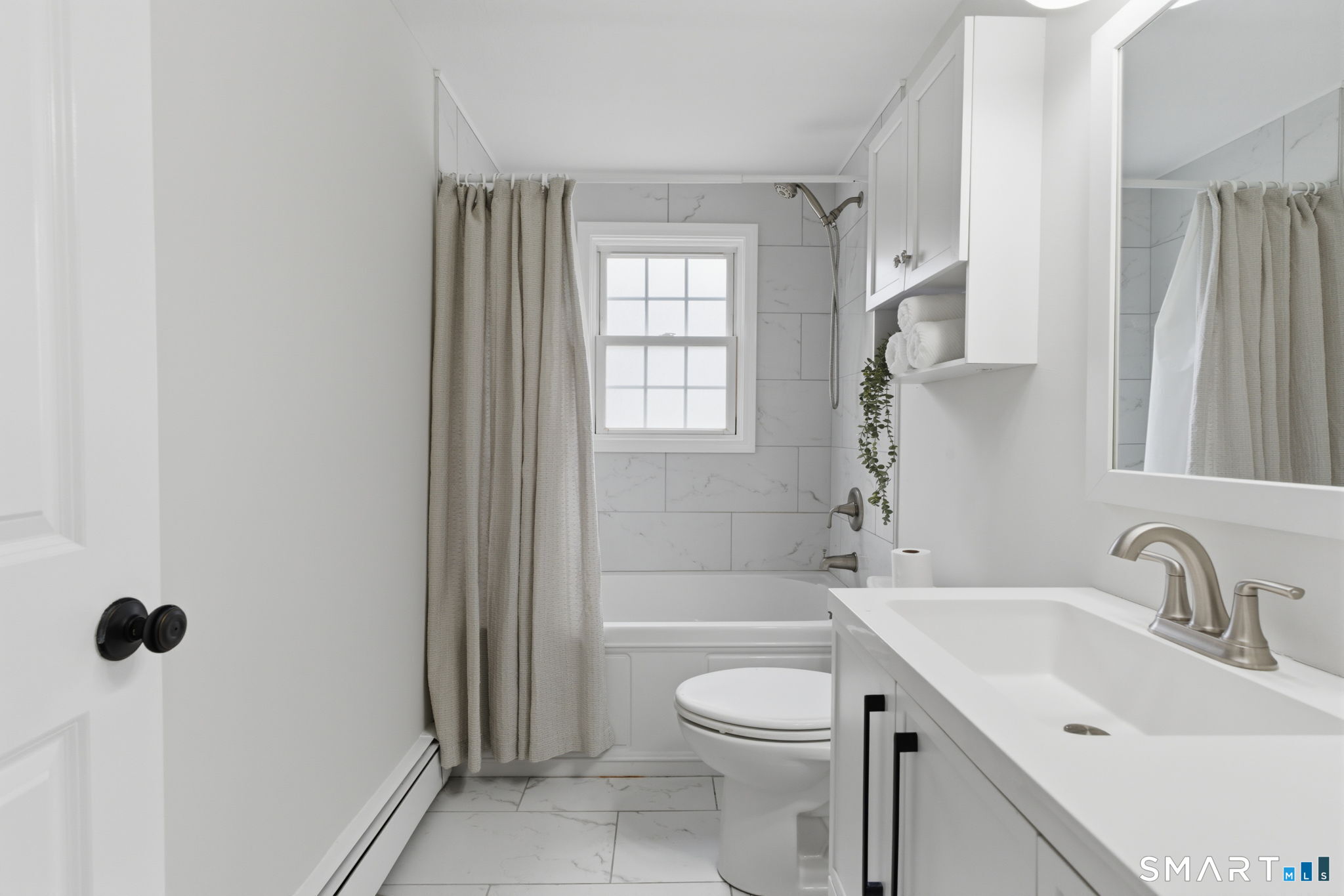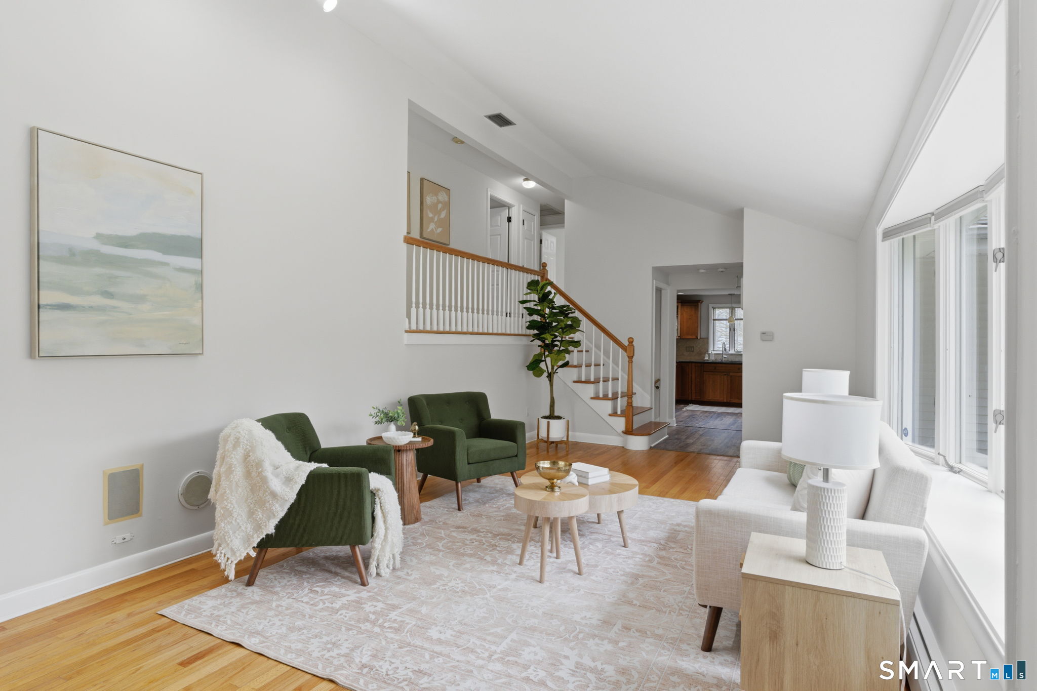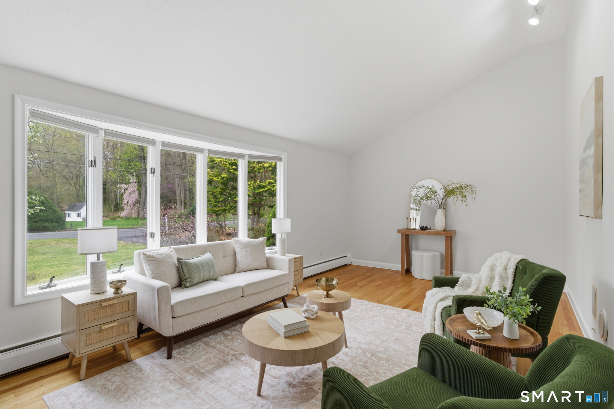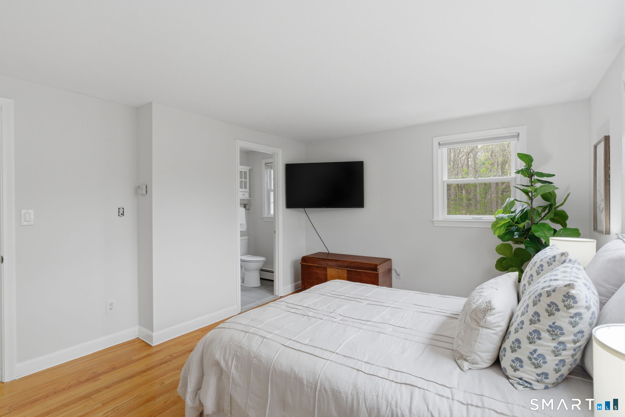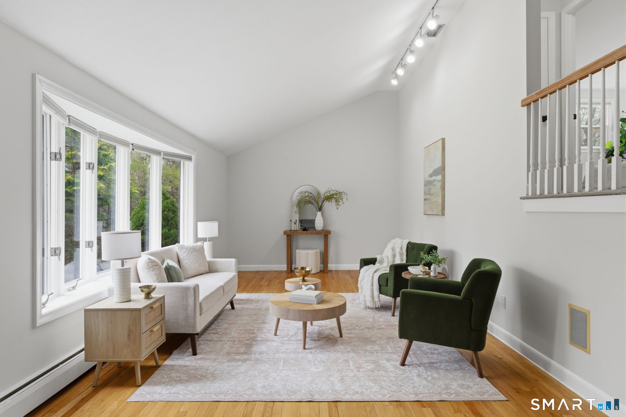 Farmstead Lane is a beautifully maintained 3 bedroom, 2 bathroom home set on a private 1.10 acre lot in one of Glastonbury's most desirable neighborhoods; tucked away on a quiet cul de sac and located in the highly sought after Buttonball school district. Inside, you will find 2,141 square feet of thoughtfully designed living space filled with natural light. The entire interior has been freshly painted creating a bright and move in ready feel. The spacious living room features a stunning bay window and natural light, while the eat in kitchen offers generous storage and functionality for everyday living. The primary bedroom includes its own en suite bathroom, and the newly remodeled main bathroom adds a modern touch. A full additional level of flexible living space provides endless options, currently set up as an entertainment area complete with a fireplace, bar and pool table, but easily adaptable for a home office, gym, or playroom. Additional highlights include central air, a newer 200 amp electrical service, and a high quality Buderus heating system. Tons of extra storage in the lower level. Outside, you have a professionally manicured lawn is supported by the refinished deck providing a perfect space for relaxing. The exterior has been recently cleaned, adding to the home's strong curb appeal. A two car garage completes the package. Just minutes to Glastonbury Center, schools, shopping, and dining, this home has it all!