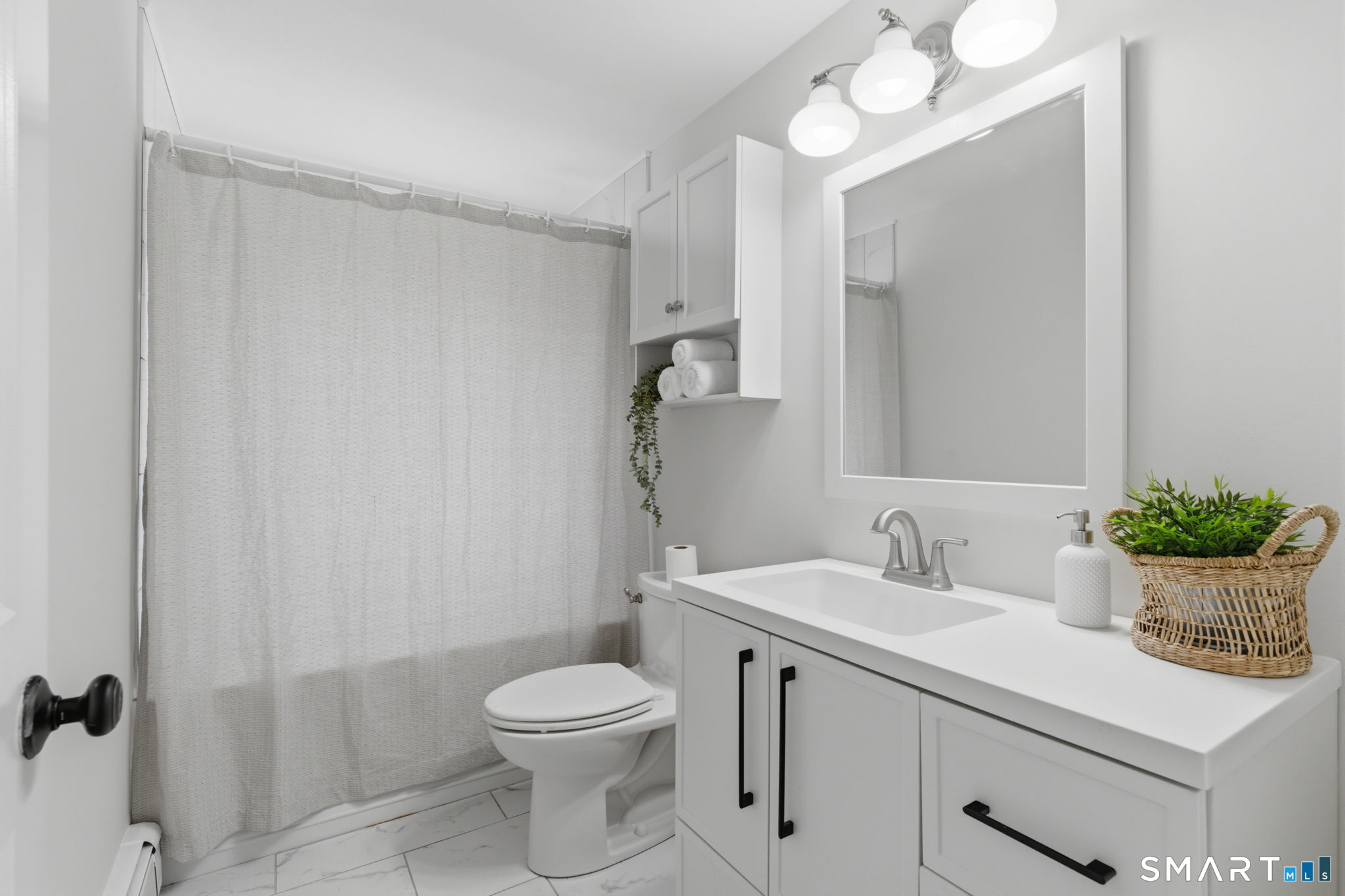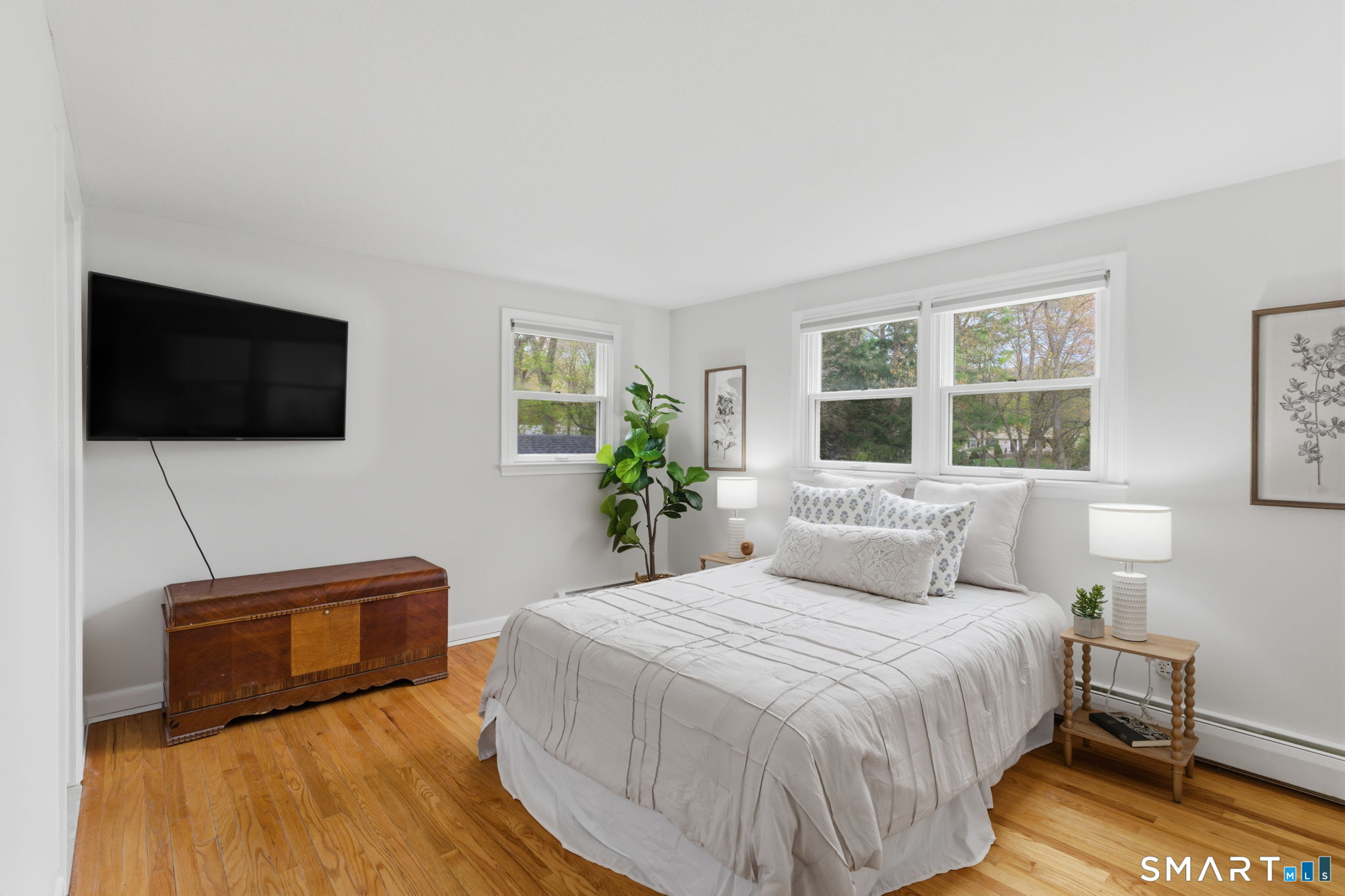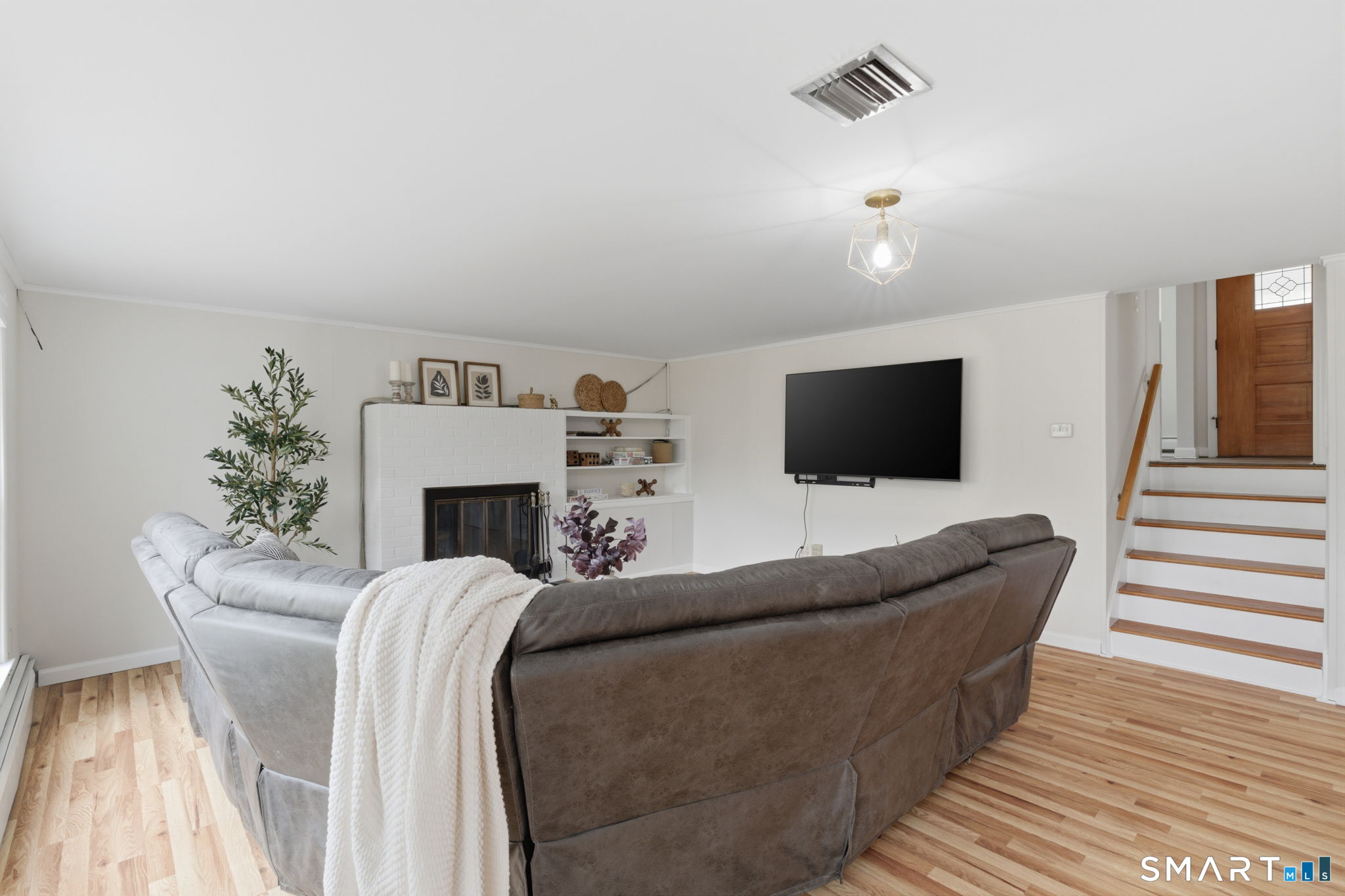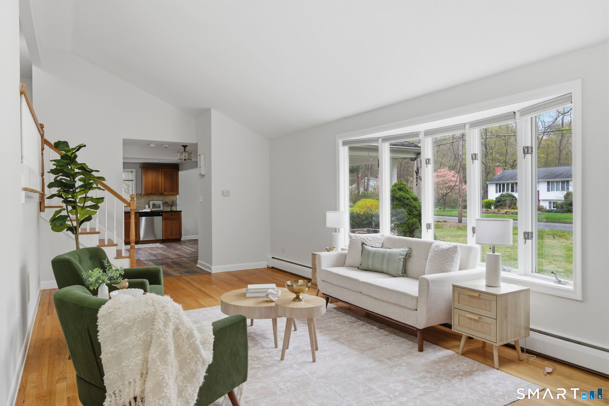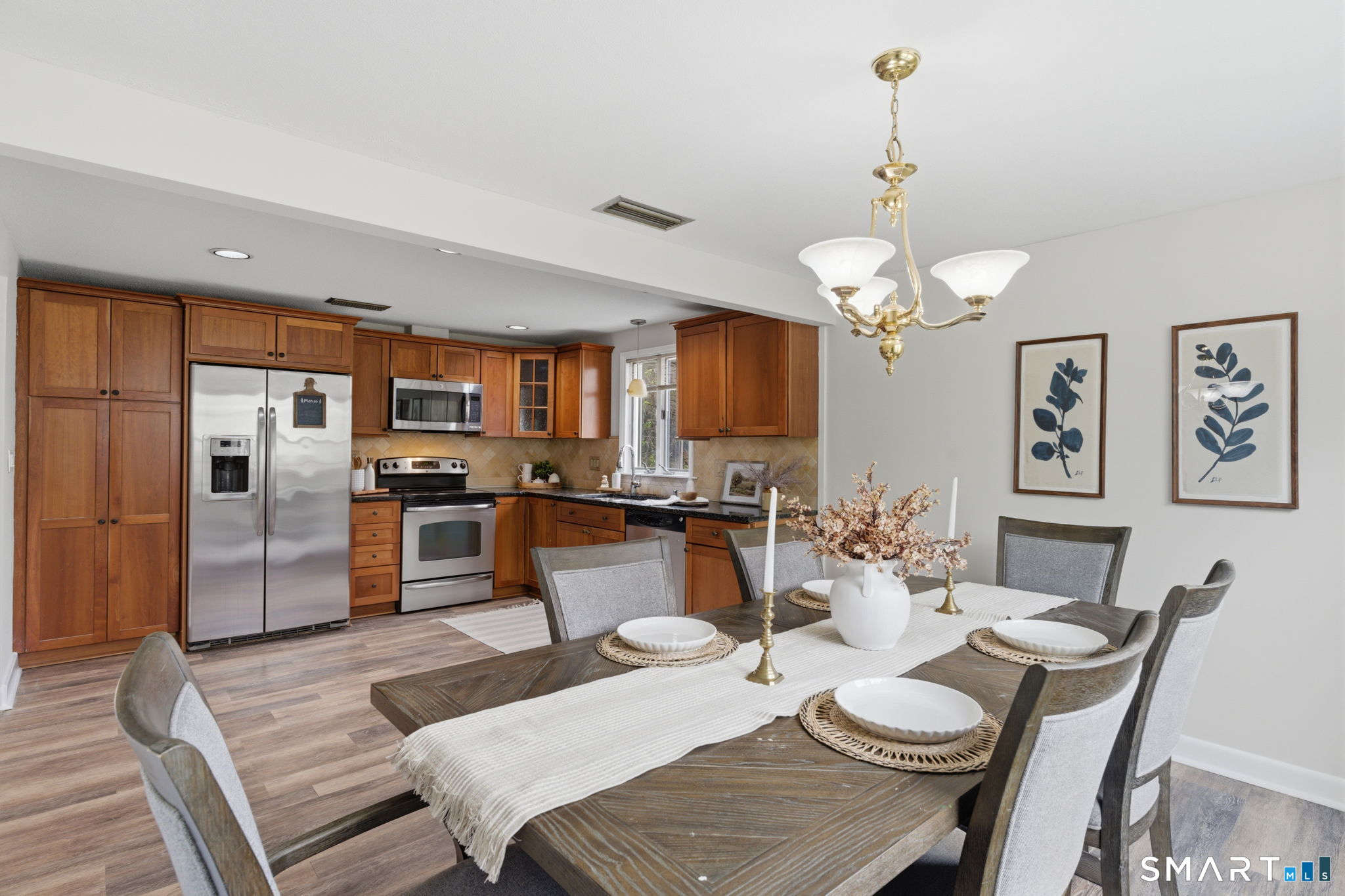 Farmstead Lane is a beautifully maintained 3 bedroom, 2 bathroom home set on a private 1.10 acre lot in one of Glastonbury's most desirable neighborhoods; tucked away on a quiet cul de sac and located in the highly sought after Buttonball school district. Inside, you will find 2,141 square feet of thoughtfully designed living space filled with natural light. The entire interior has been freshly painted creating a bright and move in ready feel. The spacious living room features a stunning bay window and natural light, while the eat in kitchen offers generous storage and functionality for everyday living. The primary bedroom includes its own en suite bathroom, and the newly remodeled main bathroom adds a modern touch. A full additional level of flexible living space provides endless options, currently set up as an entertainment area complete with a fireplace, bar and pool table, but easily adaptable for a home office, gym, or playroom. Additional highlights include central air, a newer 200 amp electrical service, and a high quality Buderus heating system. Tons of extra storage in the lower level. Outside, you have a professionally manicured lawn is supported by the refinished deck providing a perfect space for relaxing. The exterior has been recently cleaned, adding to the home's strong curb appeal. A two car garage completes the package. Just minutes to Glastonbury Center, schools, shopping, and dining, this home has it all!