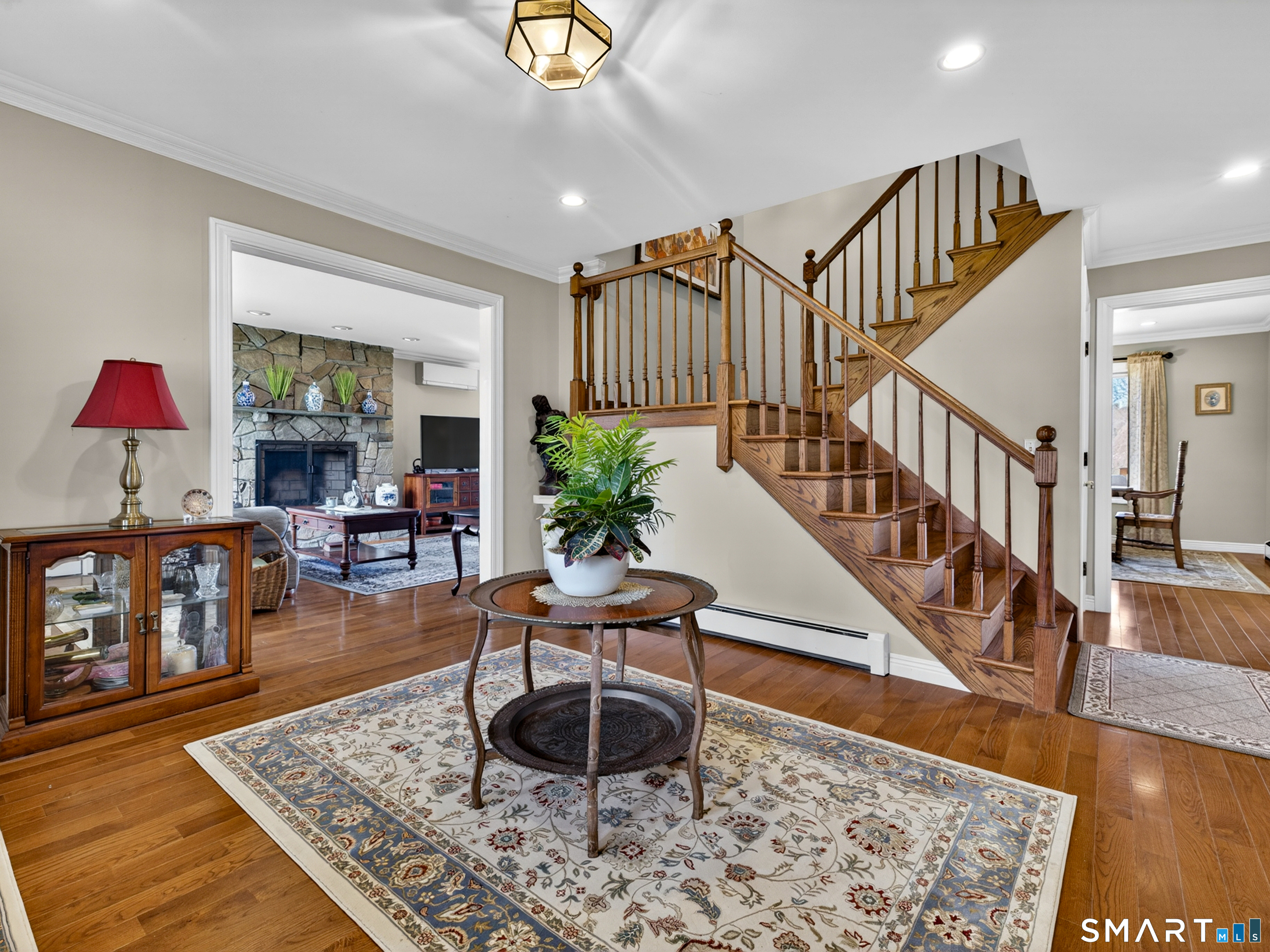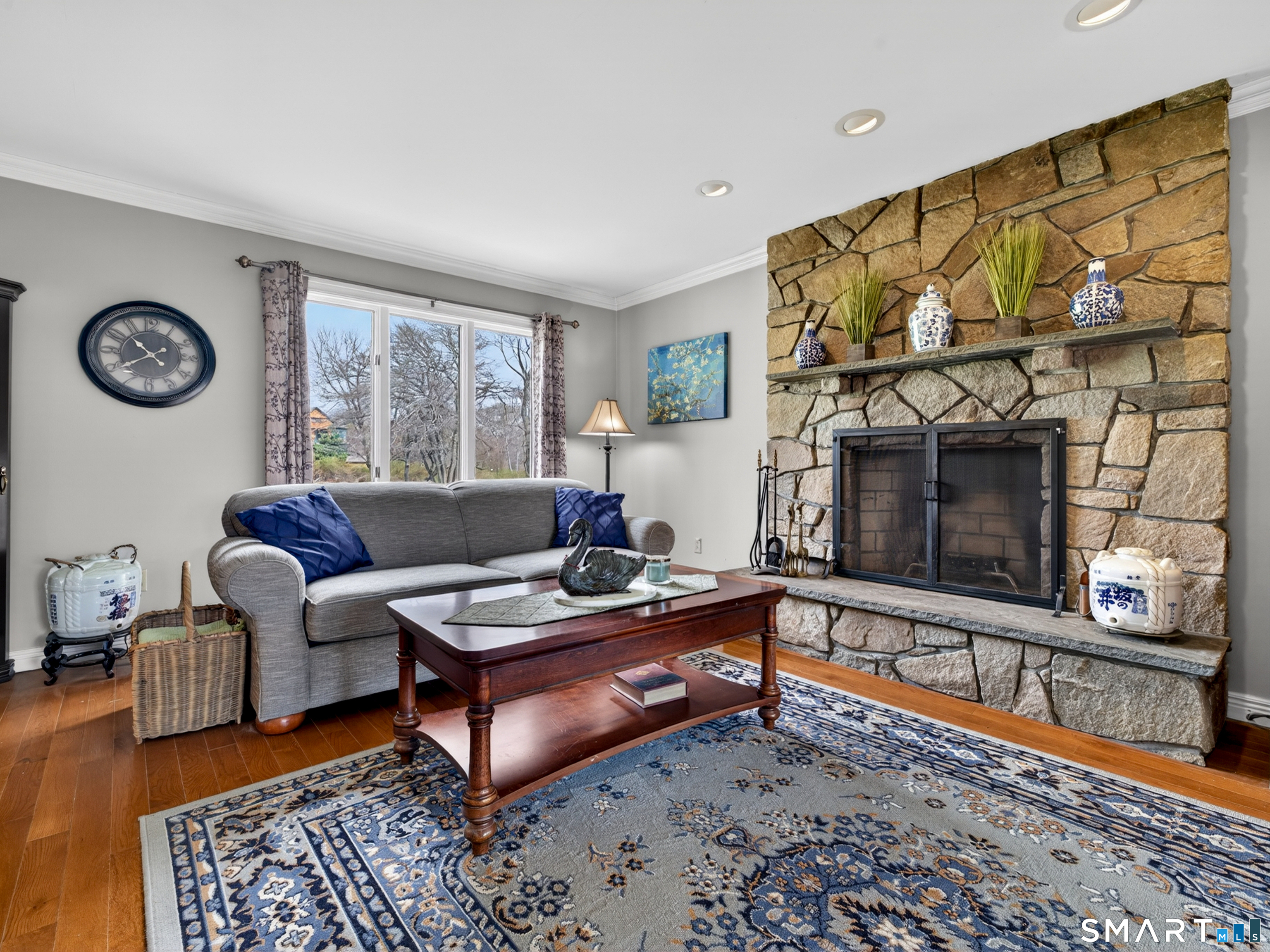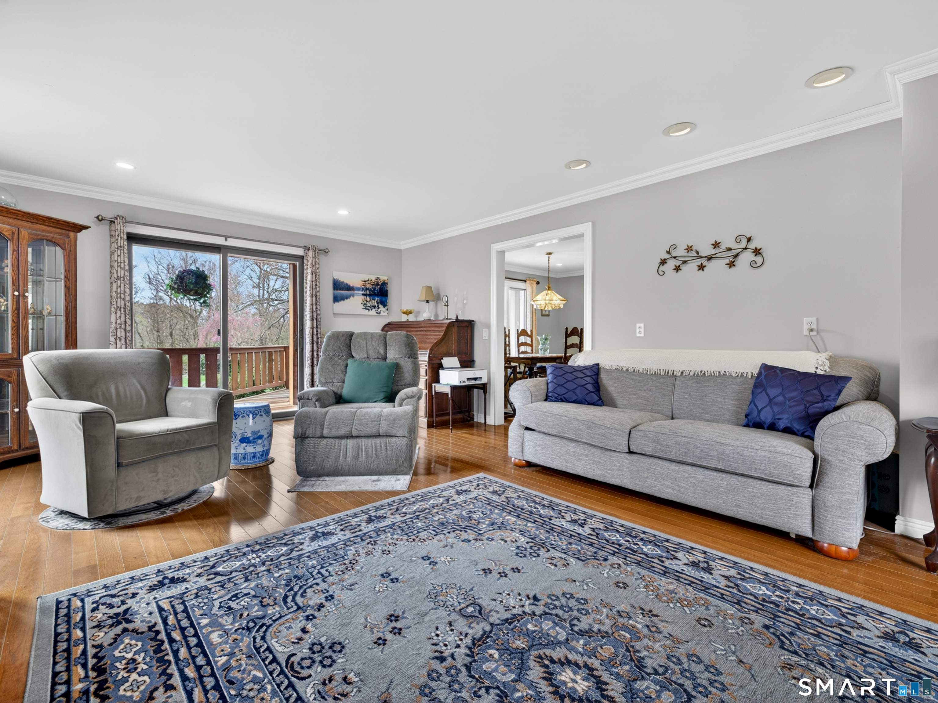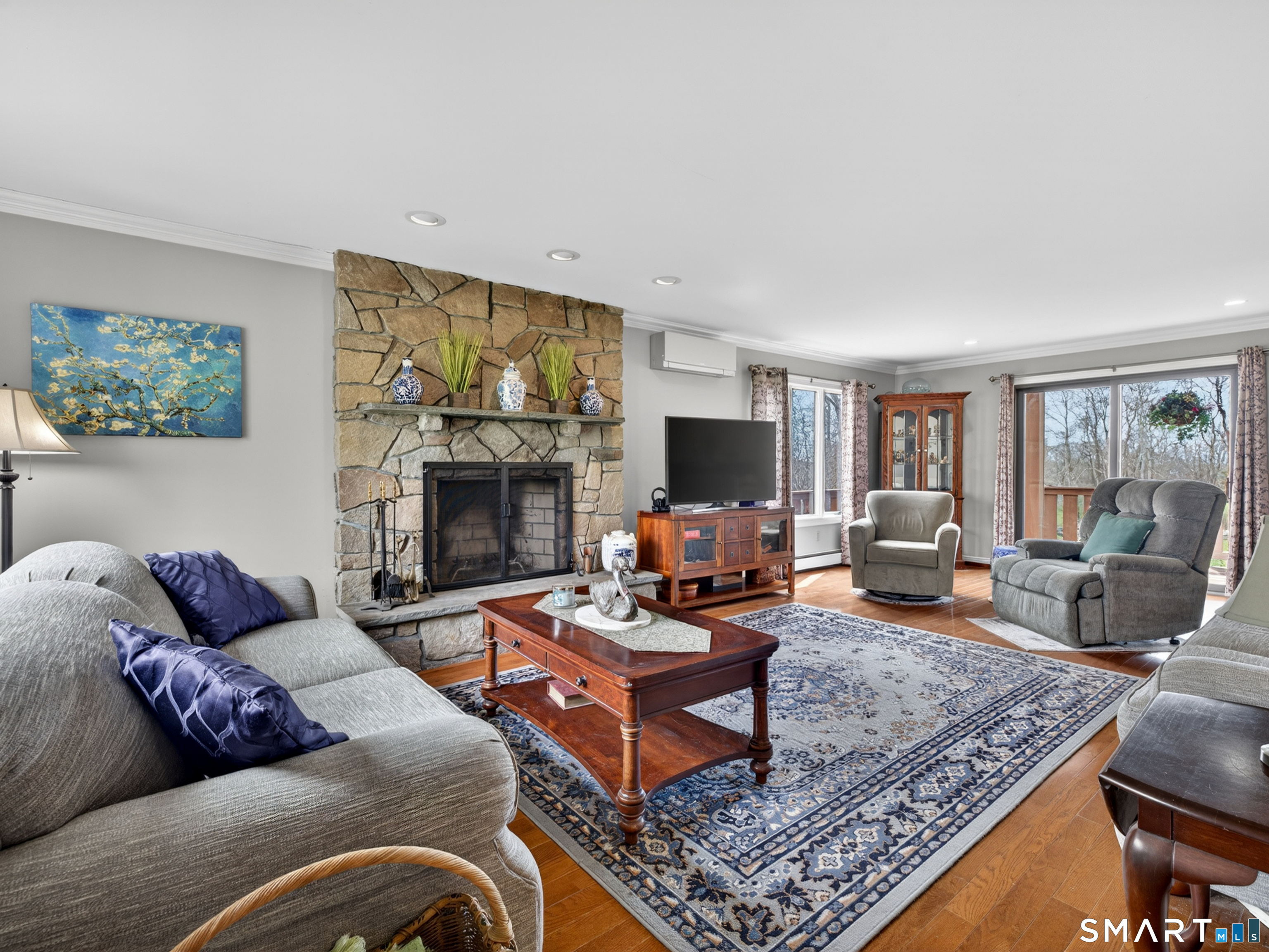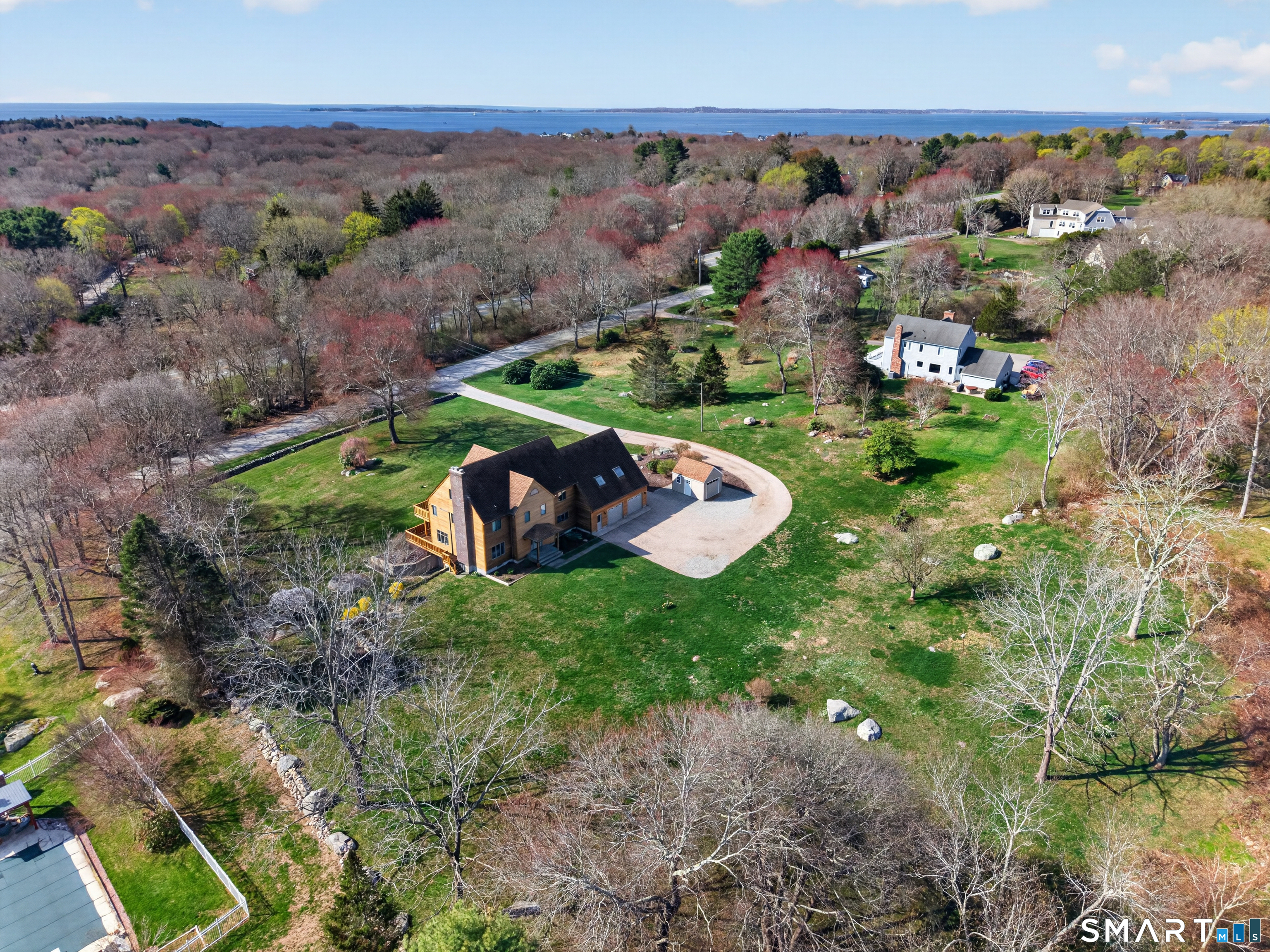 3-bedroom Colonial home with 2.5 baths on 1.84 acres featuring seller owned solar panels! This impressive property offers over 3,000 sf of living space, complemented by a 3-car tandem attached garage and striking California Redwood clapboard exterior finish. Triple-tiered decks on all three levels face south, creating exceptional outdoor living spaces with beautiful Redwood railings and abundant natural light. A welcoming foyer introduces an oak staircase connecting all three levels and an easy floor plan with a comfortable flow throughout the home. The main level features a spacious eat-in kitchen with ample cabinetry, a breakfast bar, and a dining area for everyday casual meals, along with direct access to the first-tier deck through a sliding glass door. A formal dining room with a large picture window captures natural sunlight, while the generously sized living room showcases a stunning stone wood-burning fireplace and opens to the deck for effortless indoor-outdoor living. This level also includes a convenient laundry room, a half bath, and hardwood flooring throughout most of the space. The second floor offers 3 bedrooms along with a huge bonus room of approximately 837 sf with skylights, and resides above the garage, ideal for a variety of uses including possible in-law/caregiver space, recreation, or family room.