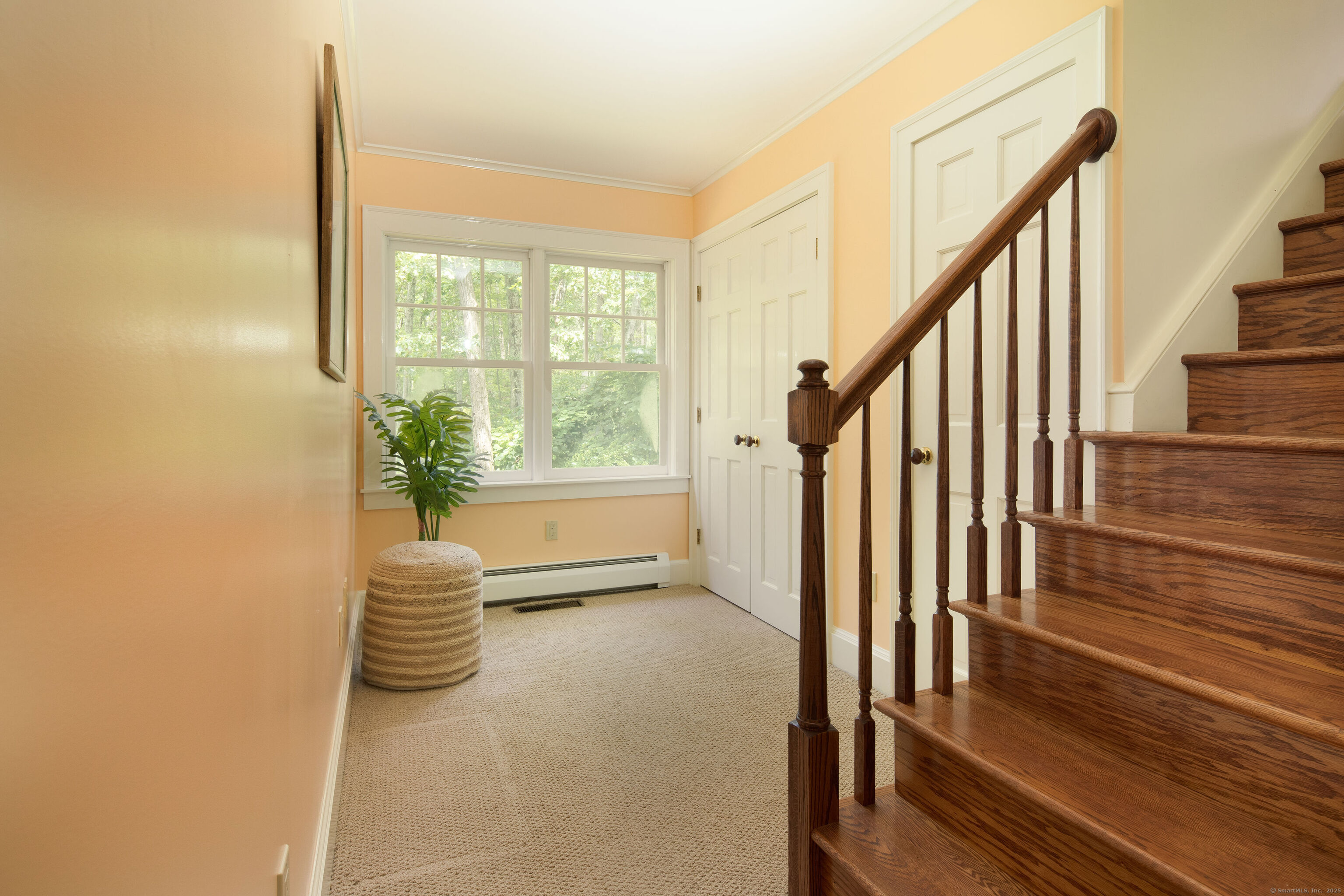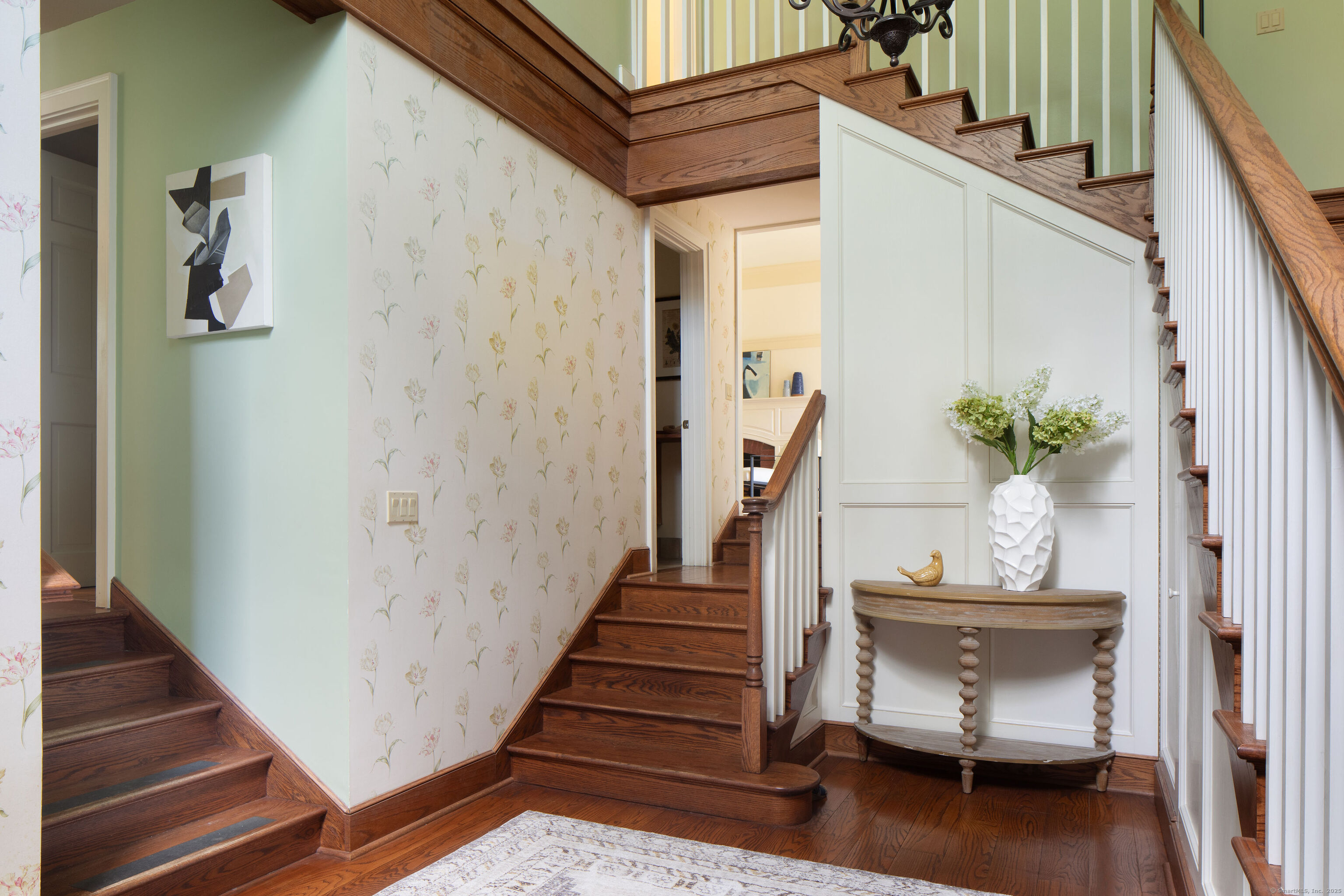 Set on 10 private acres just five minutes from downtown Salisbury, this spacious 4-bedroom, 3 full, 2 half bath home offers over 5,000 square feet of elegant living space. Perfect for entertaining, it features a formal living room with fireplace, an oversized kitchen with walk-in pantry, and a flexible layout including a primary suite with en-suite bath and walk-in closet. A highlight is the year-round indoor pool with jetted swim current-ideal for exercise or relaxation. The detached 3-car garage offers oversized bays and a finished upper level for a home office, studio, or guest suite. Enjoy landscaped gardens, open lawn, and mature trees offering peace and privacy. Conveniently located near Sharon, Millerton, Great Barrington, and the Wassaic Train Station with service to NYC, this turnkey Litchfield County retreat blends modern comfort with country charm.