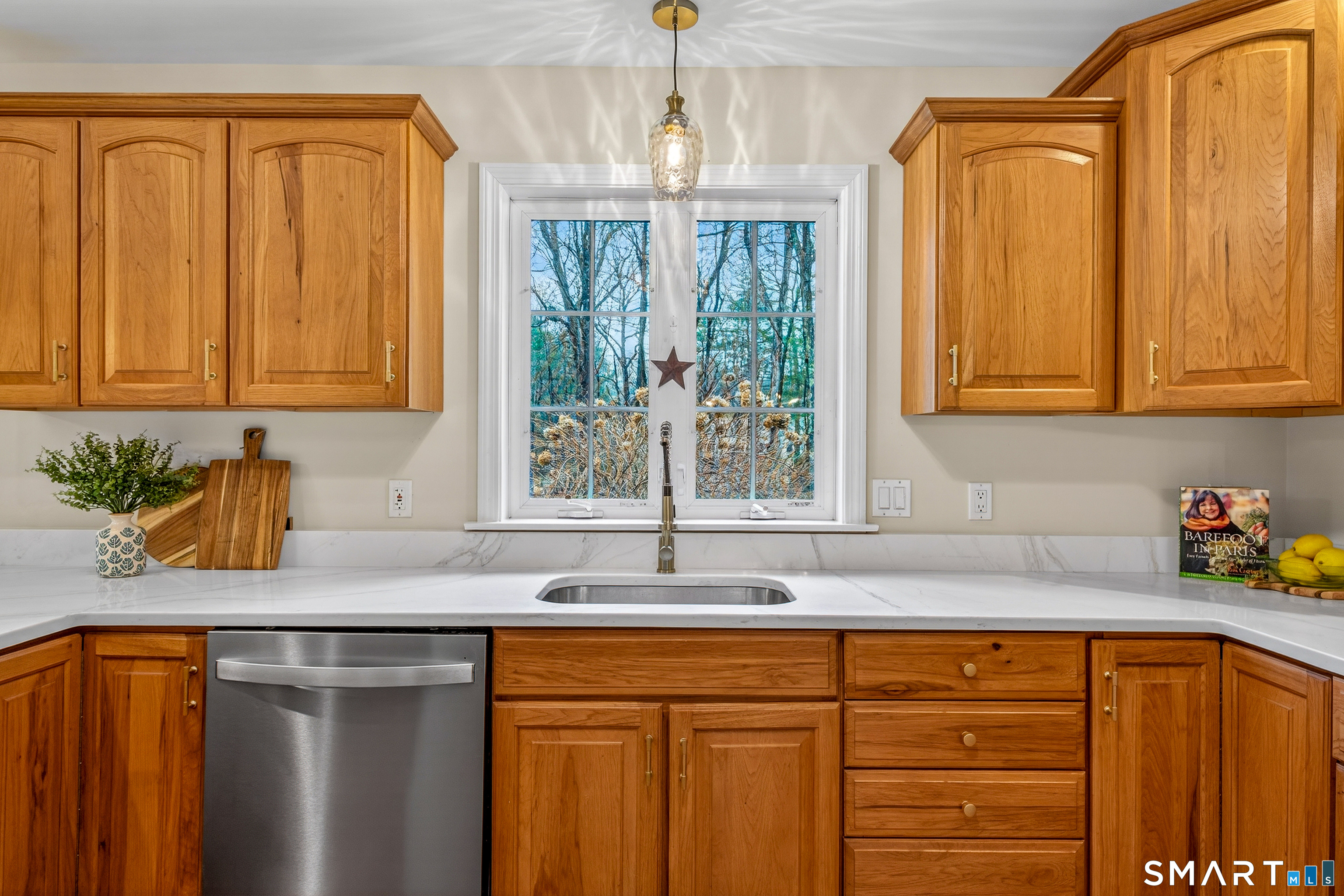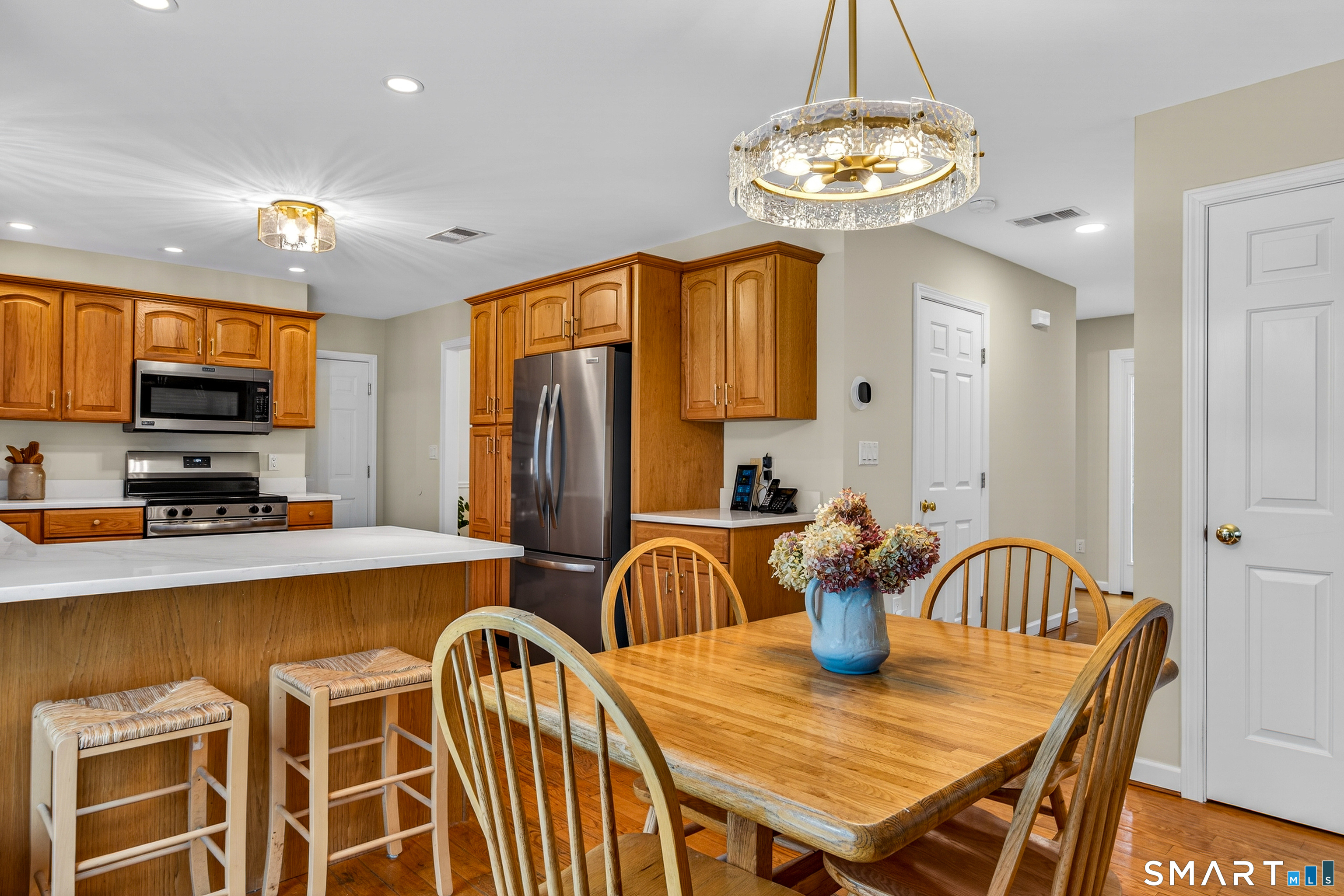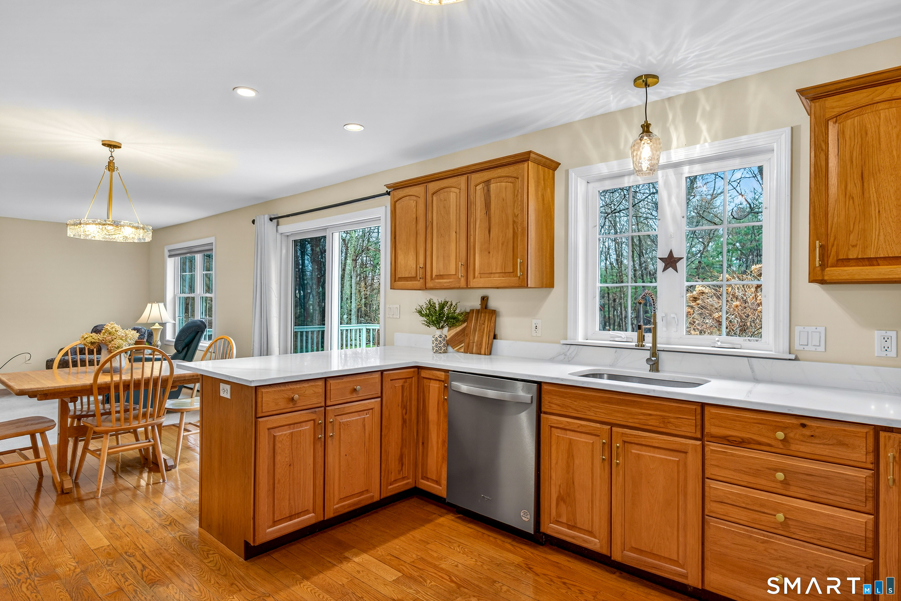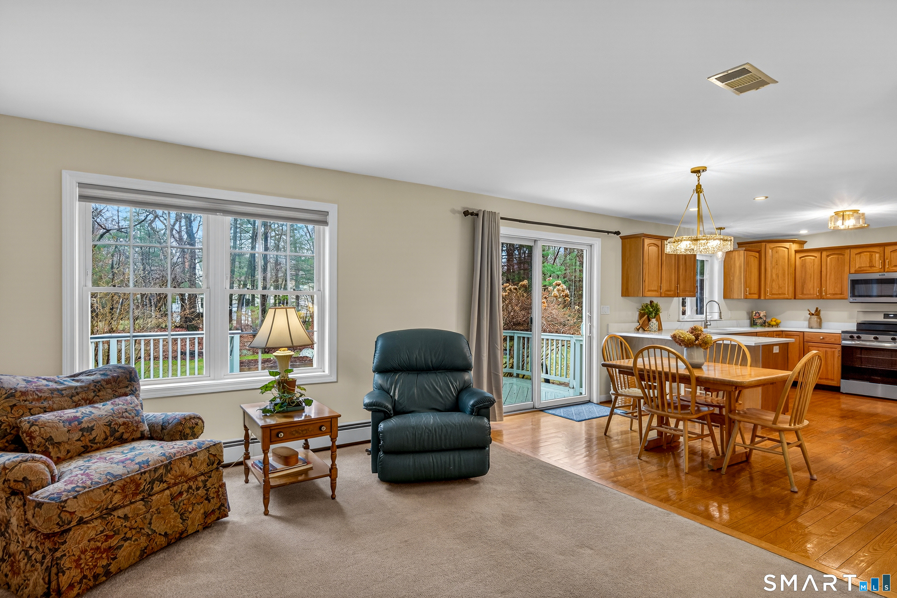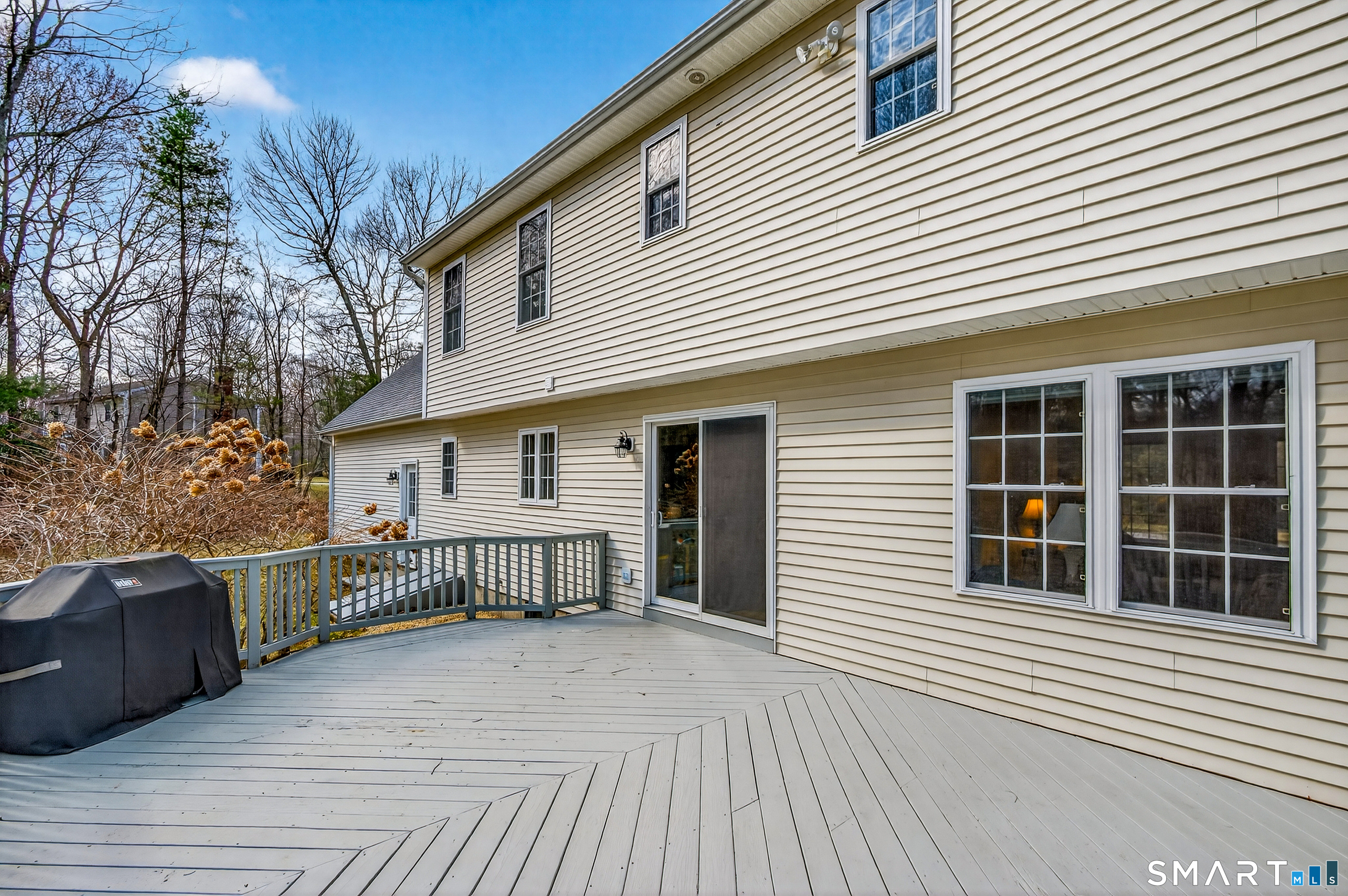 Set in the desirable Settlers Ridge neighborhood, 45 Mountain Laurel Drive in Tolland offers a 2,440 sq ft Colonial on a beautifully maintained 1.09-acre lot w/recent updates & a flexible layout designed for everyday living. The home features numerous improvements, inc: new quartz countertops (kitchen & primary bathroom), SS appliances, updated lighting fixtures, new garage doors & fresh interior paint, creating a clean & modern feel throughout. The main level includes a formal dining room and a spacious family room w/a pellet stove insert, providing comfortable living and entertaining areas. The kitchen is centrally located & designed for both function & flow, connecting seamlessly to the main living areas. A 1st. floor laundry, & half bath add convenience, while the oversized two-car attached garage offers ample storage. Upstairs, the primary bedroom includes a full bath & two walk-in closets. Two additional bedrooms & another full bath provide comfortable accommodations, while a 25x17 bonus room serves as a fourth bedroom or flexible space suitable for a variety of uses. The 2nd floor layout offers versatility for changing needs. Outdoor living is highlighted by an expansive deck overlooking raised bed gardens & a Kloter Farms shed, all set within a private, lightly wooded setting. The property offers a balance of usable yard space & natural surroundings within an established Tolland location. This home combines recent updates, functional space, & a convenient location.