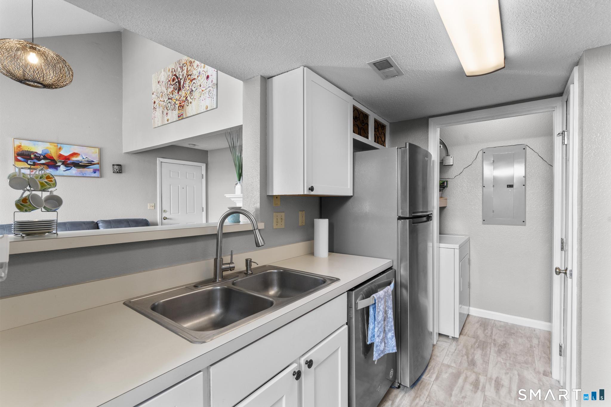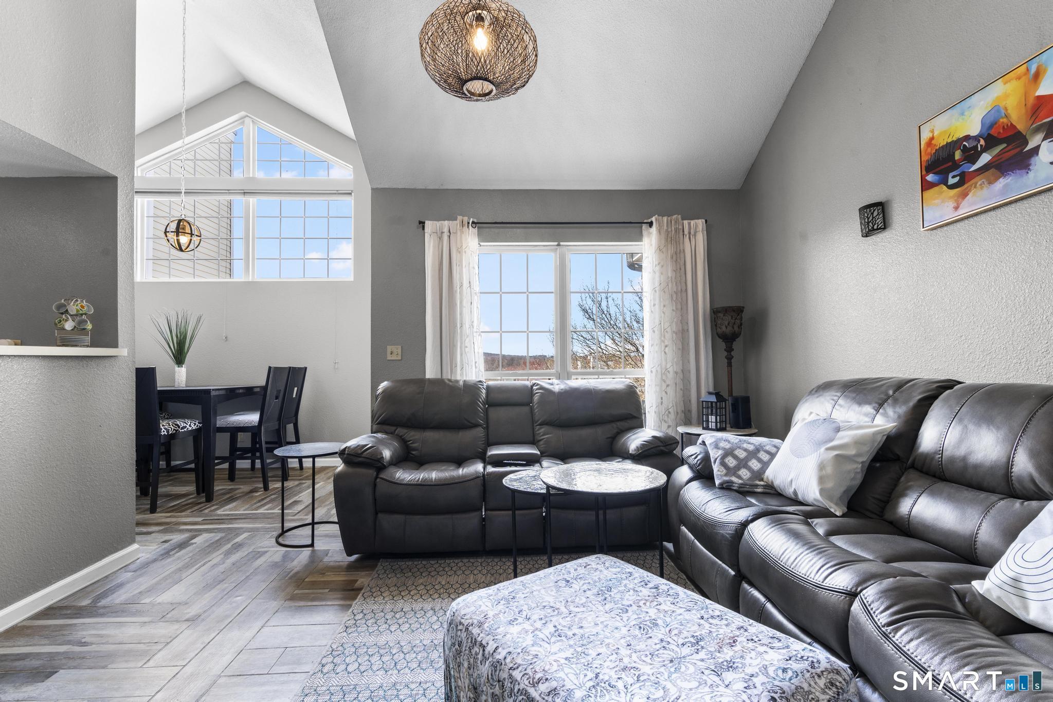 Excellent opportunity to own third floor one bedroom condo in desirable Carriage Crossing, a community known for it's distinct contemporary architectural features like vaulted ceilings and oversized windows. This unit features a newer kitchen, newer bathroom, newer flooring throughout, newer interior painting, newer HVAC and 2025 hot water tank. Beautiful views from private balcony. The Carriage Crossing complex offers in ground pool, tennis court, fitness center and racquetball court. Conventionally located close restaurants, shopping and major highways (I91 and Route 9). Schedule your showing today and come see everything that 79 Carriage Crossing has to offer! All furniture is negotiable.