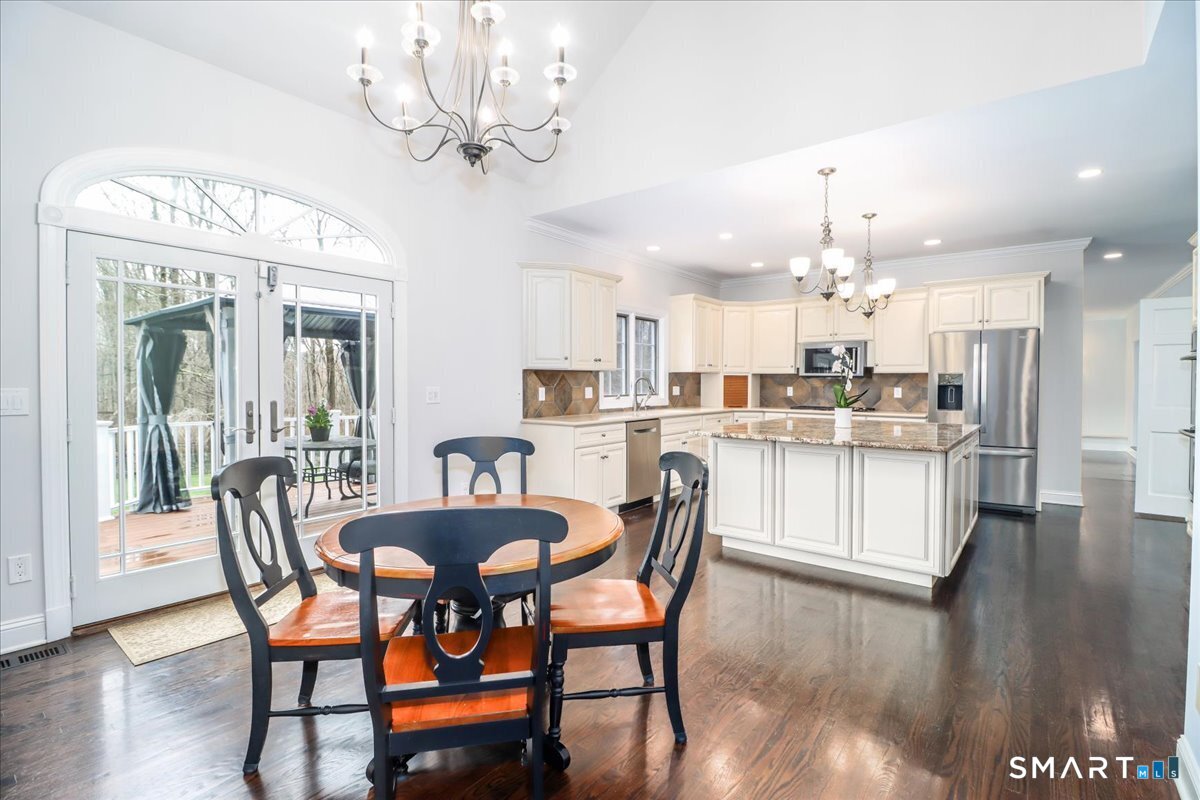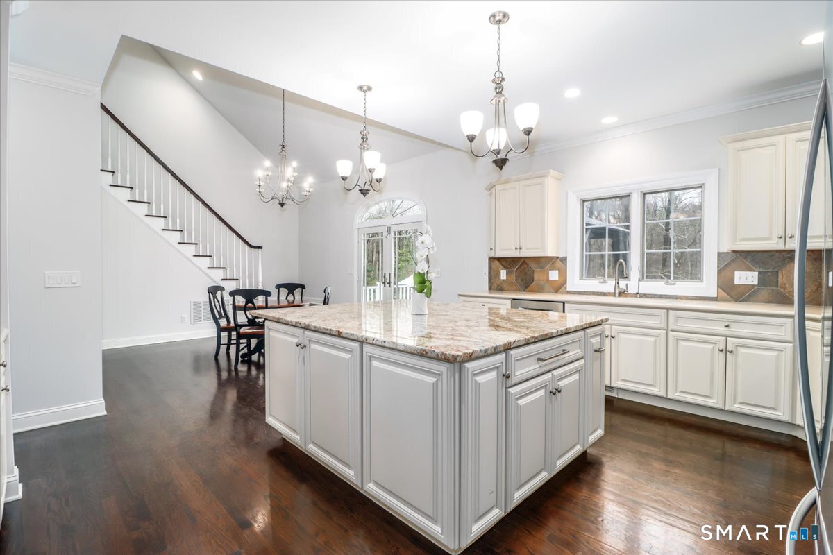 Set within the highly desirable Stone Ridge Estates and surrounded by meticulously landscaped grounds, this stately colonial embodies refined luxury, exceptional scale, and effortless indoor-outdoor living. A dramatic two-story foyer with sweeping staircase and exquisite millwork introduces elegant formal living and dining rooms, highlighted by bay windows, rich hardwood floors, and timeless architectural detail. At the heart of the home, a beautifully appointed eat-in kitchen features a granite center island, custom cabinetry, premium stainless appliances, and a sunlit breakfast area with French doors opening to an expansive deck. The spacious family room offers a gas fireplace with marble hearth, while a sun-drenched bonus room beyond double French doors provides a versatile space for a media room, office, or private retreat. The main level is complete with a bedroom and full bath, along with a thoughtfully designed mudroom and laundry area. Upstairs, the luxurious primary suite features a tray ceiling, private sitting room, walk-in closets, and a spa-inspired bath with soaking jetted tub, separate shower, and vaulted ceiling. Two additional bedrooms share a Jack-and-Jill bath. While a private suite with full bath and walk-in closet is ideal for guests/in-law/nanny, or office use. Finished lower level offers multiple recreation spaces and a full bath. Outdoors, a heated in-ground pool, deck with pergola. Generator. 3 car garage. Highest & best offer deadline noon on 4/21/26