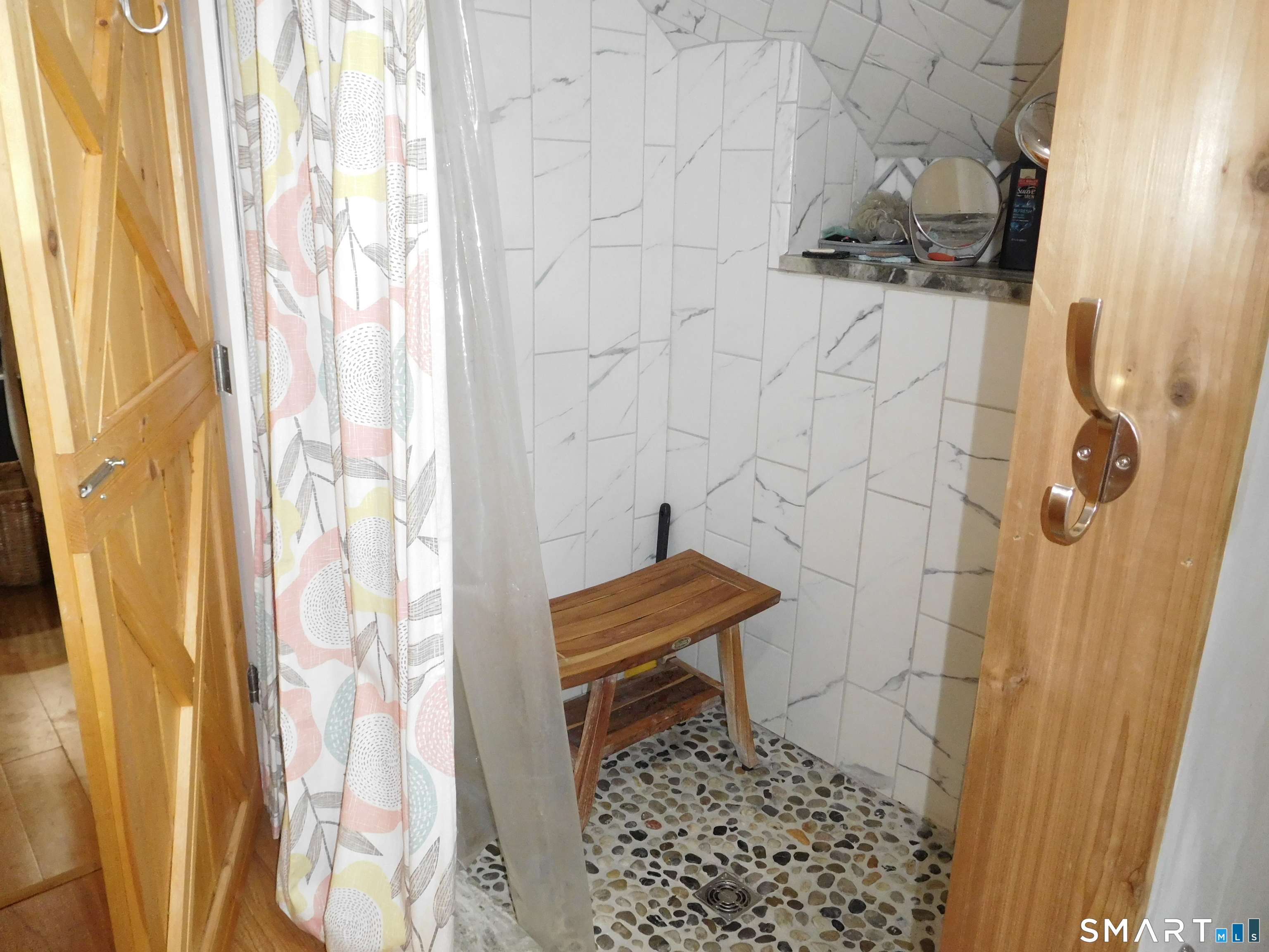 This Eastside Cape has much to offer. Although remodeled, much of the character and classic features of this home remain in place. Kitchen offers custom made cabinets, butcher block counters, stainless steel appliances, and hardwood floors that flow through out the home. Livingroom has wonderful natural light from the bow window, also on the main level you'll find 2 bedrooms and a beautifully remodeled full bath, with walk-in shower, and linen closet. Upstairs you will find a large bedroom with its own brand new full bath, with walk-in shower which has a custom river rock floor inside. Some additional upgrades are Brand New Boiler (2026), New Well Pump (2026) all new Windows, doors, newer roof and custom built large shed. The home also has a private enclosed hot tub area, a small oasis for you!! As well as an adorable covered side porch just waiting for you with your beverage of choice to unwind and relax. Property has Perennial flower beds and garden area ready for growing season. This area is LOCATION, LOCATION, Location... if easy access is what you need to major roadways, this is where you'll find it, close to Shopping & Medical offices.