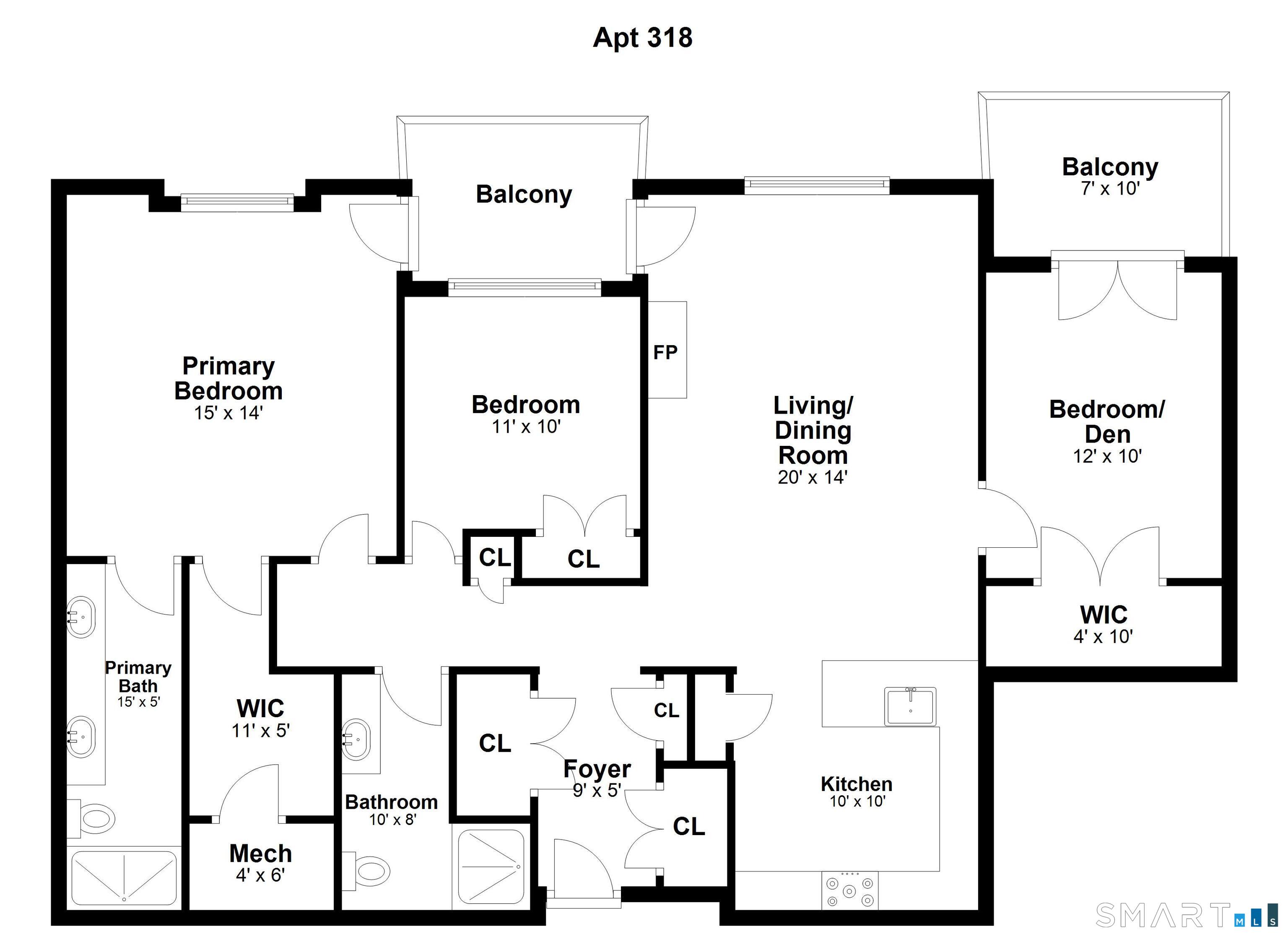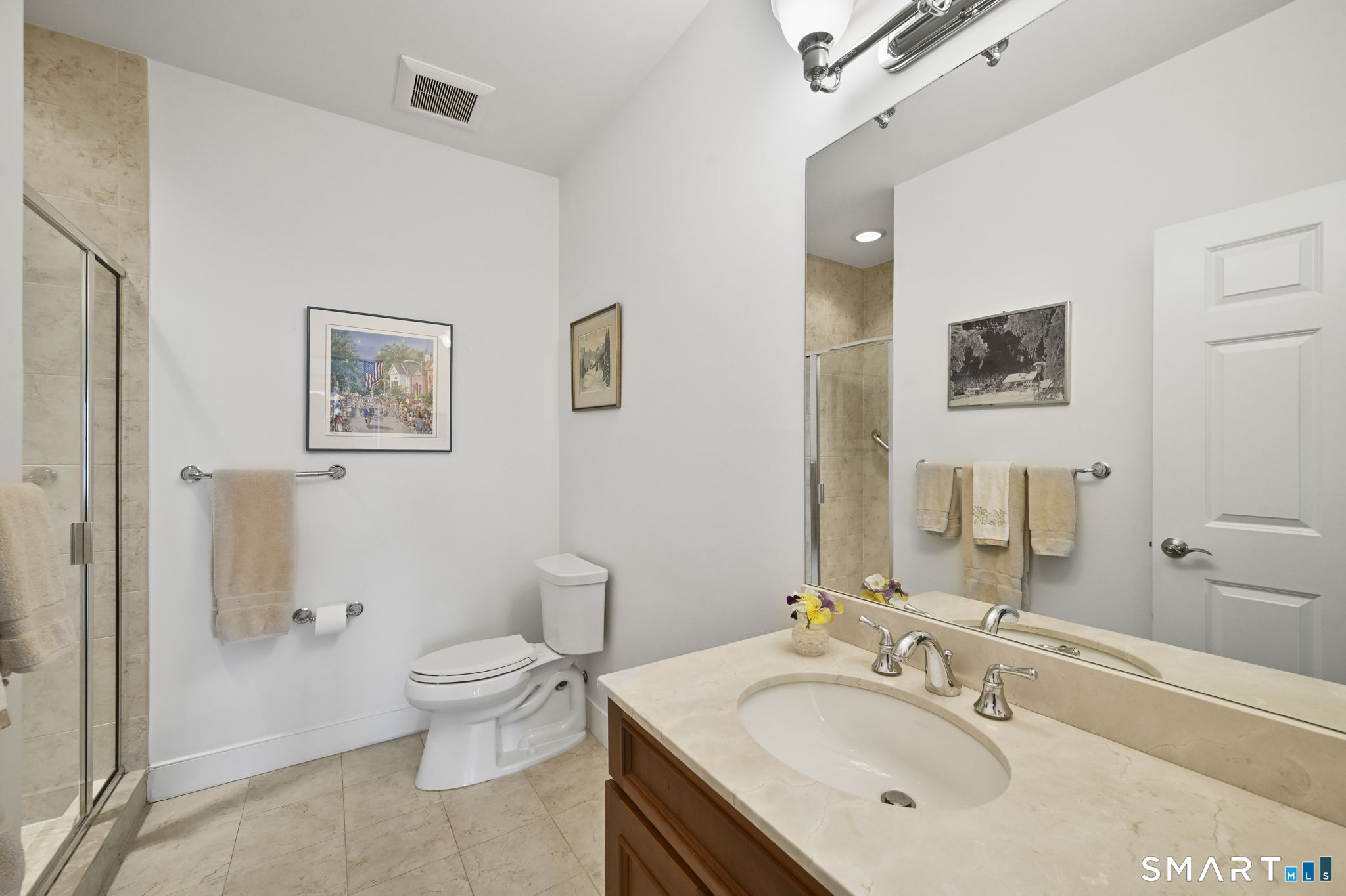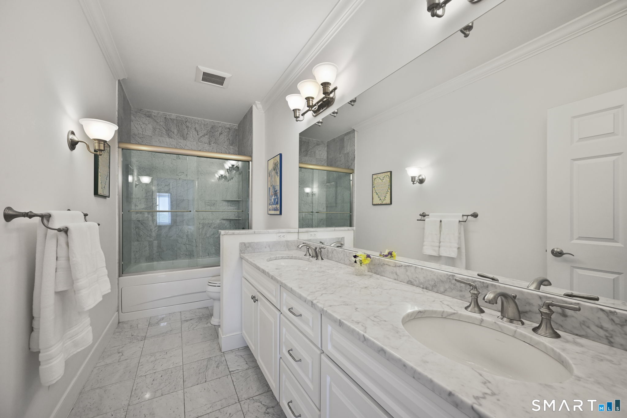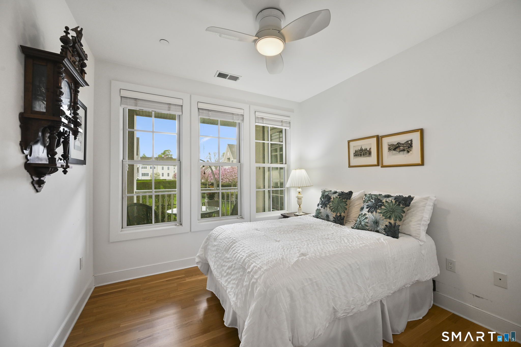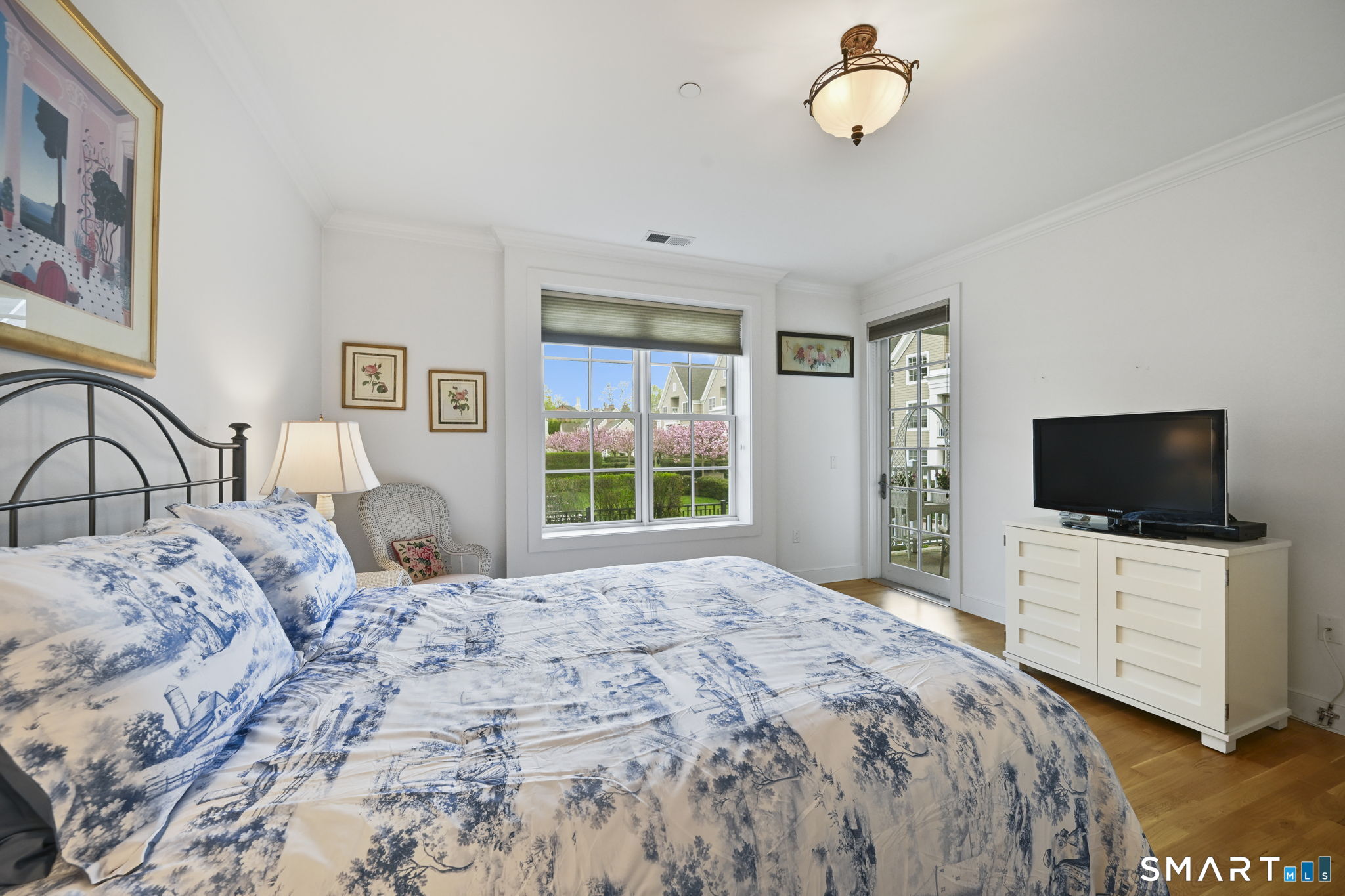 Palmer Hill! The Luxury Gated Community on the Old Greenwich/Stamford Border. Rarely on market, Fantastic and Highly Desirable 3 Bedrooms or 2 Bedroom + Den/2 Bath midrise condo with 2 terraces. 1 Floor Living. All wood floors, New HVAC, Water Heater, and AC Compressor. Lots of light, great courtyard views, custom window treatments, custom lighting! Open plan living/dining room with large windows, gas fireplace, and French door to a terrace. Gourmet kitchen with breakfast bar, many cabinets, SS appliances, New Dishwasher, Microwave, and Washing Machine. Spacious en-suite primary bedroom suite has ceiling moldings, custom walk in closet, French door to a terrace and a full, en-suite marble bath with 2 sinks. 2nd Bedroom has a custom closet, 3rd bedroom/den has French doors to a 2nd terrace and custom walk-in closet. This home comes with 2 indoor parking spaces, a storage unit, and a bike room. Amenities include a newly remodeled clubhouse, pool, hot tub, fire pit, gym, yoga room, and business center. Dog Friendly! Minutes to I95 and Metro North. Don't Miss this one!