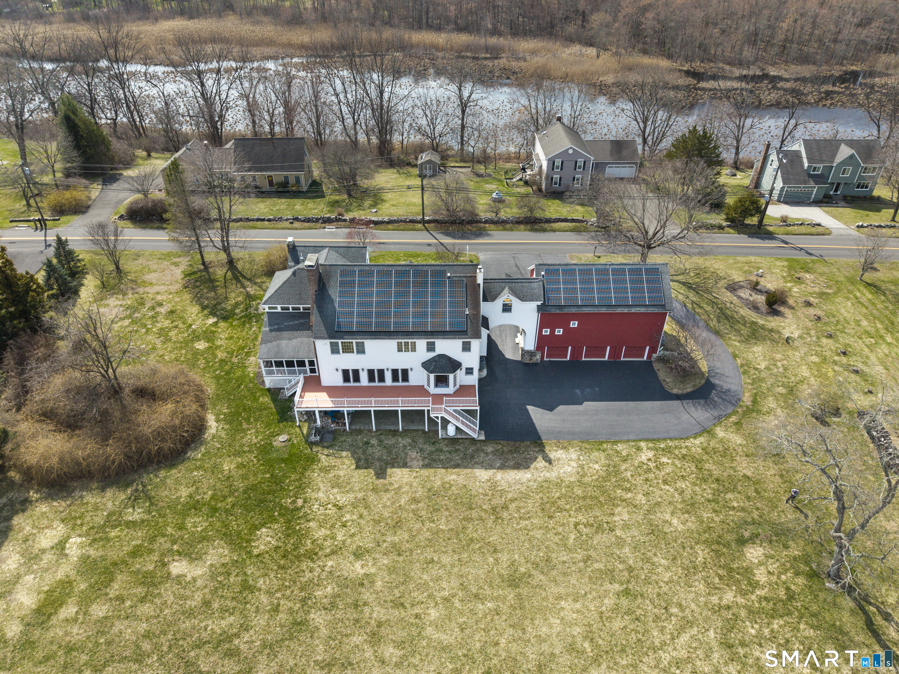 A perfect blend of historic charm and modern luxury, this exceptional residence seamlessly combines an original 1900 home with a thoughtfully designed 2004 expansion. Offering 5 bedrooms, 4 full and 2 half baths, the home showcases exquisite craftsmanship with detailed moldings, wainscoting, and timeless architectural elements throughout. A grand foyer welcomes you inside, leading to a dramatic family room anchored by a striking stone fireplace that flows effortlessly into the living room and a spacious kitchen featuring a center island, wine cooler, and Dacor stove/oven- perfect for both everyday living and entertaining. Sliders open to a large deck, extending the living space outdoors. The main level also includes a stunning oak library, formal dining room, convenient mudroom entry, and walk-in pantry. A sun-filled atrium provides a tranquil retreat surrounded by lush greenery, complete with automatic sprinklers- ideal for cultivating an indoor herb or botanical garden. The luxurious primary suite offers a private retreat with a bar area, walk-in closet, stone gas fireplace, a large window overlooking the private backyard, and a Juliet balcony overlooking the sunroom. The spa-like bath features a Jacuzzi tub, walk-in shower, and in-suite laundry. Two additional bedrooms share a Jack and Jill bath, while a hallway lined with Palladium windows leads to the barn, offering an ideal sitting area or office space along the way.