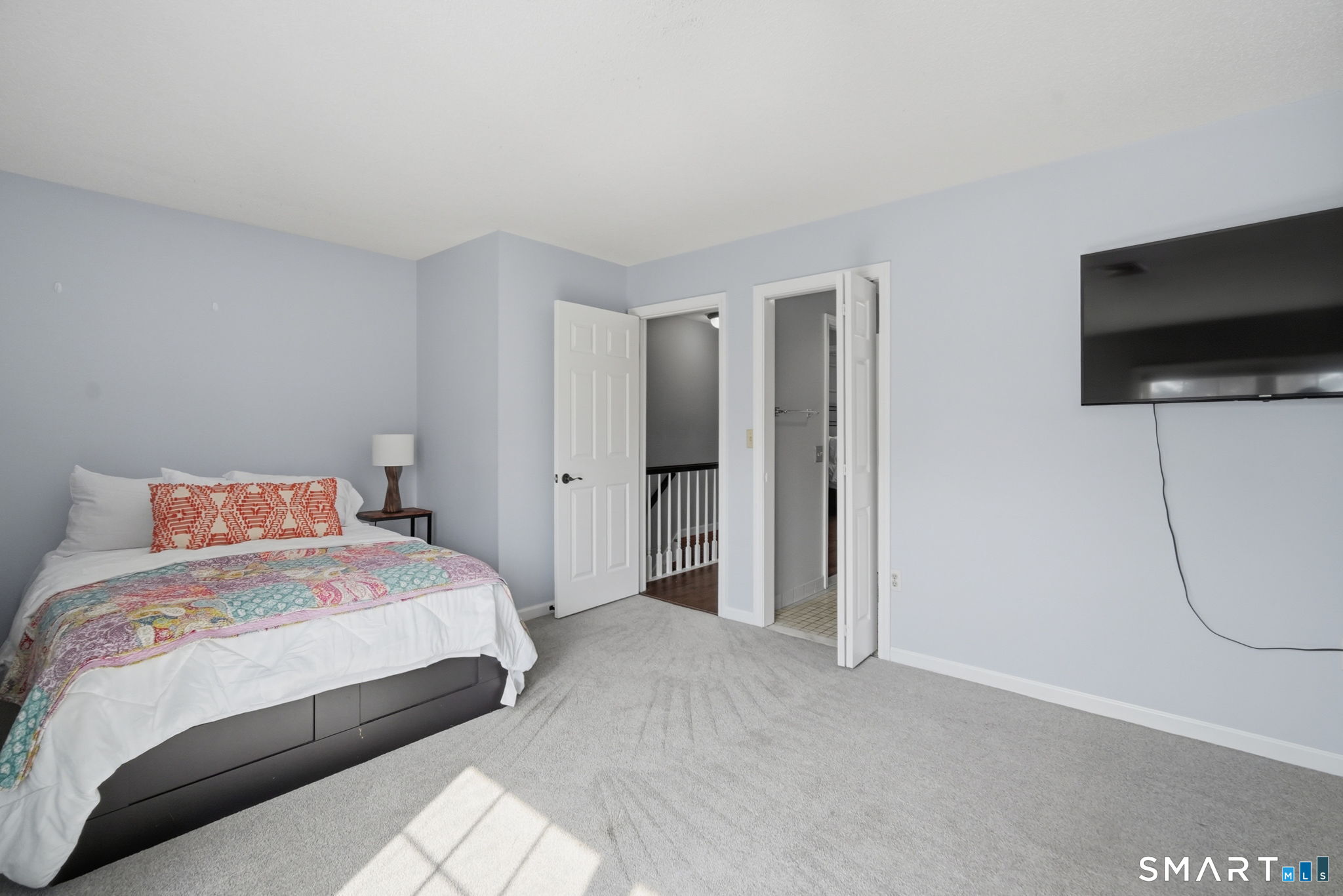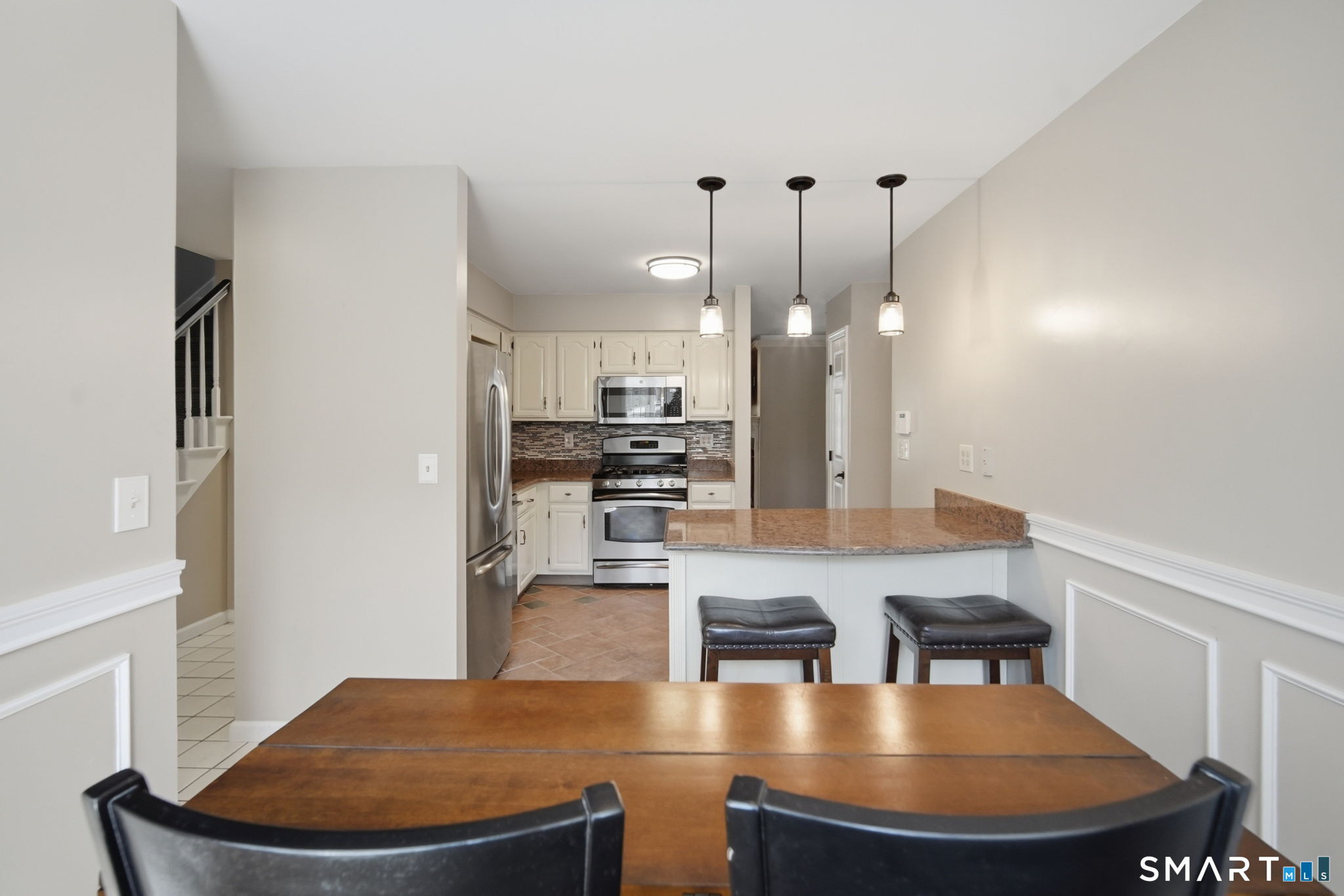 Welcome to 63 Dartmoor, a beautifully maintained townhome in one of Enfield's most desirable communities, offering serene pond and wooded views and a peaceful setting throughout. This spacious home features an open and inviting layout with a sun-filled kitchen, generous living room with fireplace, and a formal dining area that can also serve as a home office, all with access to a private deck overlooking the water. The primary suite offers cathedral ceilings, hardwood flooring, a walk-in closet, and a beautifully updated ensuite bath. A second oversized bedroom suite includes its own private bath and ample closet space. The fully finished walk-out lower level provides additional living space with high ceilings and a full bath, ideal for guests, a family room, gym, or media room. Additional highlights include a high-efficiency water pressure pump for strong water flow throughout the home, a brand-new roof, new garage doors, central air, central vac, in-home laundry, and a one-car garage. Enjoy low-maintenance living in a prime location with scenic views and thoughtful upgrades throughout.