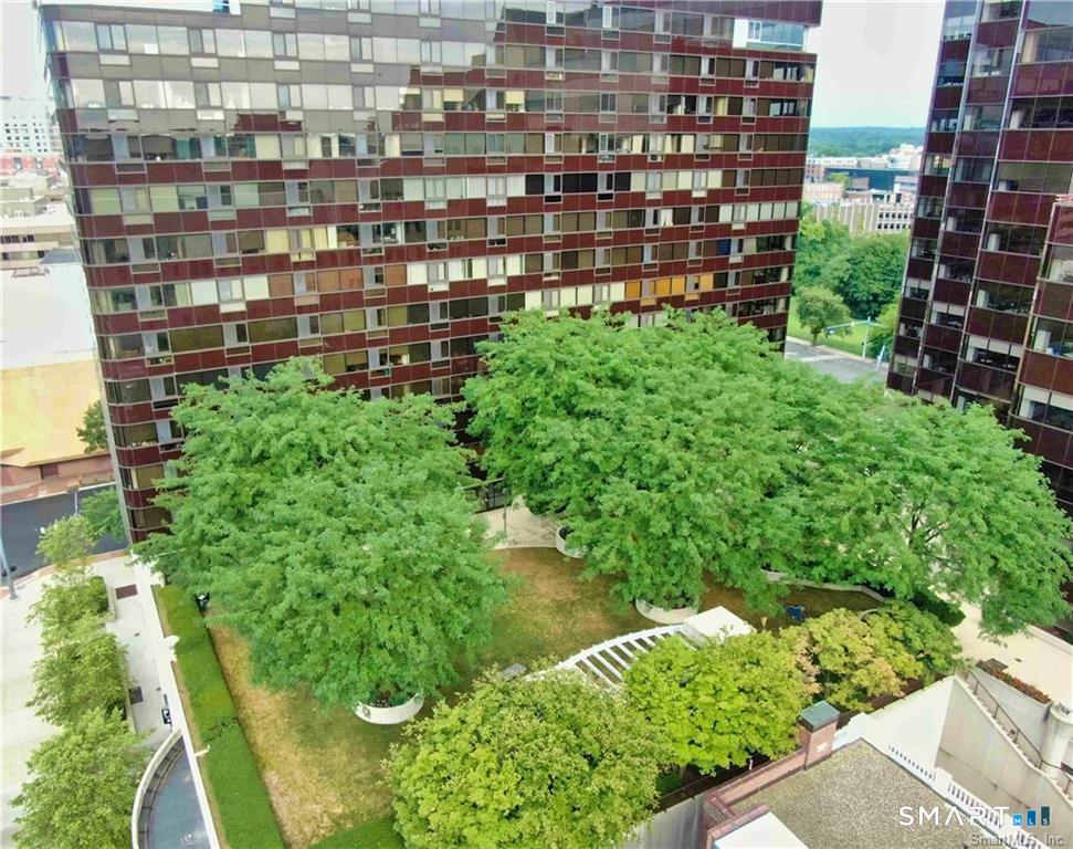 Styling Modern 1Bedroom/1BA/Wash-Dry At 127 Greyrock, The Biltmore, In The Heart Of Downtown. Chic 24/7 Concierge High-Rise with 1 Level Living. Meticulously RENOVATED Condo #1206. High floor Has Lovely Eastern Water views and courtyard Park below. Extensive Updates! All Rooms with Wood Floors, Renovated Kitchen - Cabinets, Counters And Stainless Appliances. Beautifully Renovated Bath with Rare WASHER/DRYER in Unit. Sophisticated Designer Paint, Recessed Lighting thru out. Special Film on Windows to protect furniture from sunlight. More HIGH-VALUE Perks include new HVAC 2020, Hot Water Heater(2022), and Current ASSESSMENT PAID-In-FULL! Biltmore boast large Fitness Center, Lounge, and access to 4th flr Park. RENT Parking from Propark Garage $118+/Month/Car. Rentals Allowed. Move-In Ready! Located Across From Stamford Town Center - Pickle Ball, Restaurants, NY Comedy, Place Theater, Entertainment and more - Great Location! Schedule Your Private Tour Today!
