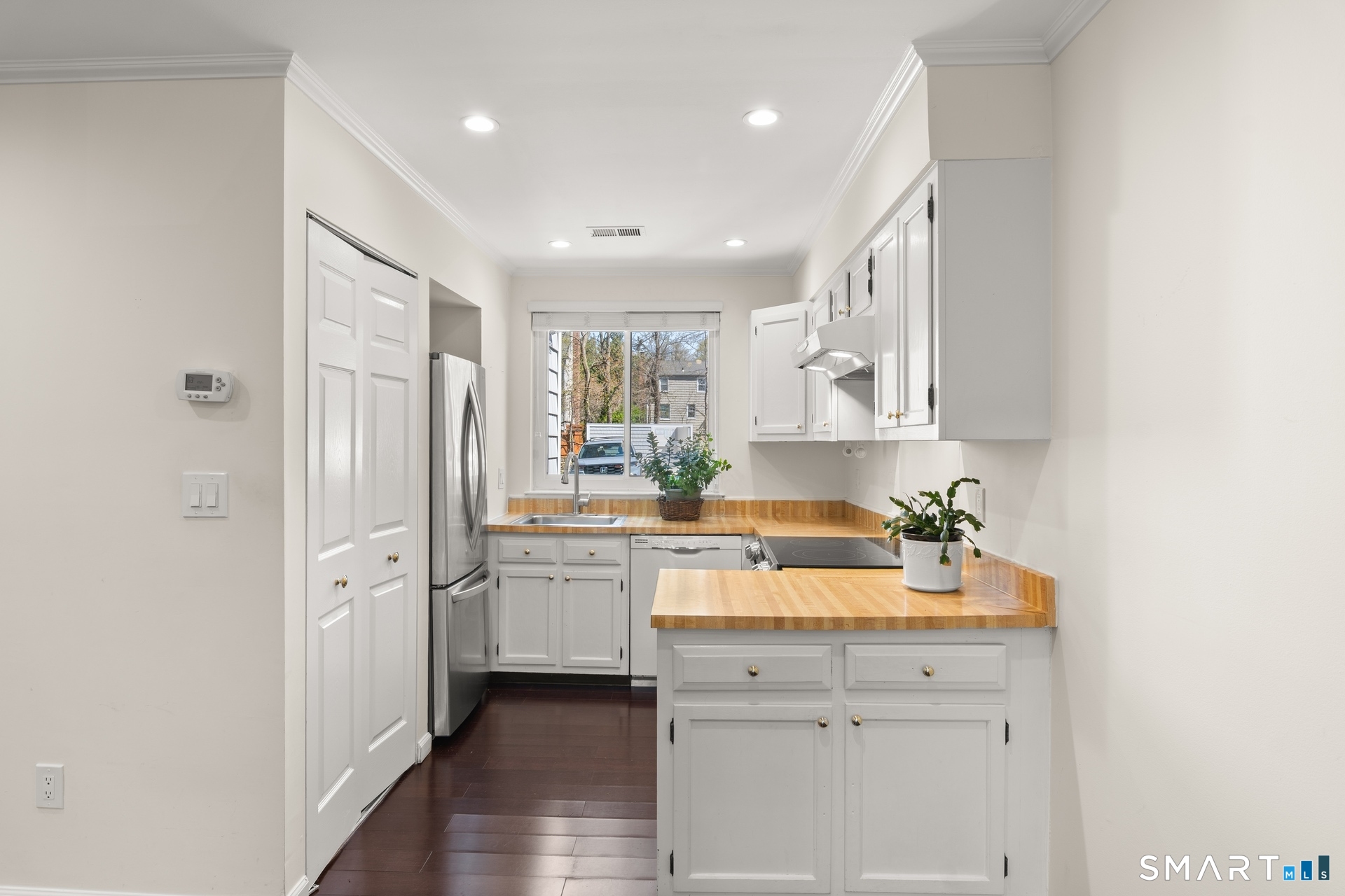 Welcome to sought-after Rowayton Woods, where comfort, convenience, and community come together. This bright 2-bedroom condo features a private porch off the living room overlooking treetops and the sunset-perfect for morning coffee or evening unwinding. Enjoy an easy stroll to the beautifully maintained pool for summer relaxation, plus convenient access to the Rowayton train station for commuters. Just minutes to Rowayton village, shops, dining, and waterfront, this home offers the rare opportunity to enjoy the charm and lifestyle of Rowayton living in a peaceful, maintenance-free setting.