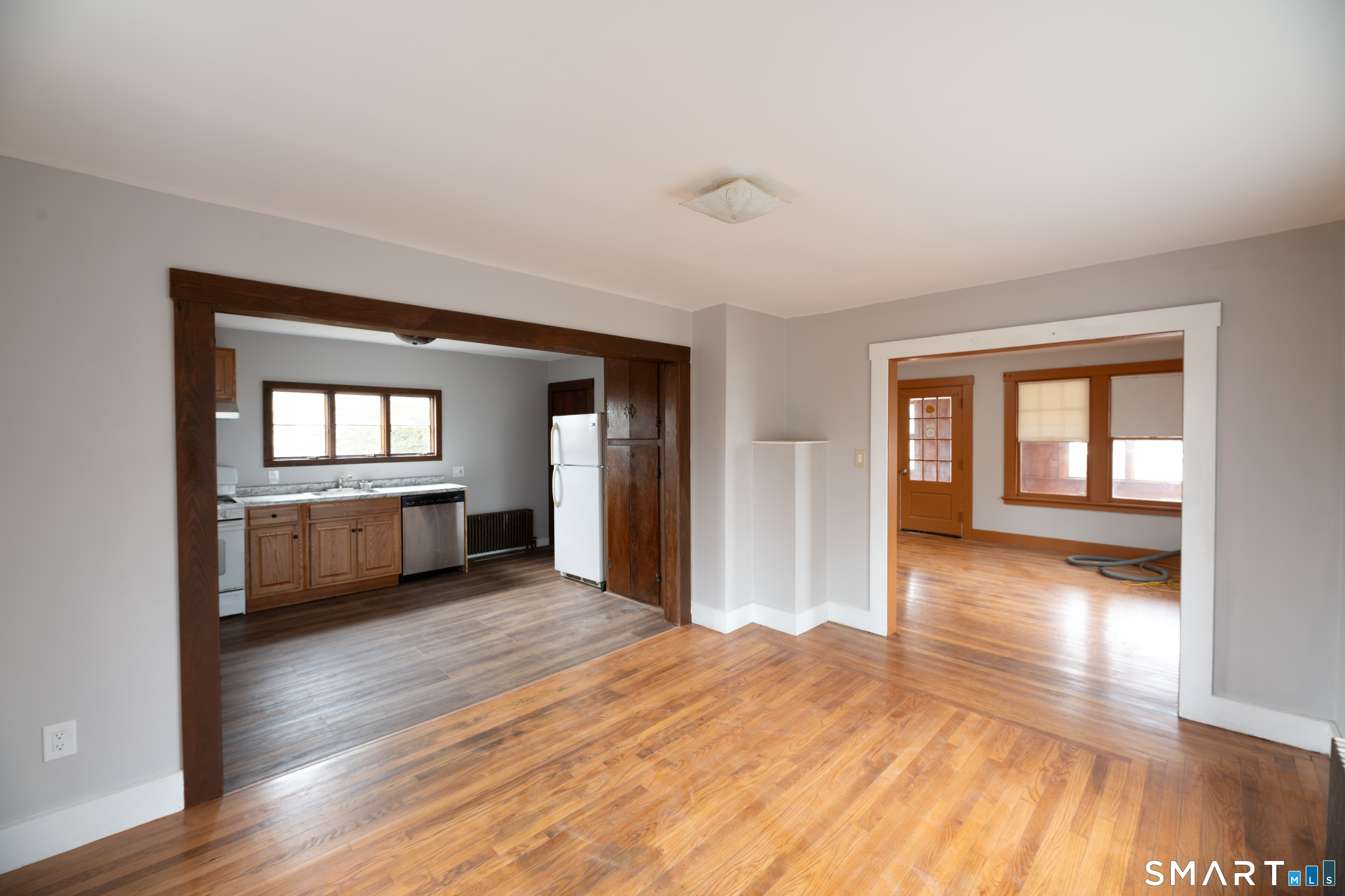 Welcome to this charming home nestled in a quiet residential neighborhood in East Haven. Featuring a bright and functional layout with hardwood floors throughout, this home offers both comfort and versatility. The main level includes a spacious living room, dining area, and kitchen, ideal for everyday living and entertaining. A standout feature is the sun-filled breezeway, perfect as a relaxing sitting area, home office, or flex space to enjoy the peaceful surroundings. Laundry is conveniently located on the main floor. Upstairs, you'll find two bedrooms plus an additional flex space (hallway with closet) that can easily serve as a third bedroom, guest room, or office. The upper level also features a fully renovated full bathroom, offering a fresh and modern feel.Step outside to a private patio and yard, ideal for outdoor relaxation or hosting. Conveniently located just minutes from shopping centers, grocery stores, and restaurants, making daily errands effortless. Enjoy easy access to downtown New Haven, Yale University, and major hospitals, making this an excellent choice for commuters. Nearby parks, beaches, and outdoor recreation add to the overall lifestyle appeal.