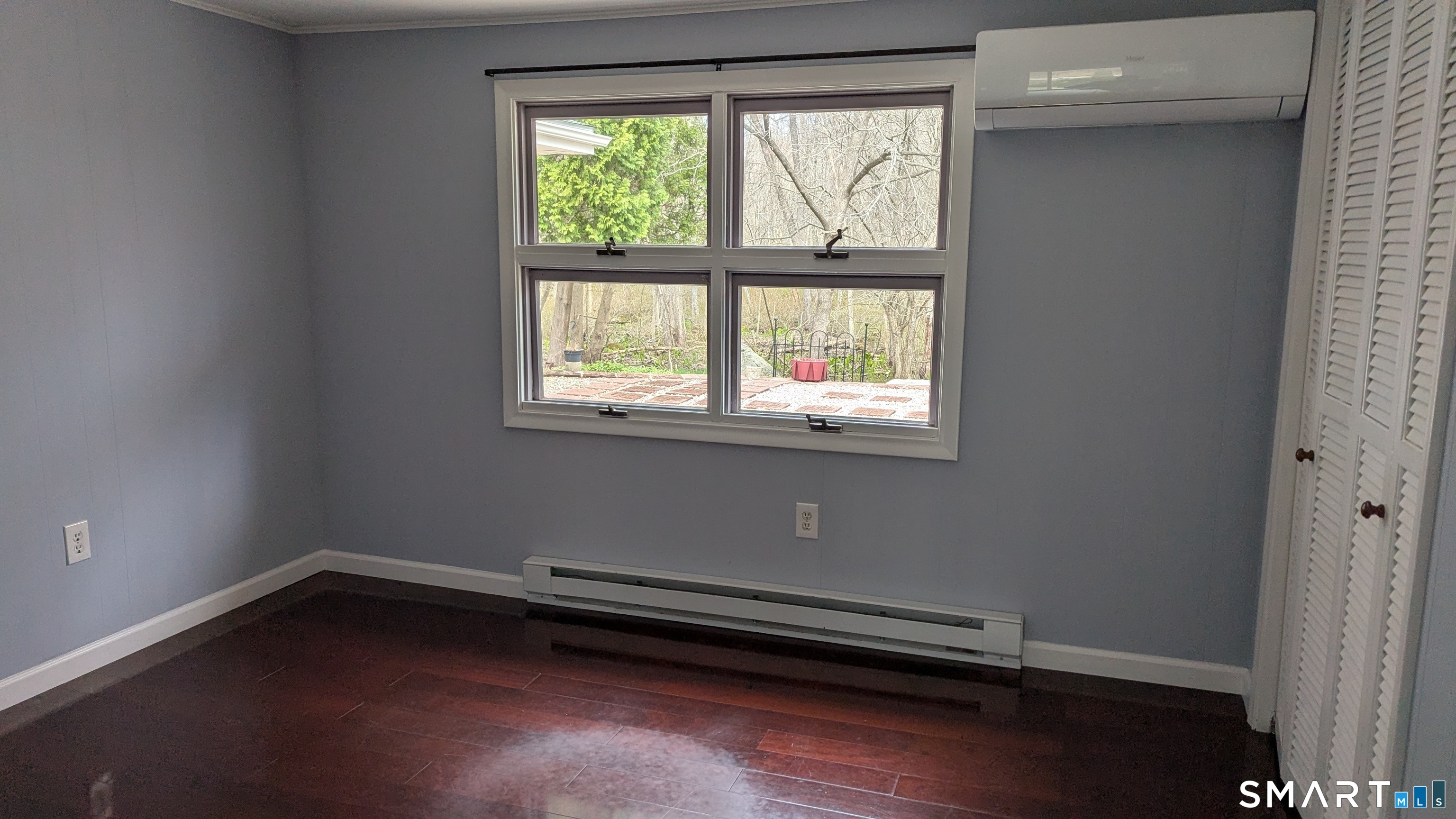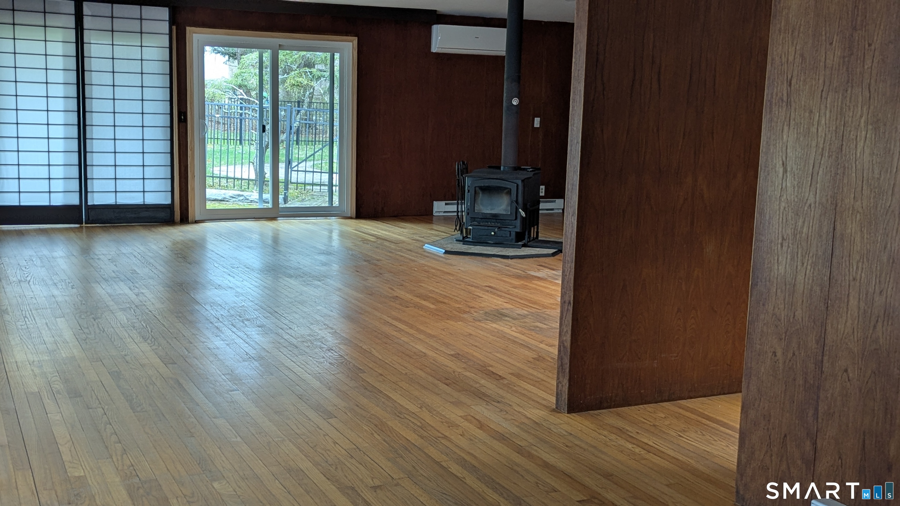 Large contemporary ranch available immediately. Possible 4 large bedrooms, all with a mini split allowing individual heating and cooling in each room. Huge living room with a wall of windows that let the sun in to help with heating and a wood stove. Beautiful wood floors everywhere. Two nice large outdoor areas, a large patio and a grassy area with a building for storage. Only minutes from campus and shopping.