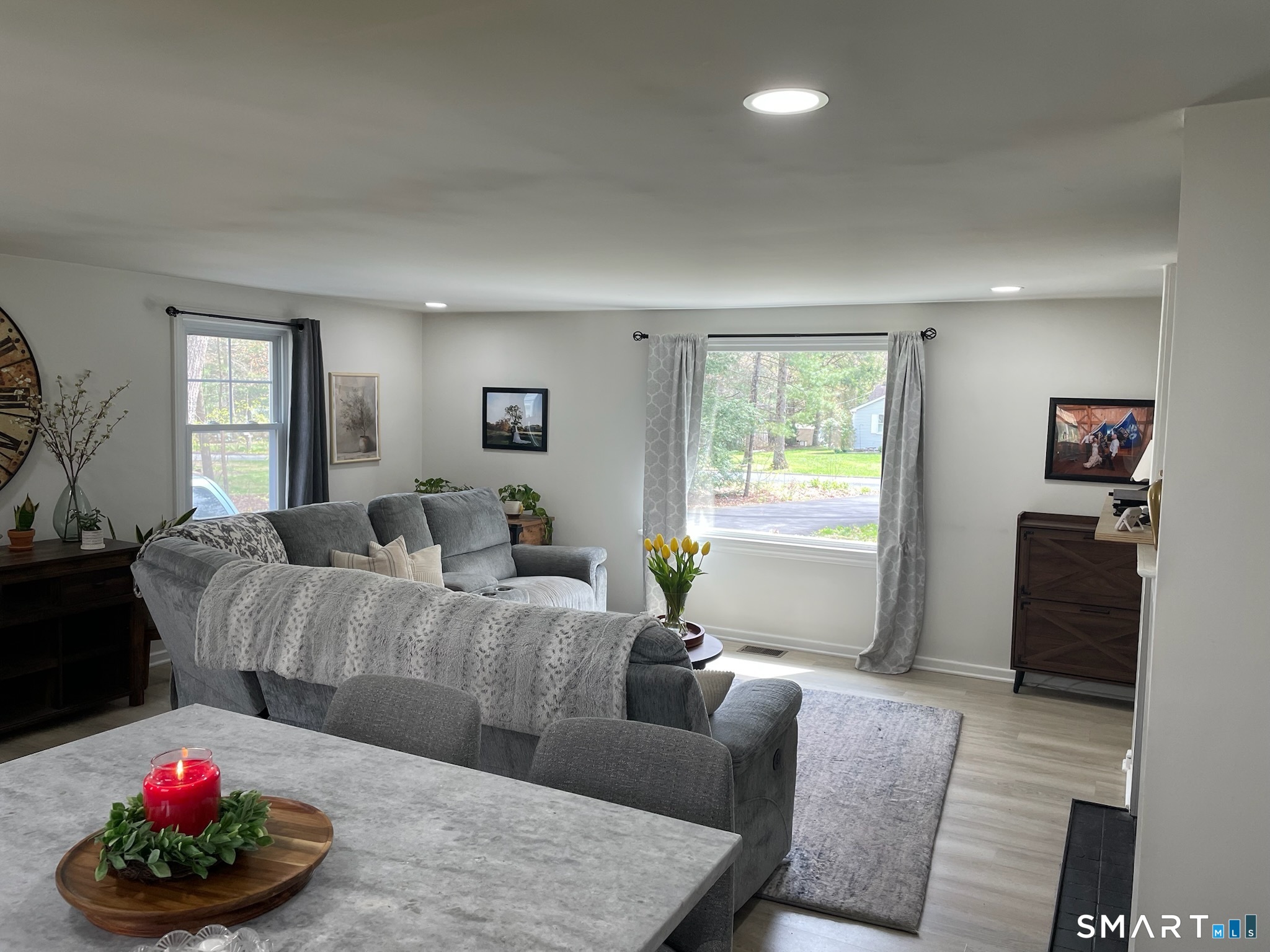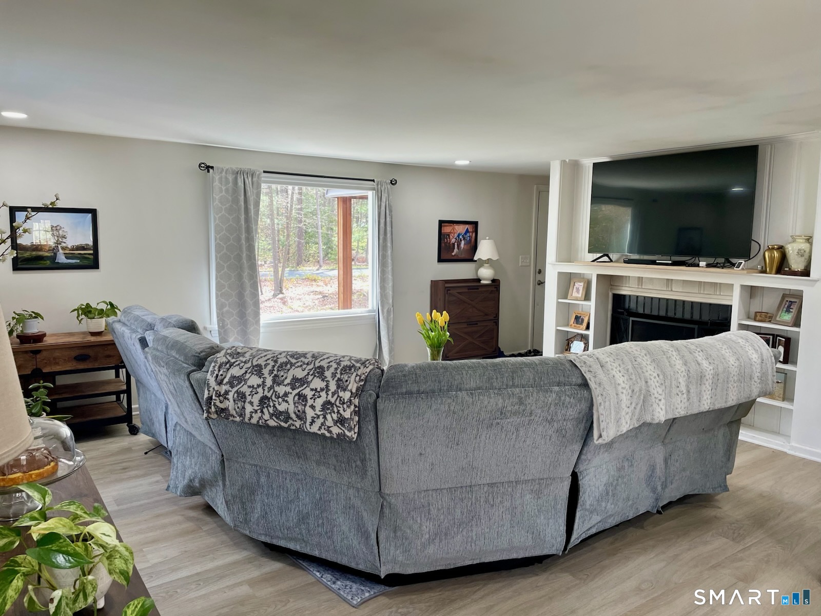 Inviting ranch, newly renovated and ready for comfortable, stylish living. Step inside to discover a spacious open floor plan, perfect for entertaining and everyday relaxation. The kitchen features a modern breakfast bar, ideal for morning coffee or casual meals, while the cozy fireplace adds warmth and charm to the main living area. Enjoy convenient one-floor living with easy flow throughout the home. Nestled on a quiet cul-de-sac, this property offers both privacy and a sense of community. The backyard features a scenic trail that borders state land, providing endless opportunities for nature walks and outdoor adventures. The basement includes a half bath and has the potential to be finished, offering extra space to suit your needs. A two-car detached garage gives plenty of room for vehicles, storage, or hobbies. If you're seeking a beautiful home that blends comfort, convenience, and access to the outdoors, this ranch is a fantastic choice.