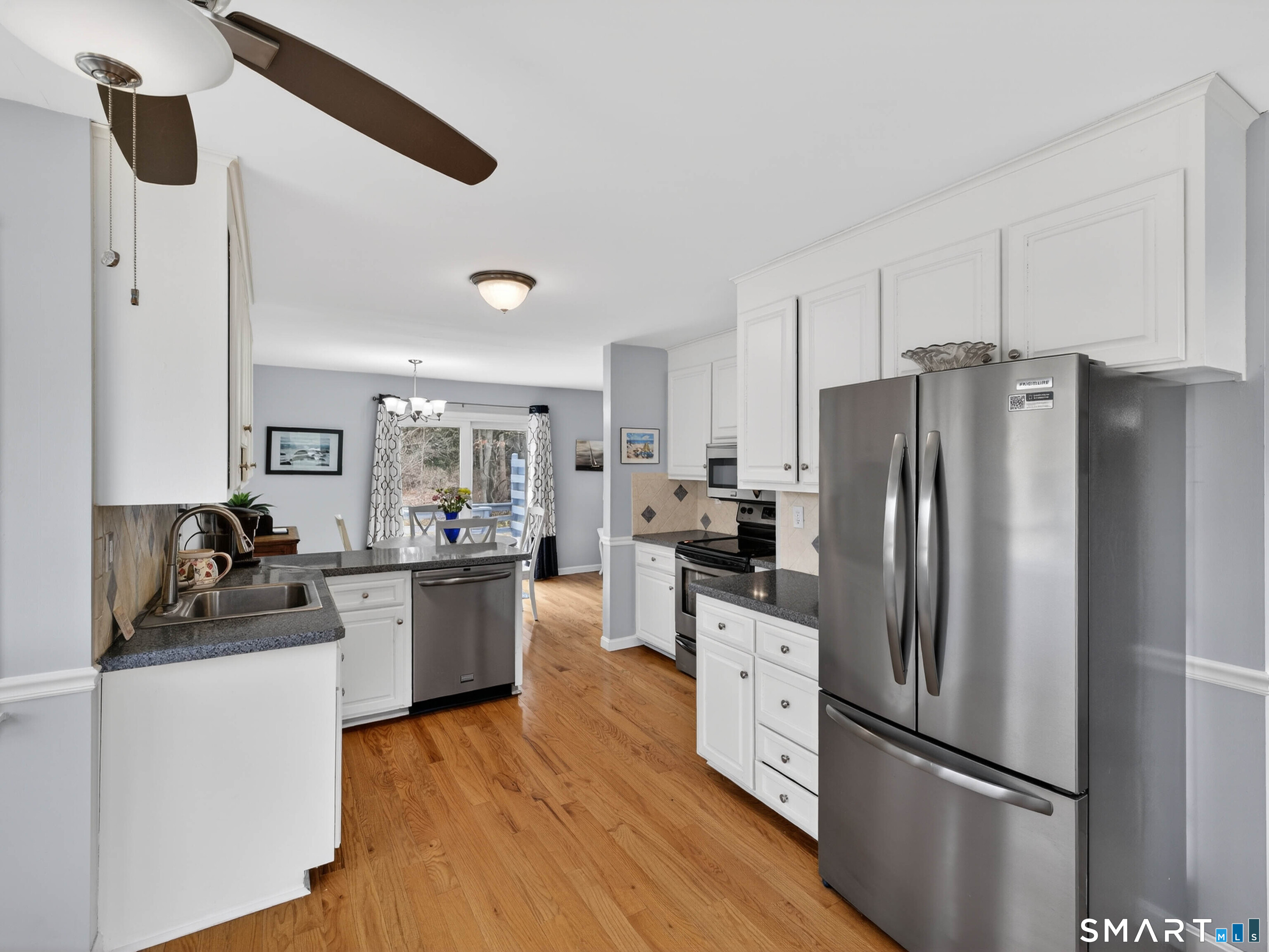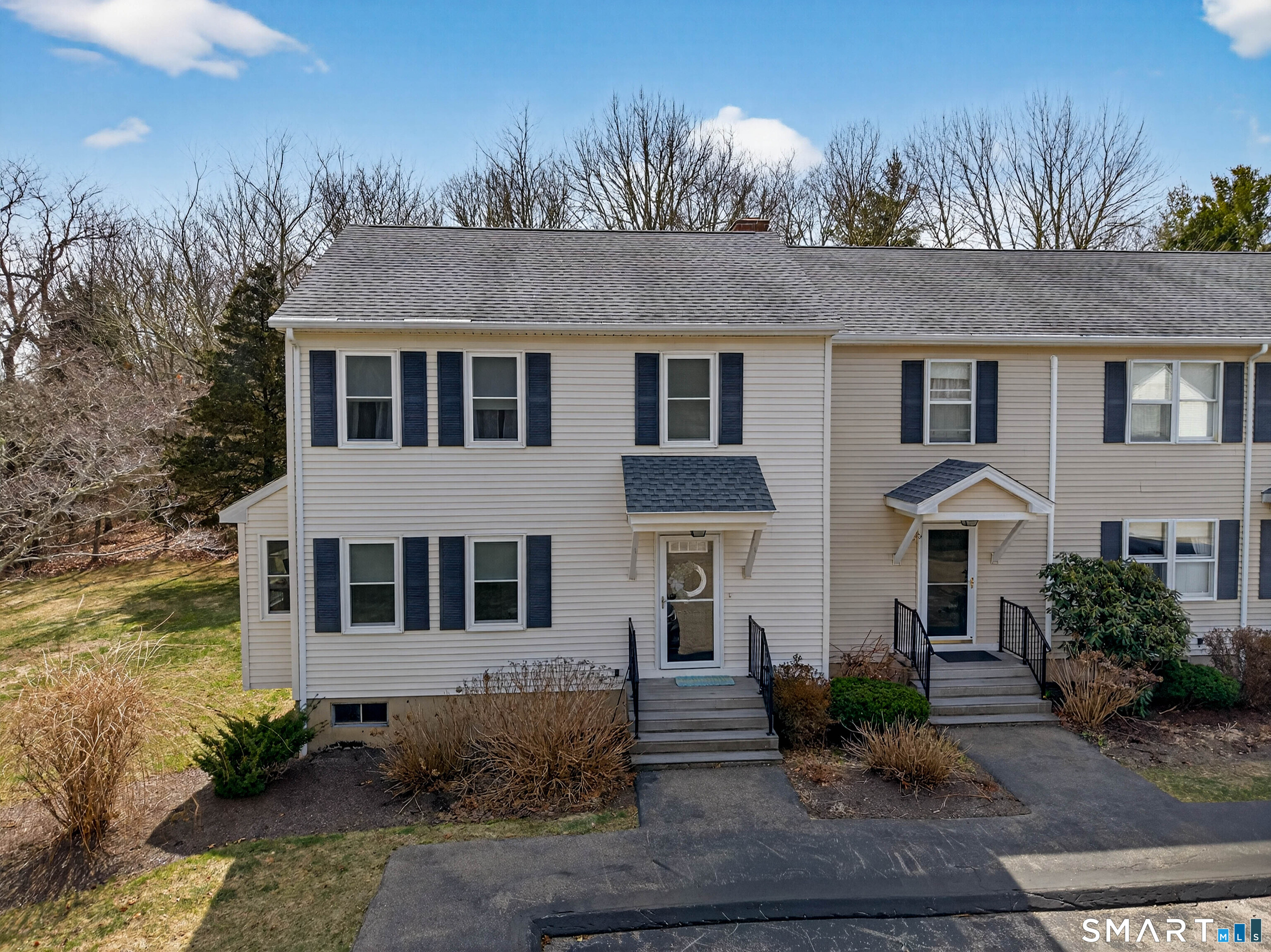 Desirable end unit Townhouse set on a quiet cul-de-sac. This 2-bedroom, 2.5 bath condo features a spacious kitchen with stainless steel appliances and a dedicated dining area with a slider leading to a private deck overlooking the wooded landscape. The living room receives plenty of natural light and features a beautiful wood burning brick fireplace. A half bath finishes the main level. The upper level offers a large primary bedroom with a full private bath and a walk-in closet, along with a second generously sized bedroom that also includes its own full bath. A full basement with hatch access opens to the backyard that backs up to the woods for added privacy. This home provides convenient access to local shops, dining, and some of the region's most beautiful beaches, with ~12 minutes to Stonington Borough, ~15 minutes to Downtown Mystic, and about 7 minutes to the Westerly, RI border. Schedule your showing today and see how easy living can be.