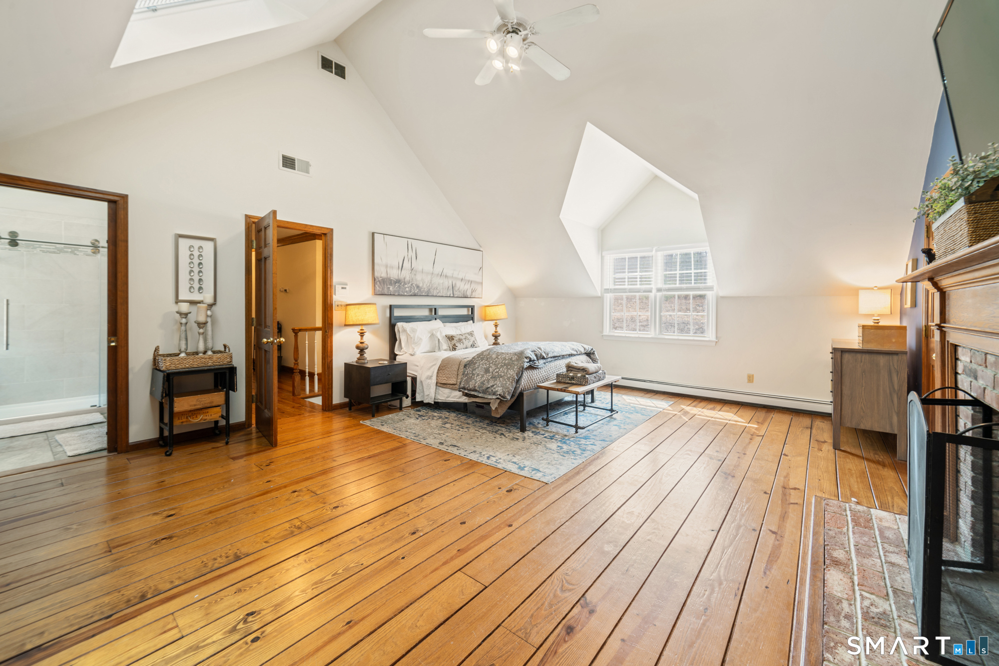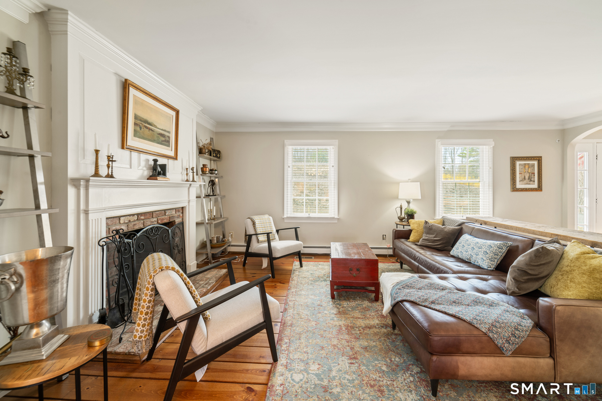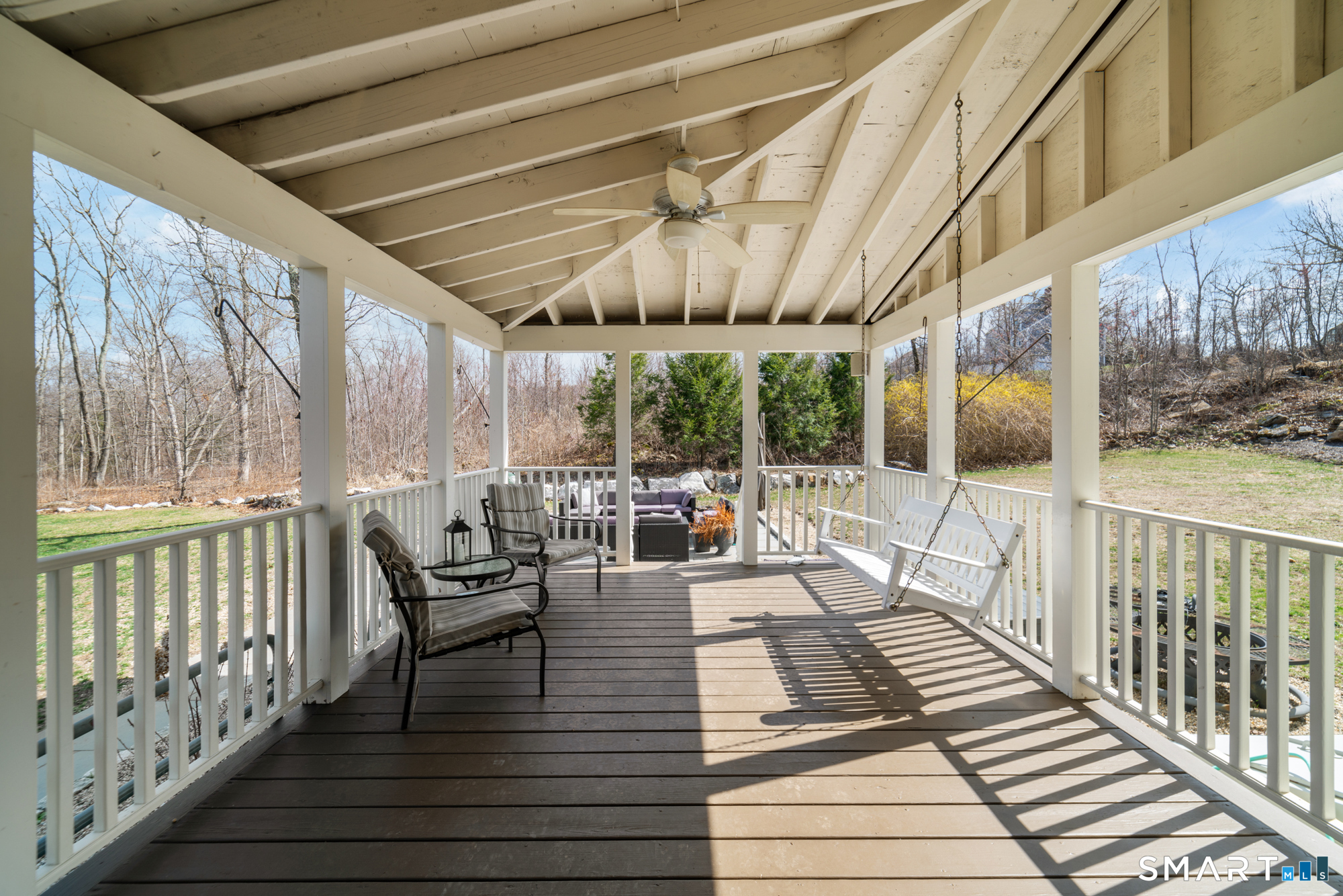 This beautiful home offers three finished floors of living space, providing ample room for comfortable living and entertaining. Equipped with 3 fireplaces and a 5-zone heating system, the residence ensures warmth and comfort throughout. The newer hydro air furnace, septic tank, and roof contribute to the home's efficiency and peace of mind. Inside, the family room features a convenient mini-bar, perfect for gatherings. Three sets of French doors enhance the home's aesthetic appeal, allowing abundant natural light to brighten interior spaces. Primary bedroom includes a fireplace, adding a touch of luxury and coziness and has ample closet space. There is a formal living room and dining room and the kitchen is equipped with a pantry, offering practical storage solutions. There is a large office on the 2nd floor and third floor features an Au Pair or Suite. Outside, a relaxing full-length porch overlooks a fire pit, providing an ideal setting for outdoor enjoyment. A covered porch not only enhances the home's curb appeal but also extends its living space, offering a sheltered area for relaxation and entertainment year-round. Incorporating a fire pit into an outdoor living space provides warmth, comfort, and an inviting ambiance. It is such a peaceful backyard. Driveway was recently paved and a new stacked stone mailbox added. Home is conveniently located to town, highway, schools, restaurants and many conveniences. It's a joy to live in Southbury, why not live here yourself?