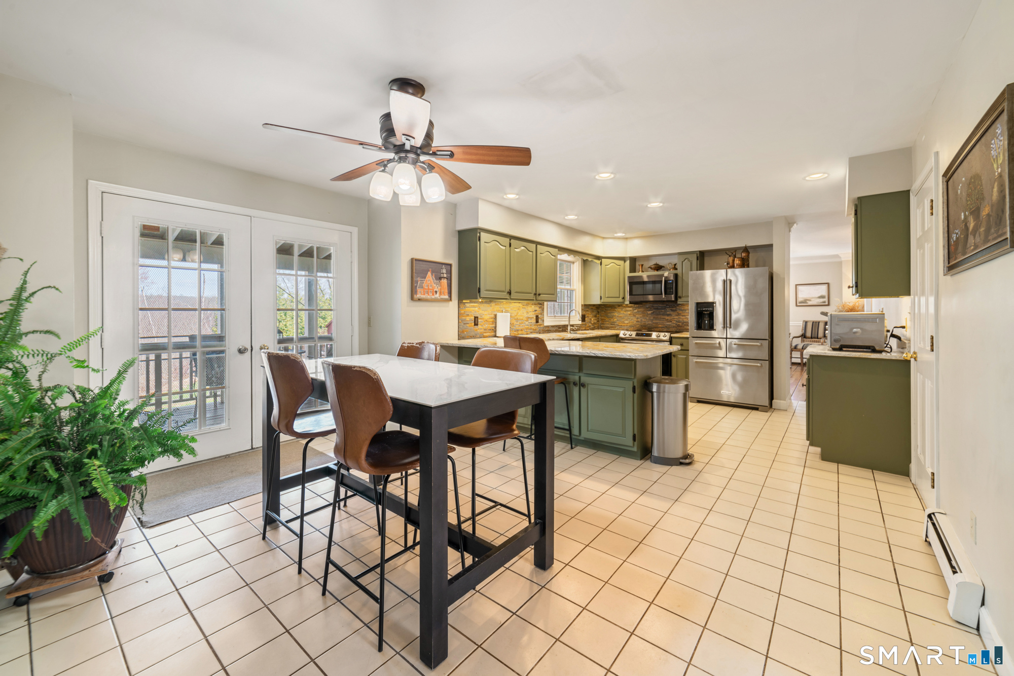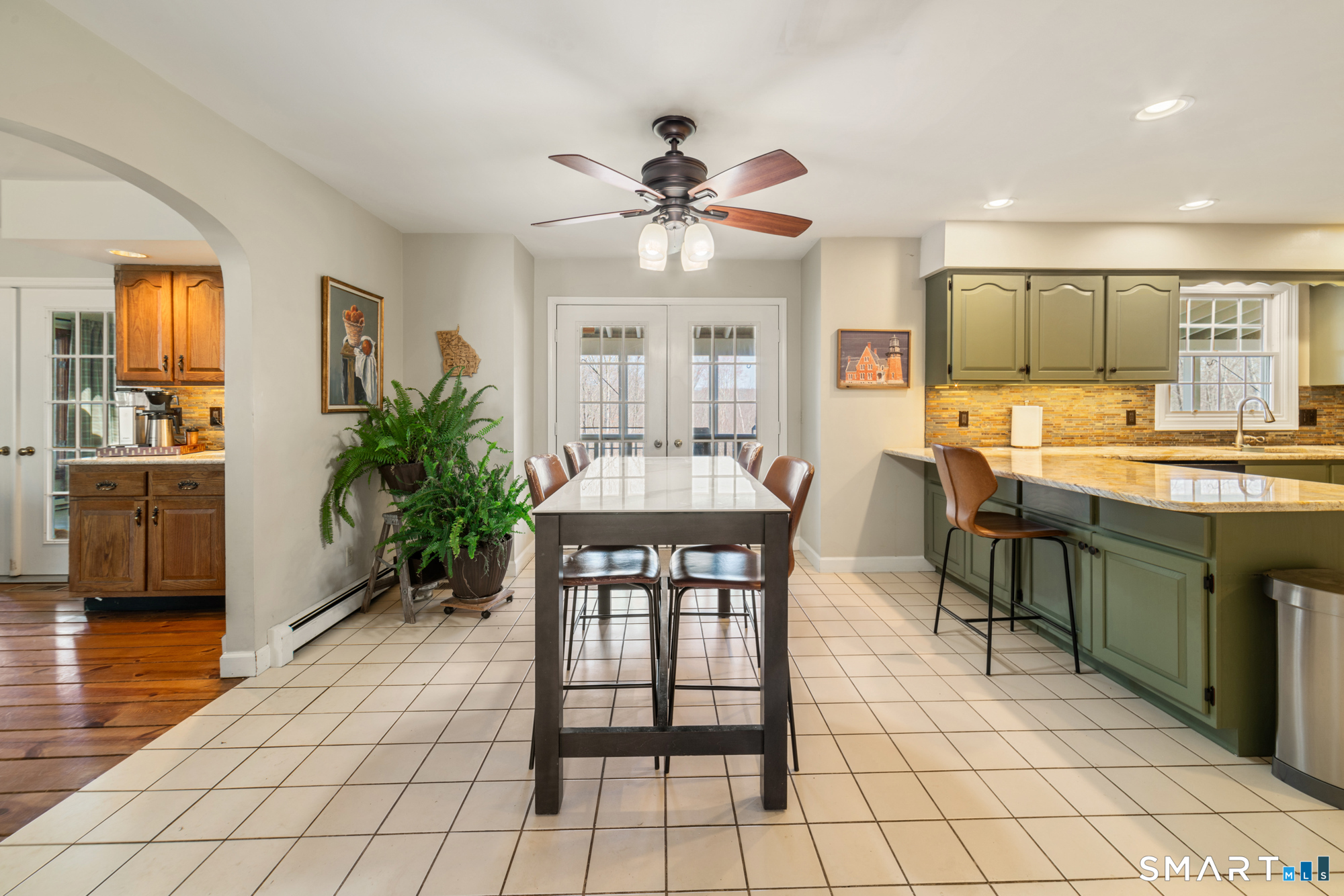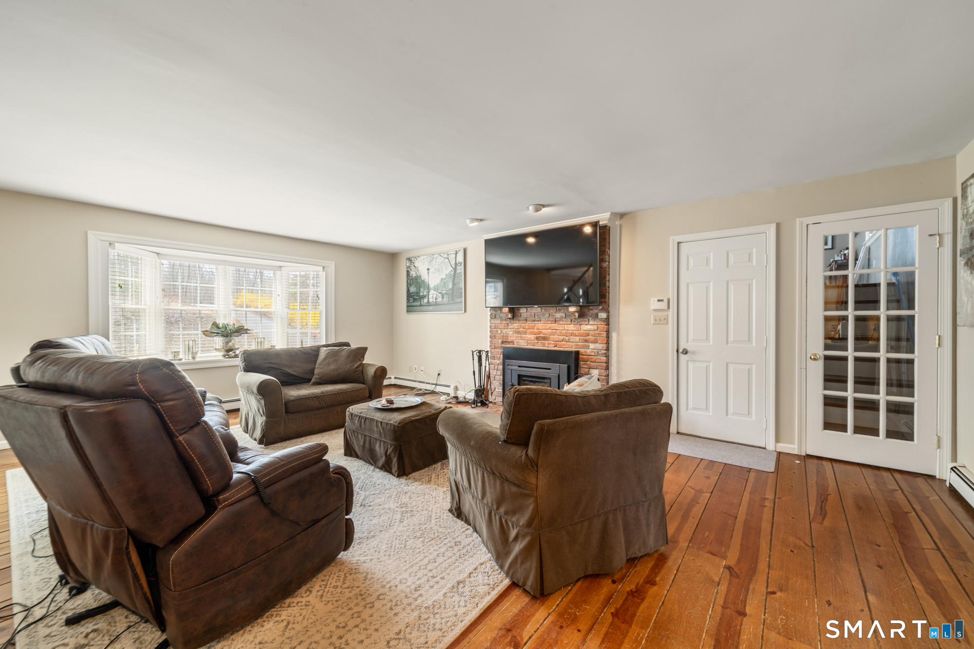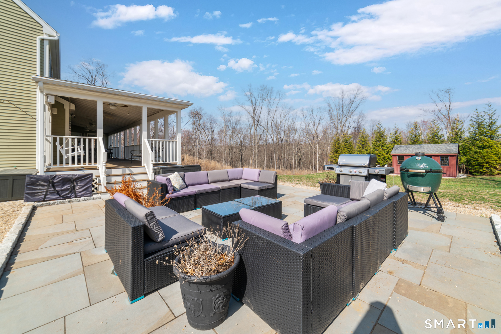 This beautiful home offers three finished floors of living space, providing ample room for comfortable living and entertaining. Equipped with 3 fireplaces and a 5-zone heating system, the residence ensures warmth and comfort throughout. The newer hydro air furnace, septic tank, and roof contribute to the home's efficiency and peace of mind. Inside, the family room features a convenient mini-bar, perfect for gatherings. Three sets of French doors enhance the home's aesthetic appeal, allowing abundant natural light to brighten interior spaces. Primary bedroom includes a fireplace, adding a touch of luxury and coziness and has ample closet space. There is a formal living room and dining room and the kitchen is equipped with a pantry, offering practical storage solutions. There is a large office on the 2nd floor and third floor features an Au Pair or Suite. Outside, a relaxing full-length porch overlooks a fire pit, providing an ideal setting for outdoor enjoyment. A covered porch not only enhances the home's curb appeal but also extends its living space, offering a sheltered area for relaxation and entertainment year-round. Incorporating a fire pit into an outdoor living space provides warmth, comfort, and an inviting ambiance. It is such a peaceful backyard. Driveway was recently paved and a new stacked stone mailbox added. Home is conveniently located to town, highway, schools, restaurants and many conveniences. It's a joy to live in Southbury, why not live here yourself?