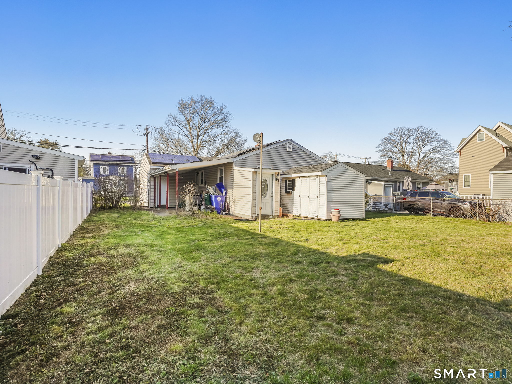 Low maintenance ranch-style home in a convenient location, offering comfort, flexibility, and great potential! This property features durable vinyl siding and an attached garage for added convenience. The main level includes two spacious bedrooms-formerly three and easily convertible back to suit your needs-along with a bright and inviting living space. The finished lower level expands your living options with excellent in-law apartment potential, complete with a full bath, bedroom, office and a combined kitchen/living area-ideal for extended family, guests, or additional living space. Enjoy the outdoors in the fenced yard, perfect for pets, entertaining, or relaxation. There is a covered patio plus a handy storage shed for all your tools and equipment. Close to beaches, parks, library, town center and schools. Walk to train!