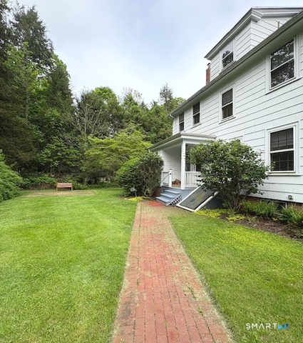 Gracious 4 bedroom, 2.5 bath 1927 Colonial on 1.50 acres in a central location near town center and library and across from Amity High School. Interior recently painted and hardwood floors refinished. Formal living room with fireplace and crown molding. Den/study with fireplace, sun room & formal dining room and large modern, fully applianced kitchen with first floor laundry room with washer and dryer. All bathrooms have been updated. Patio with patio furniture included. Oil fired, radiators for heat. Electric hot water. Well water (water included in rent) and septic sewage system. Detached 2 car garage, plus 2 parking spaces. Pets possible. Landlord is responsible for lawn mowing and snow removal. Beautiful charming home only 12 minutes to Yale and downtown New Haven.