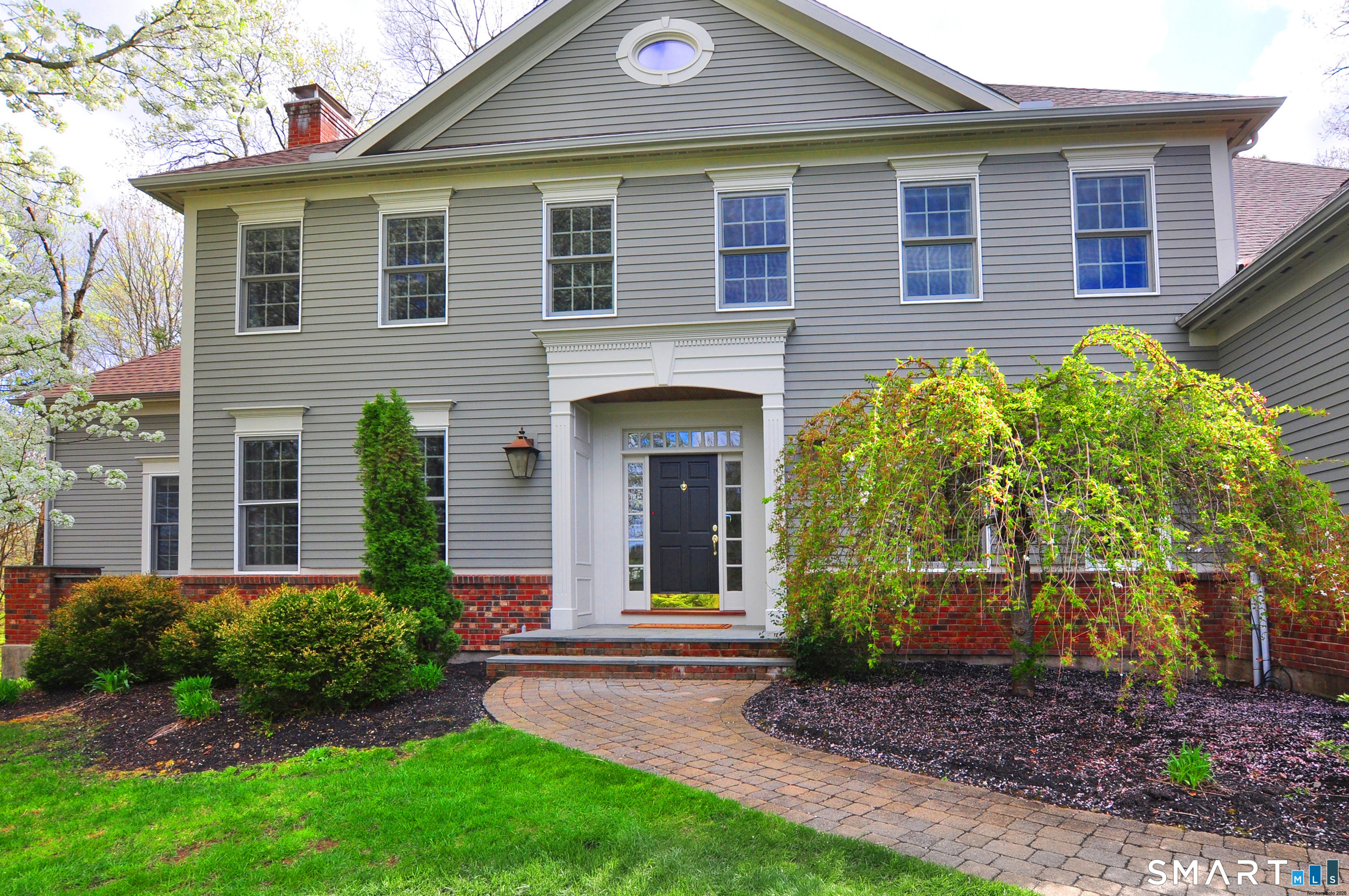 Beautifully set at the end of a cul-de-sac in highly sought-after Strawberry Fields, this stunning home is nestled on 1.83 picturesque acres. Offering over 5,900 square feet of thoughtfully designed living space, including the finished walkout lower level, this home blends elegance, space, & comfortable everyday living. Opportunities like this are rare in this highly sought-after neighborhood in the heart of Granby. Step inside the impressive two-story foyer featuring a split staircase & custom millwork. To the right, a private office provides a quiet workspace, while to the left, a spacious formal dining room with fireplace & columned archway provides an easy, inviting space for gatherings. Architectural details continue throughout, including raised panel wainscoting & crown molding. The gourmet kitchen is a true centerpiece, featuring Taj Mahal quartz countertops, abundant cherry cabinetry, a spacious center island, & a six-burner gas range. It opens to a comfortable & welcoming family room with a fireplace-perfect for everyday living. Just off the kitchen, a sun-filled sunroom provides a peaceful retreat & access to the Trex deck, extending your living space outdoors with a dedicated gas line for grilling. A butler's pantry with sub-zero refrigerator, second dishwasher, & a walk-in pantry leads to an impressive bonus/game room featuring custom built-ins, a coffered ceiling, surround sound, & direct access to the deck-an exceptional space for entertaining,