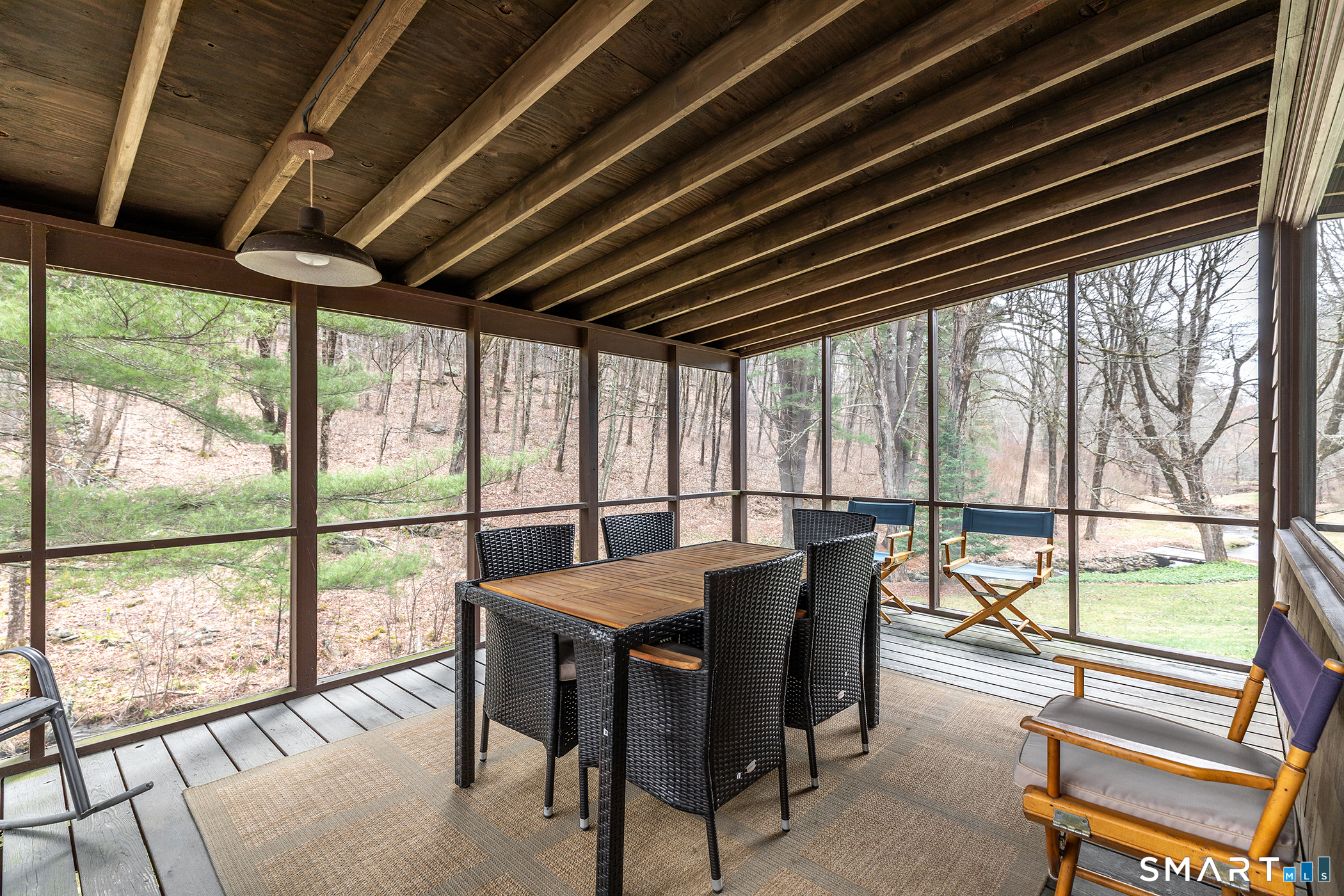 Over forty private wooded acres, a mountain stream, and hiking trails that lead to your own waterfall. This three-bedroom rustic stone cottage in the heart of the Litchfield Hills is the kind of country rental that's hard to find and harder to leave. A screen porch overlooks the running water, the living room has handsome exposed beams and opens to a covered porch, and wood-burning fireplaces make evenings in the formal dining room feel exactly right. One bedroom on the main level; the primary and third bedrooms up a level. The setting is quintessential Connecticut, located off a scenic country roads lined with antique homes. Macedonia Brook State Park at your doorstep, the village of Kent just minutes away, Metro-North is close by, and New York City just two hours away.