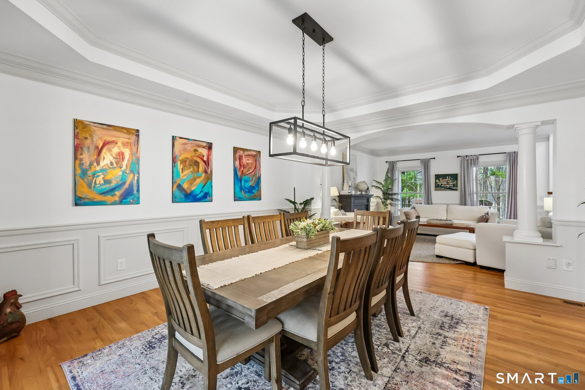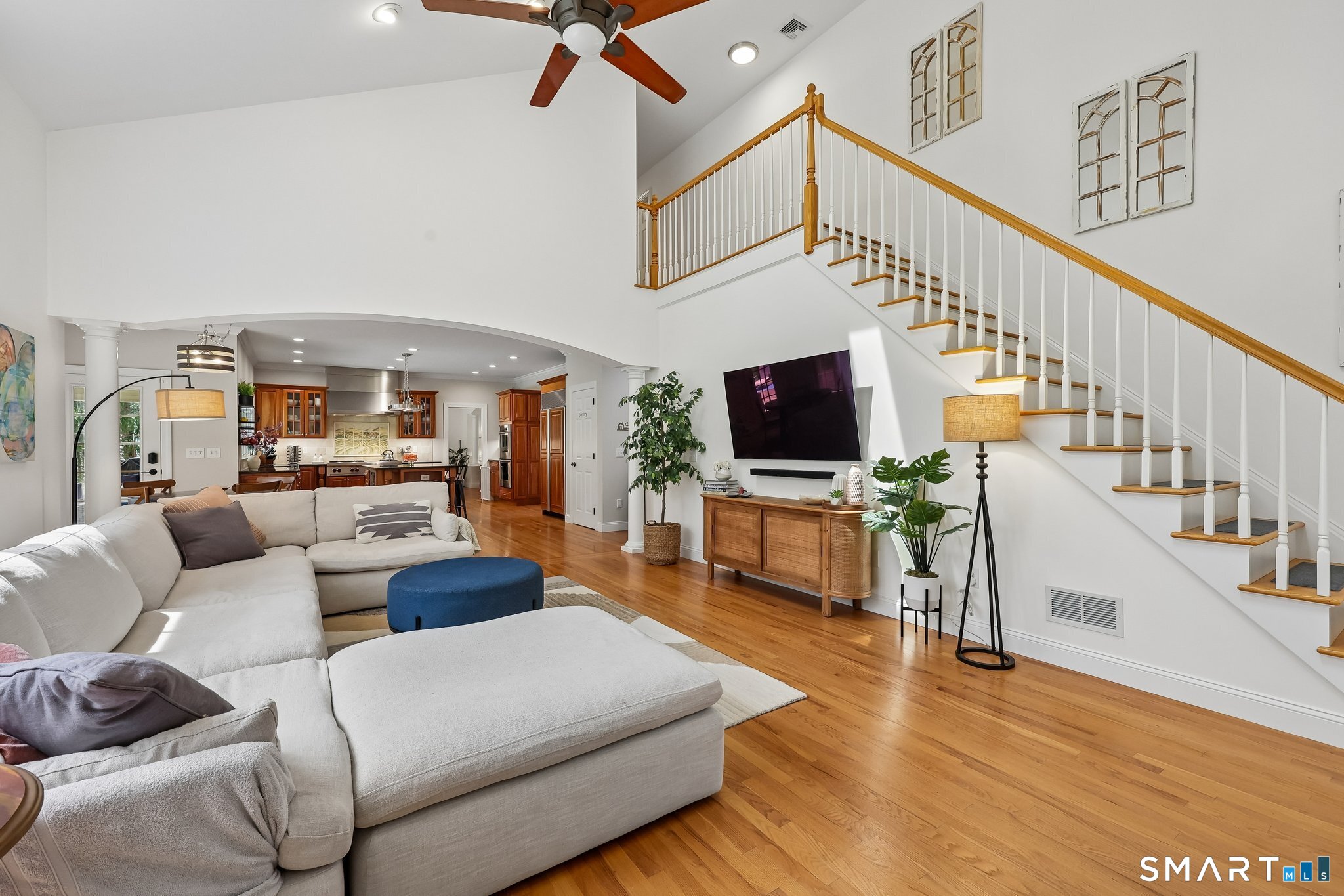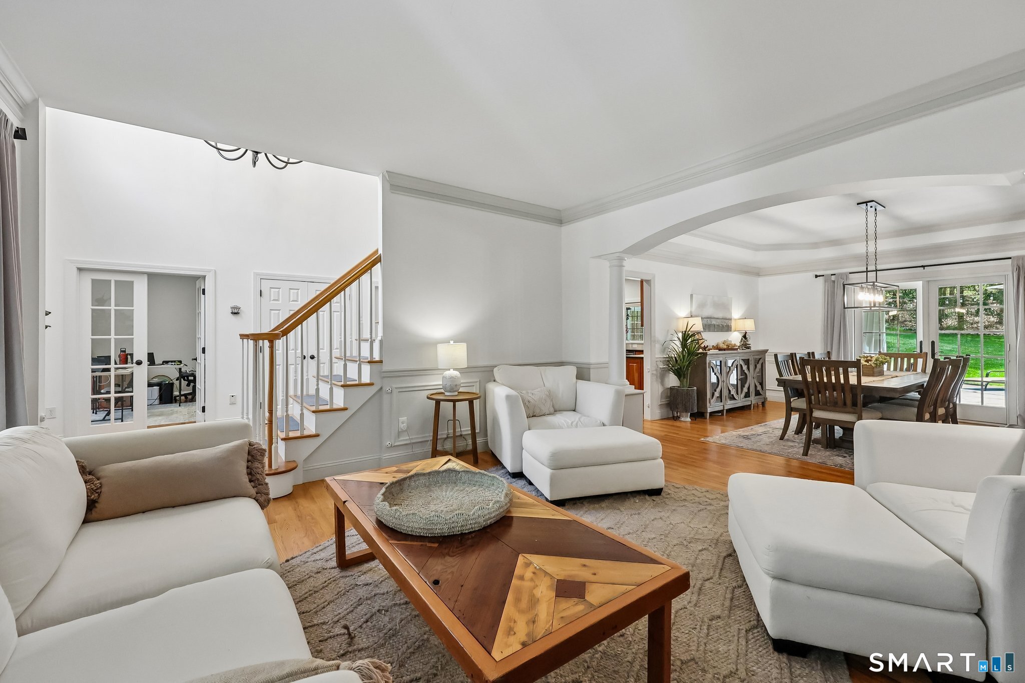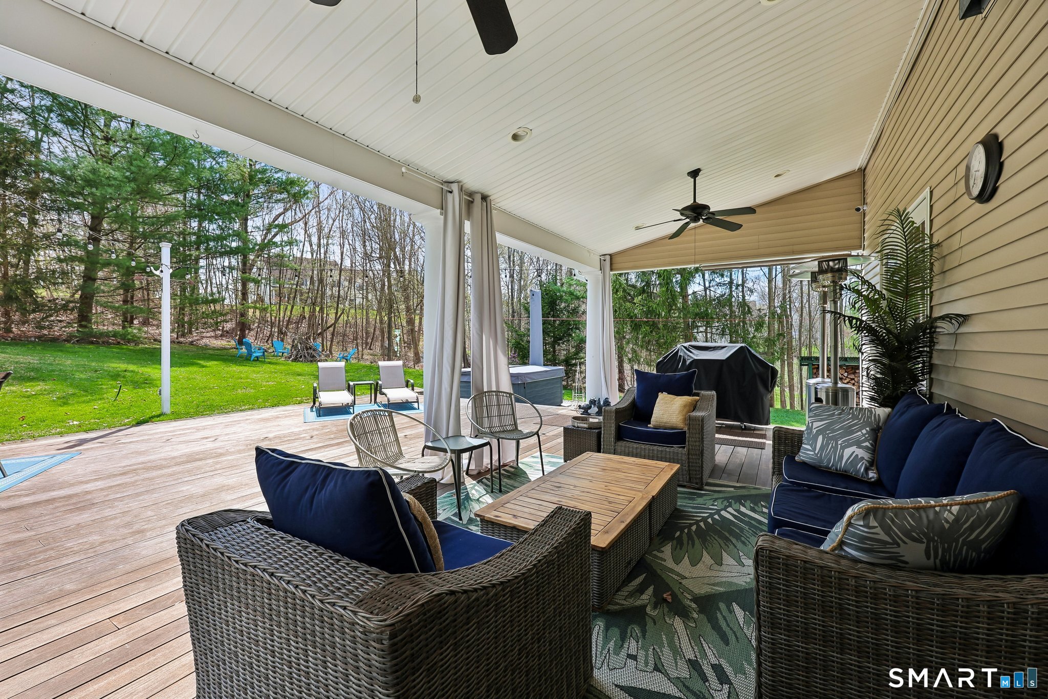 A refined blend of scale, light, and modern comfort, this exceptional Danbury residence is set on 2.65 private acres, offering both architectural presence and everyday livability. A dramatic interior unfolds with soaring 9+ ft ceilings, rich hardwood floors, and a striking vaulted family room with fireplace-creating a true centerpiece for gathering. The chef's kitchen is equally compelling, appointed with granite surfaces, a substantial island, and seamless flow into formal and informal dining spaces. The main level is further enhanced by a formal living room, powder room, and an office with French doors-ideal for today's work-from-home lifestyle. Upstairs, the primary suite delivers a quiet retreat with generous proportions, walk-in closet, and spa-like bath, while additional bedrooms provide flexibility for guests, office, or lifestyle needs. A ready-to-finish lower level adds dynamic bonus space-ideal for recreation, media, or fitness. Outdoors, an expansive deck and patio seamlessly extend the living space, thoughtfully designed with both covered and open-air sections for shaded relaxation or sun-filled entertaining, all overlooking the property's sweeping grounds. A private hot tub enhances the backyard experience, while in the front, a dedicated firepit area offers year-round enjoyment with tranquil views of East Lake Reservoir-an ideal backdrop for evening gatherings. Positioned for the modern commuter, the home offers easy access to highways and trains to NYC.