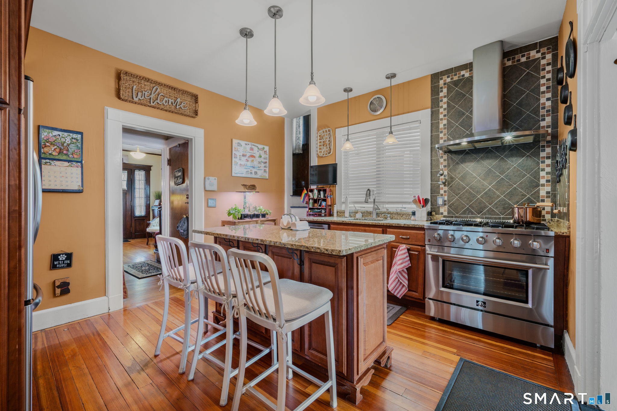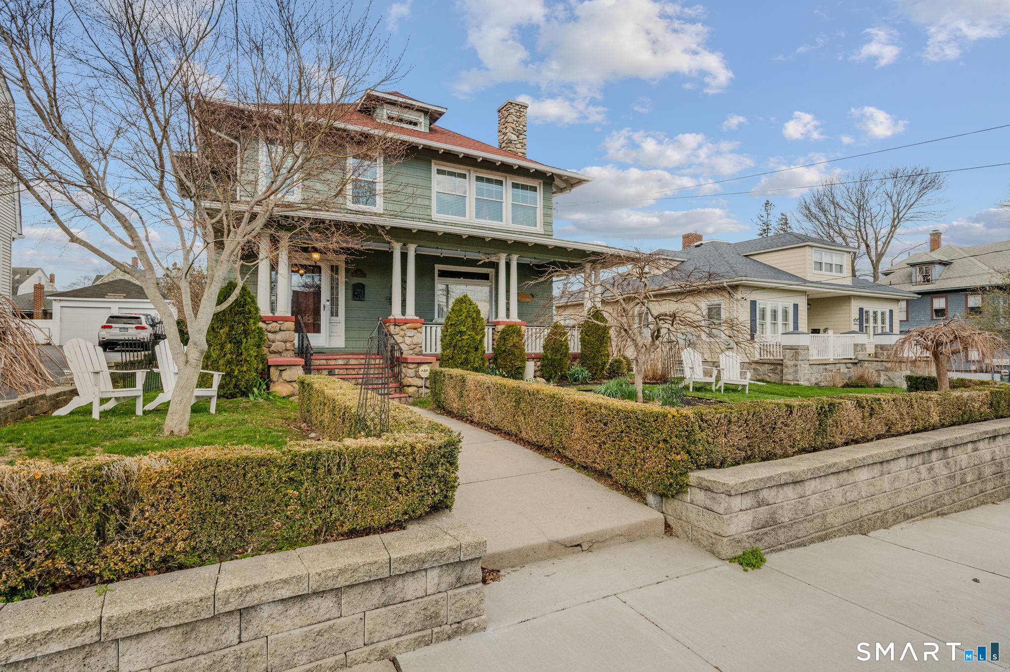 Welcome home to 29 Bellevue Place just overflowing with charm and craftsmanship. This is a turn of the century Craftsman style home where rich, warm original style meets modern updates! From the classic front porch with ceiling fans perfect for a midday julip, you'll step inside the original leaded glass oak door into the foyer where ahead the grand staircase elegantly stands before you. Once in the Living room, you're immediately transformed to a time where gorgeous oak trim, Coffered ceilings, built-ins with leaded glass were commonplace. The centerpiece of the living room is the warm fireplace. Wander into the formal dining room which features an entire bay wall with tall windows and natural light. In the remodeled chef's kitchen with Forno gas stove, center aisle, butler's staircase and loads of cabinetry featuring a fabulous butler's pantry that will be the envy of all! Off the back of the kitchen is a brand-new powder room leading to a fantastic new deck overlooking the fenced backyard with lots of garden area! The second-floor features 3 generous bedrooms, a remodeled main bath with walk-in shower and an extra room with ANOTHER fireplace! Perfect for home office, study, library or den. The lower level has an amazing bar for hosting incredible parties. This home has everything you're looking for in a wonderful established neighborhood with central island that hosts neighborhood gatherings! New heating system, Updated roof, windows. This is the one!