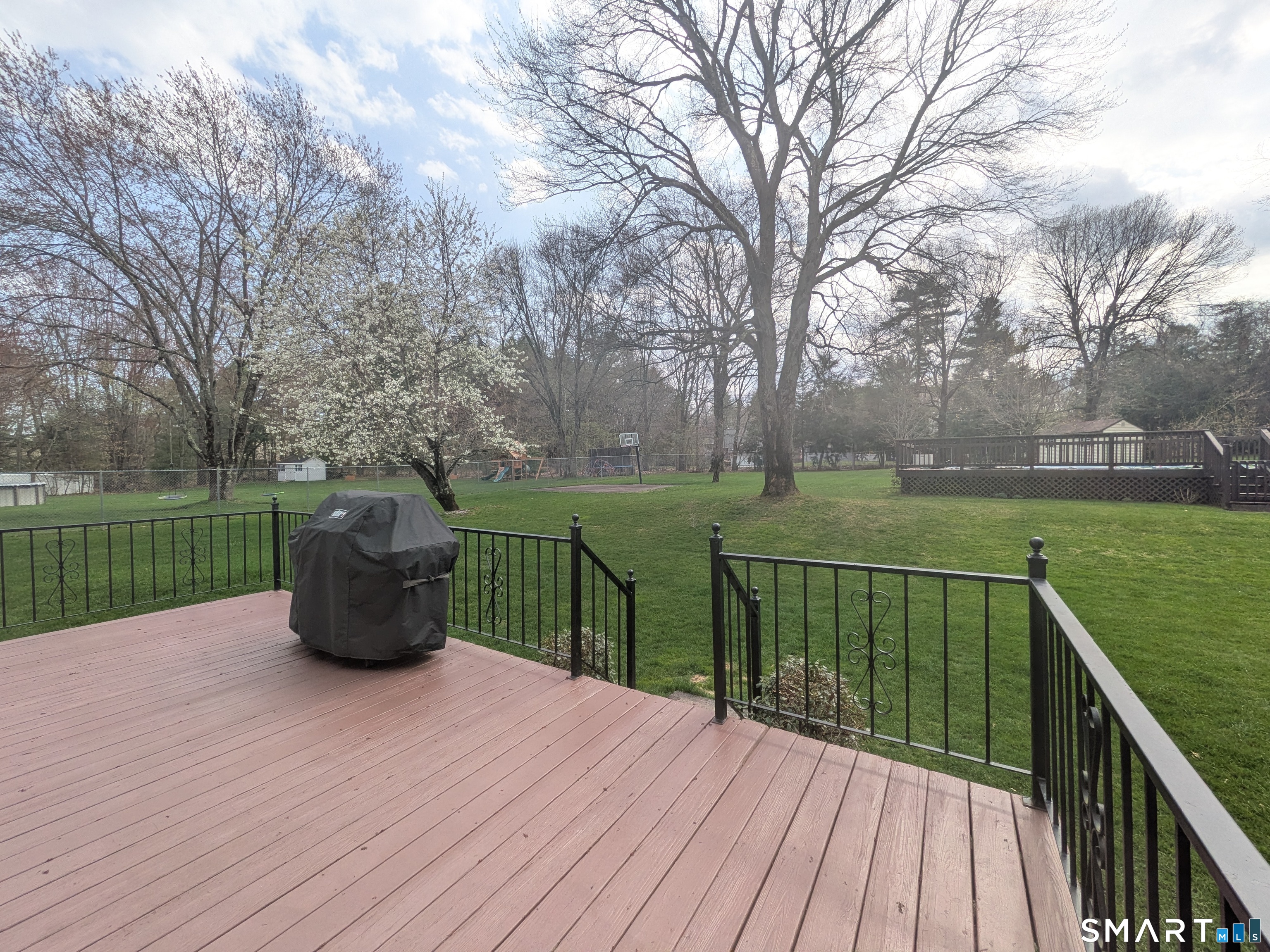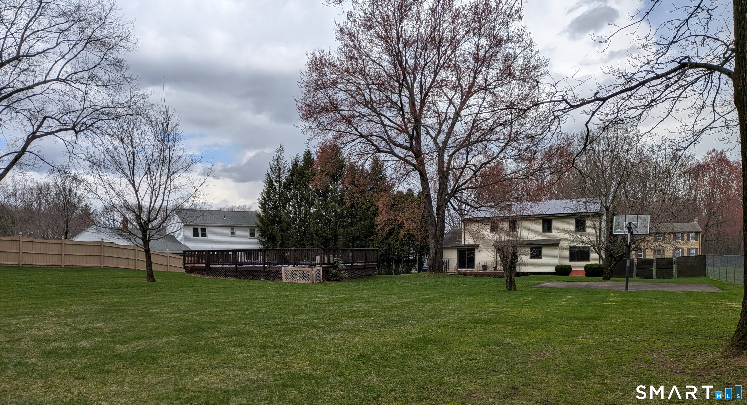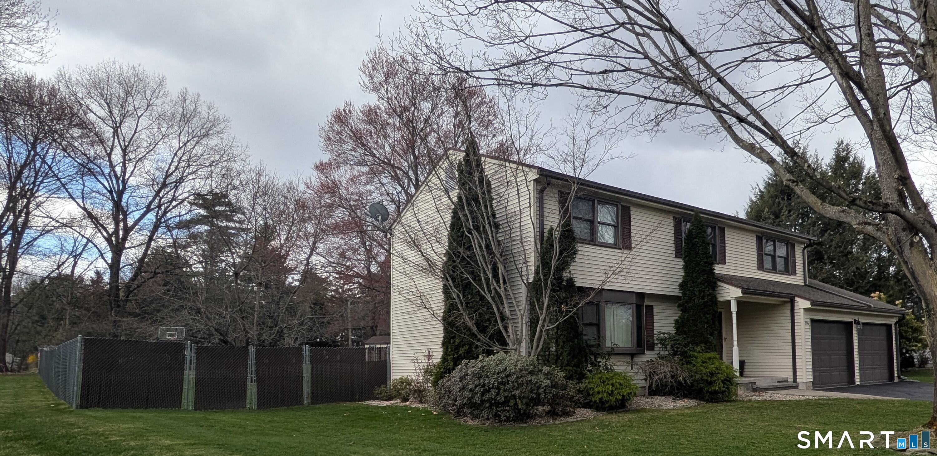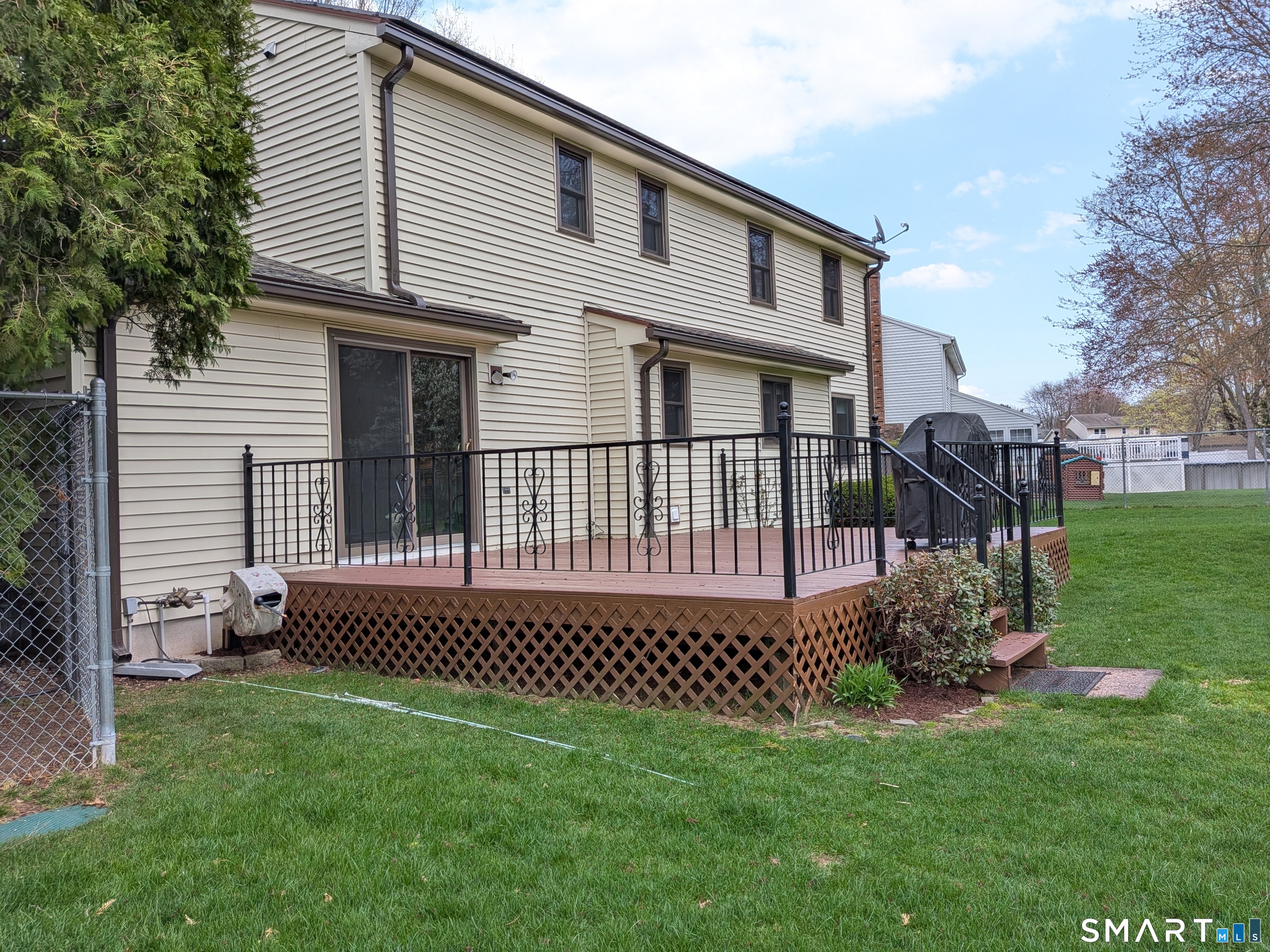 Extensively Renovated & Modernized Colonial situated on .80 acres, nearly double the land of neighboring properties. This Stunning 4 bedroom, 2 1/2 bathroom home offers a perfect blend of contemporary upgrades, smart home technology & resort-style outdoor living. All major mechanicals have been replaced or upgraded so there's nothing to do here except unpack & move-in. New flooring throughout the first floor provides a warm, hardwood-like aesthetic with modern durability. Beautifully updated kitchen showcases a center island, quartz countertops & brand-new Samsung SmartThings appliances w/ an open layout to the formal dining area making the space perfect for both everyday meals & entertainment. The generously sized living room features a dramatic bow window flooding the space with natural light across the cozy new carpeting. Anchoring the main living area in the family room, is a brick fireplace & slider doors out to a 358 sq ft deck with views of the fully fenced backyard oasis. Primary bedroom suite w/ walk-in closet, remodeled full bath: double-sinks, quartz counter & stand-up shower. The other bathrooms have been upgraded gorgeously as well. Lower Level offers ~650 sq ft of additional living space. Plus: 16x25 semi-inground pool, 12x20 Kloter Farms Shed, 20x20 asphalt basketball court, mature fruit frees, 3x7 garden space, predictive sprinkler system, smart home technology, approx 30 owned solar panels (no lease/no contract) all in a highly desireable neighborhood.