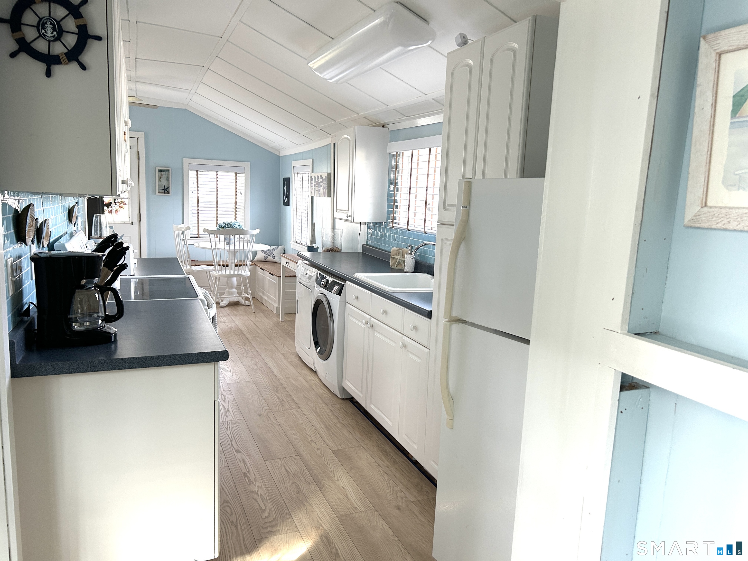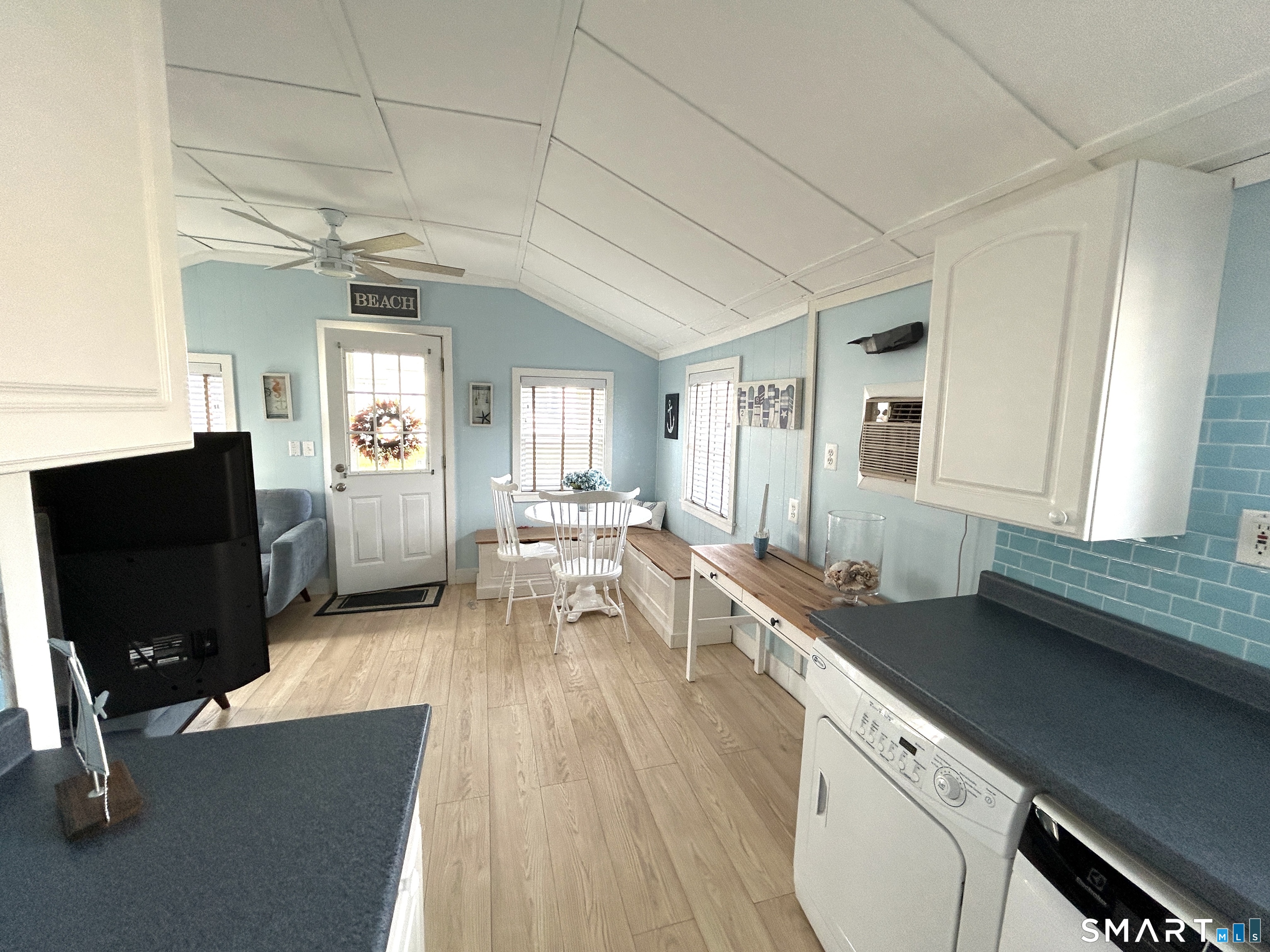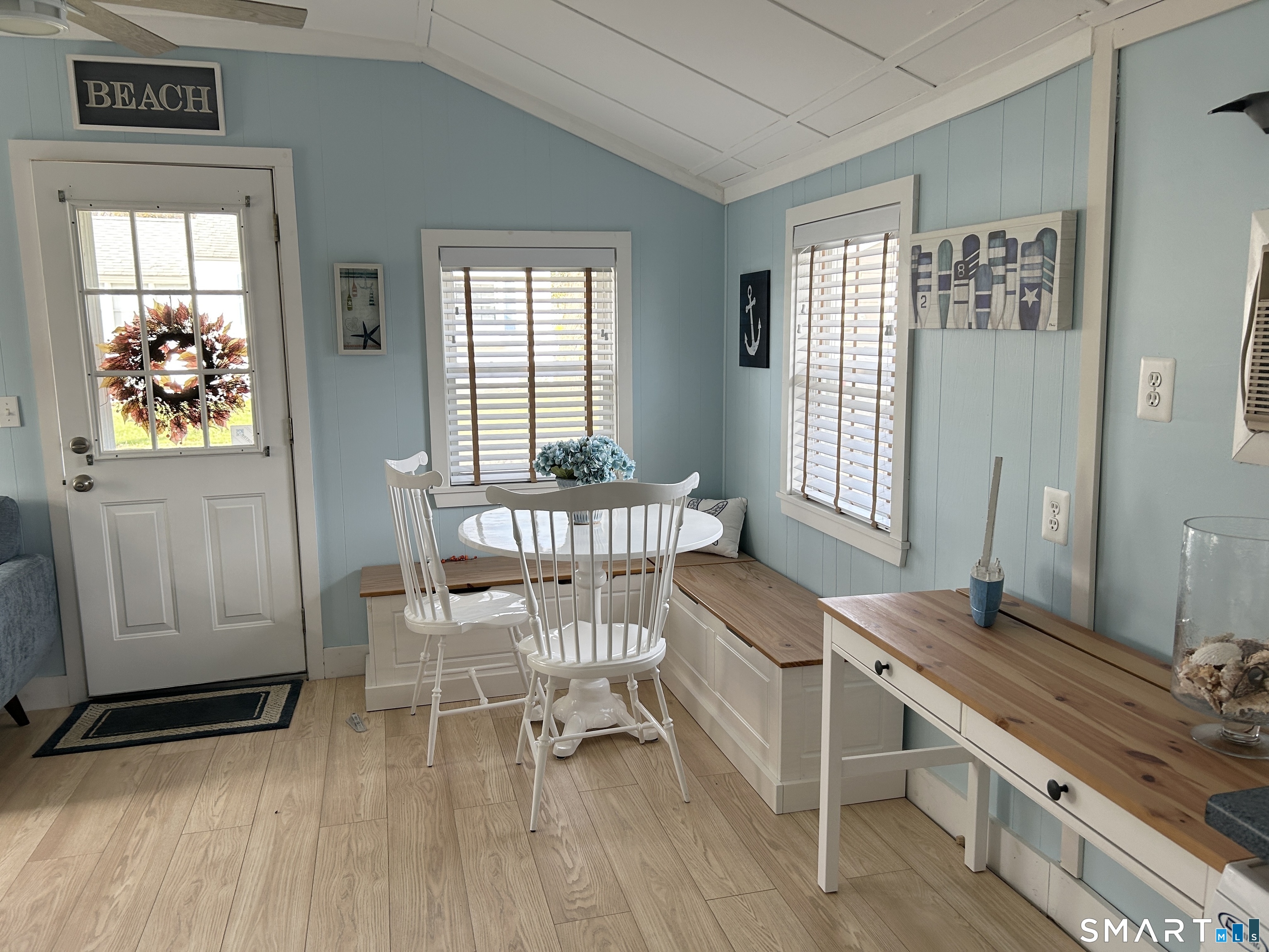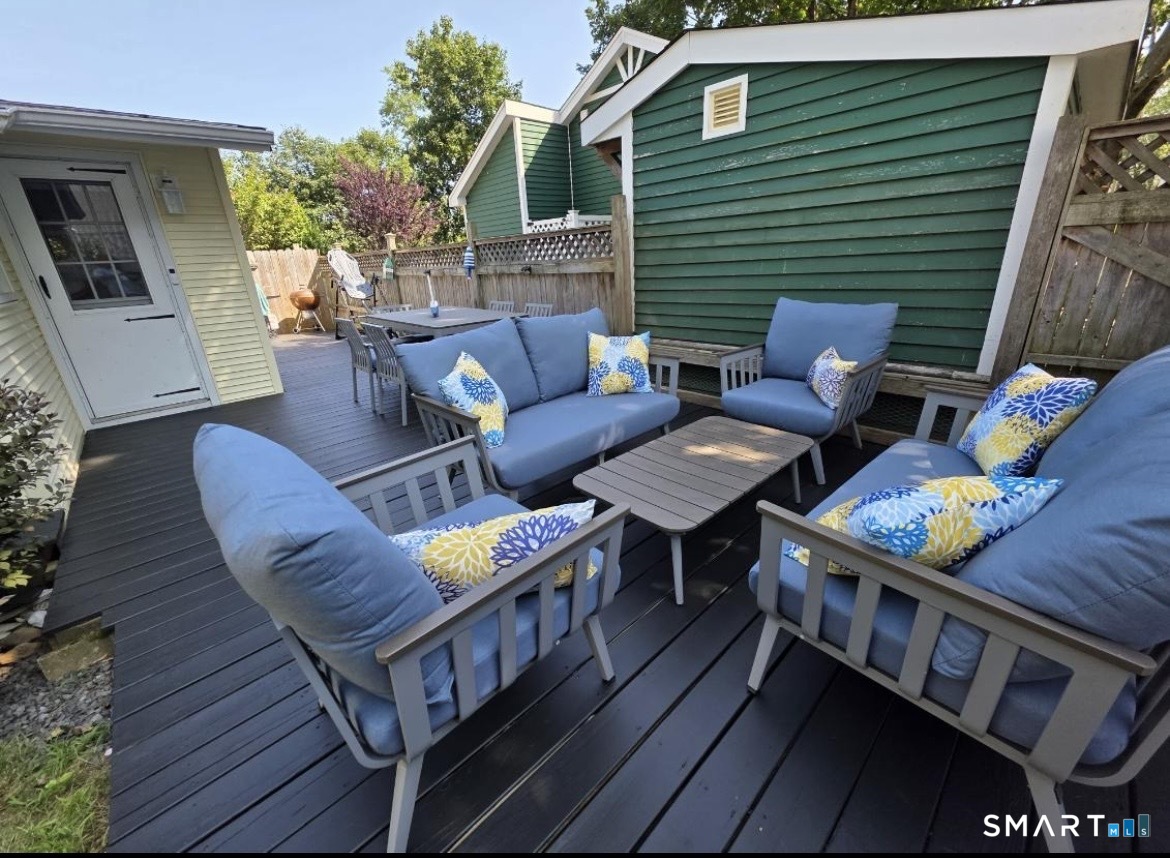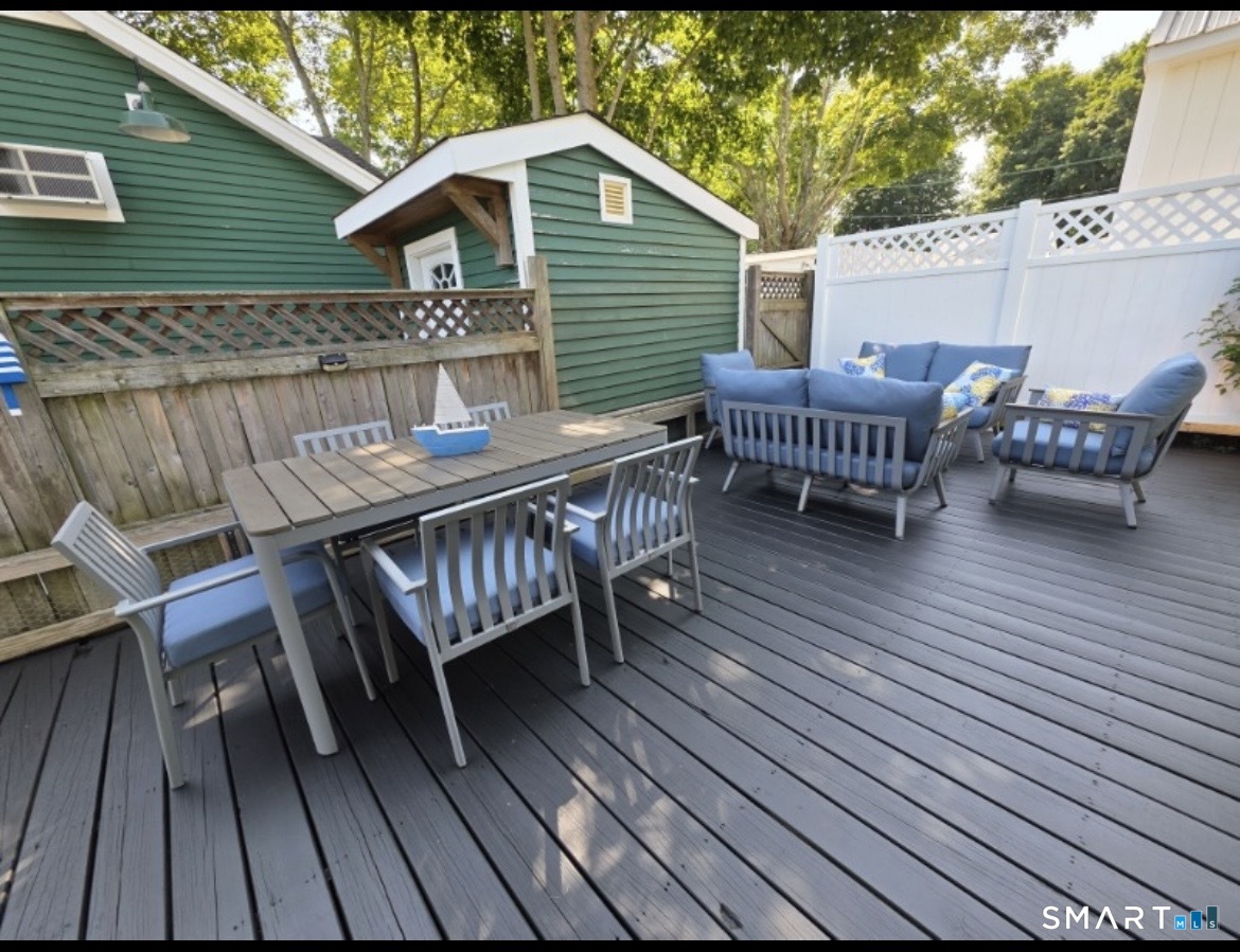 Tucked away like a hidden jewel at the shoreline, this storybook beach cottage captures the charm of coastal living.Approached by a classic brick landing, this cottage welcomes you with beachy curb appeal and a sense of relaxed living. Bathed in natural light and thoughtfully updated, this delightful retreat offers a warm and inviting interior designed for effortless living. Every detail reflects comfort and charm, creating the perfect escape for weekend getaways,or entire summer living. This cottage is located in a vintage beach community nestled on leased land ( each cottage is set on a small plot)located in the picturesque coastal town of Madison Ct. This unique village is situated on 6 acres adjacent to the sandy stretch of Long Island Sounds Hammonassett State Park, Salt Meadow Park (includes dog park) & the Greenway trail. Upon entering you'll find a modern open floor plan with vaulted ceilings. The exterior delights with a huge private deck for entertaining or a peaceful place to dream while reading a favorite book.Cottage offers a huge shed in addition to a private gravel driveway.Since the Land is leased a mortgage is not an option financing must be cash.No motorcycles, trailers , renting or Air bnb. Subject to rules and regulations of land owner. Must be approved by landowner through application.Land lease, taxes, and garbage removal approximately $6600 a year As a resident you have access to Madison Town Beaches for a modest yearly charge.