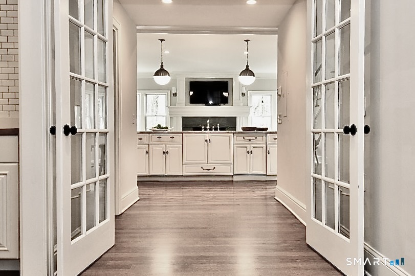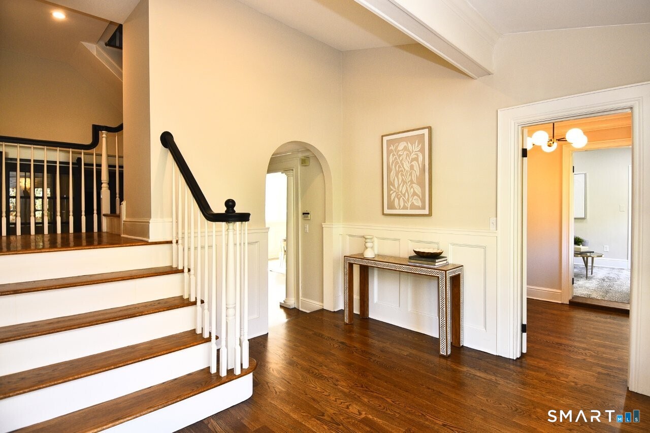 Sophisticated, timeless, and flawlessly reimagined, this 7,600 sq ft transitional Hamptons-style Colonial-Cape delivers luxury living with effortless ease. Offering 18 beautifully scaled rooms - including 5 spacious bedrooms, 6 full baths, and multiple inviting gathering spaces - this home balances grand entertaining with relaxed everyday comfort. Exquisite millwork, sleek transitional finishes, and four fireplaces create warmth throughout, while sunlit formal rooms flow seamlessly into casual living areas. The chef's kitchen with service galley anchors the home and opens naturally to outdoor spaces. Private retreats, work-from-home areas, and a separate in-law apartment with private entrance enhance the home's versatility. The grounds are exceptional - lush landscaping, fieldstone walls, tiered patios, a resort-style pool with spa and waterfall, a heated pool house, and an elevated firepit patio all offer unmatched outdoor living. Tucked up on a quiet cul-de-sac, this property blends true neighborhood charm with the privacy of its own enclave. A premier location, superb craftsmanship, and every modern amenity - this is refined living at its best. Discover the lifestyle awaiting you ... schedule your private tour today. 7,692 SF TOTAL heated living space, per architect.