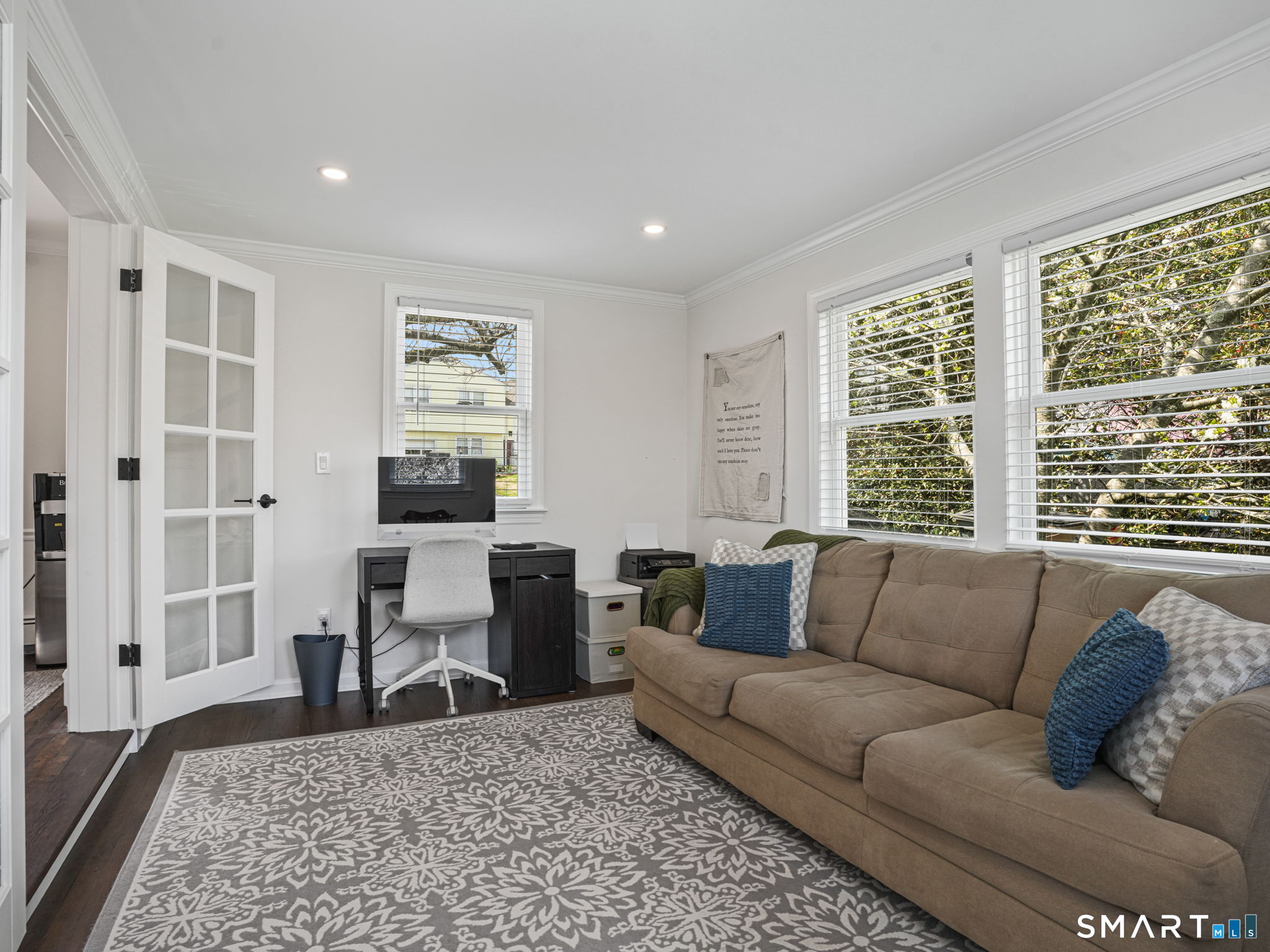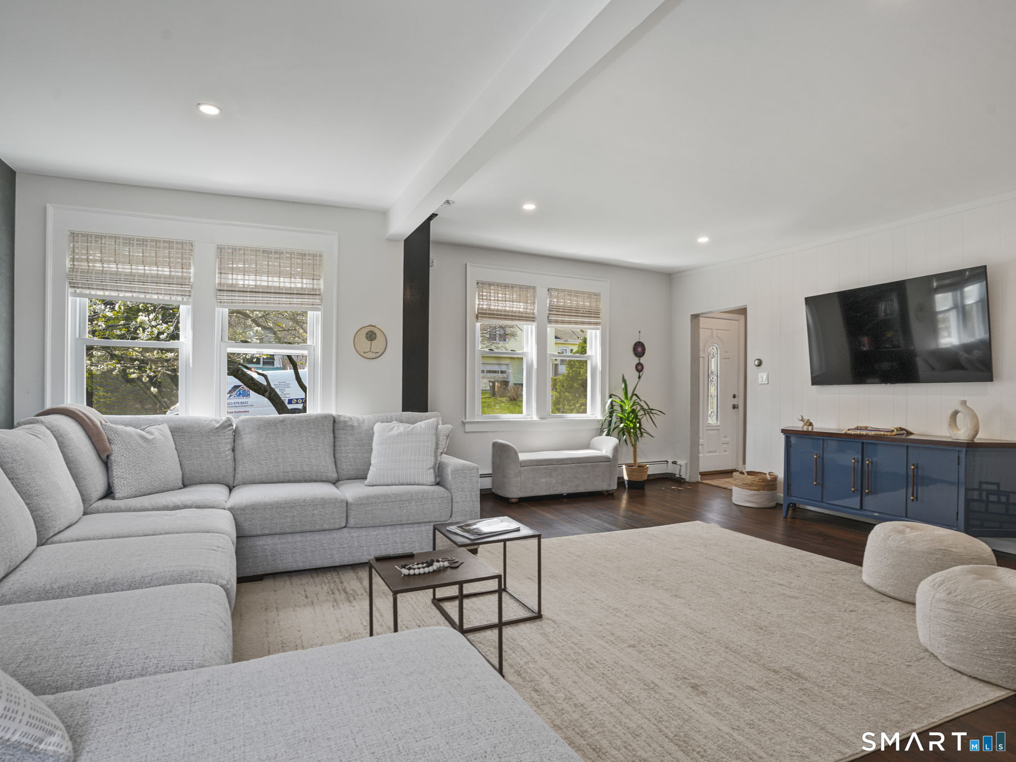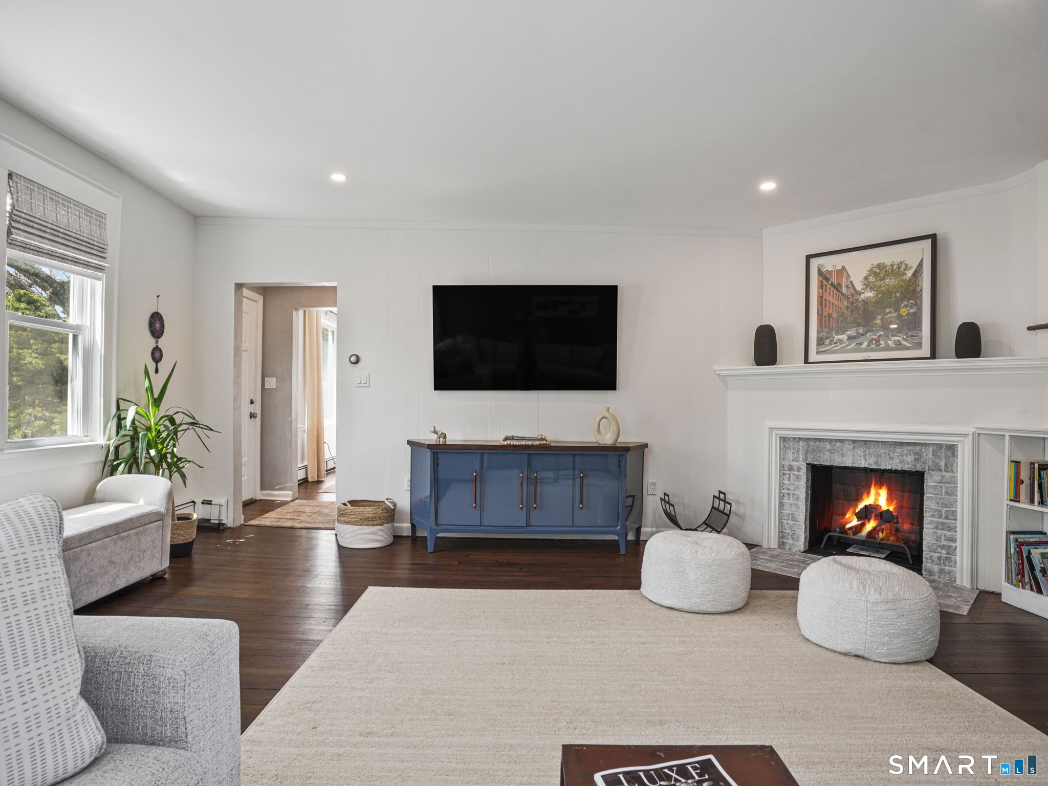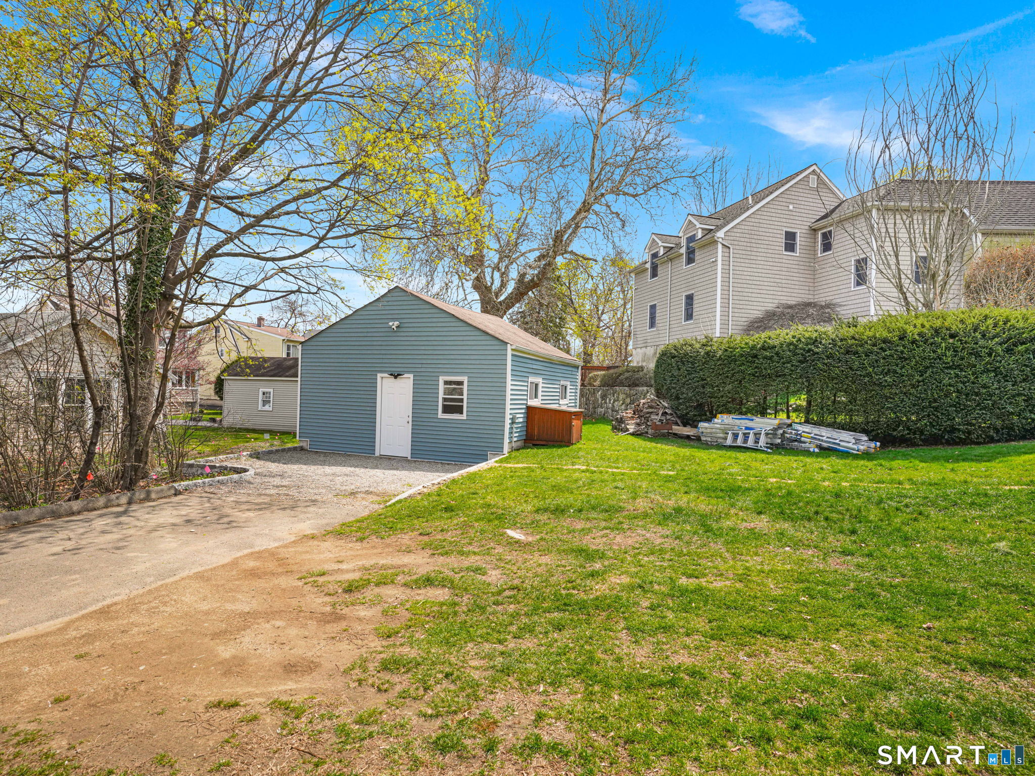 Welcome to Casa Nossa at 91 Clovelly Road, a beautifully reimagined residence nestled in Stamford's highly sought after Glenbrook neighborhood, where timeless elegance meets modern comfort. This stunning home offers an exceptional layout where the spacious living room sets the tone with warmth and sophistication, while the oversized dining room provides the perfect backdrop for memorable gatherings. And just beyond, the area flows seamlessly into a newly updated sunroom or private office. Thoughtfully updated throughout, the home features modernized bathrooms and freshly painted interiors, delivering a clean contemporary aesthetic with a refined touch. The lower level presents a flexible bonus space ideal for a home gym, office or custom expansion. Step outside to a generous backyard retreat with newly installed stone patio and enjoy dining al fresco or quiet relaxation while savoring the outdoors. The property is further enhanced by two private driveways and a detached garage with electricity that is currently utilized as an artist's studio - a unique and inspiring bonus space perfect for creatives, a workshop or yoga studio. At Casa Nossa, every detail has been curated to create a warm yet elevated living experience, all within a prime location close to downtown Stamford.