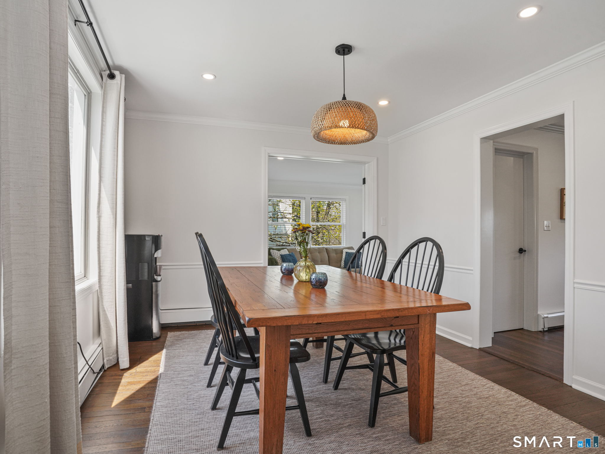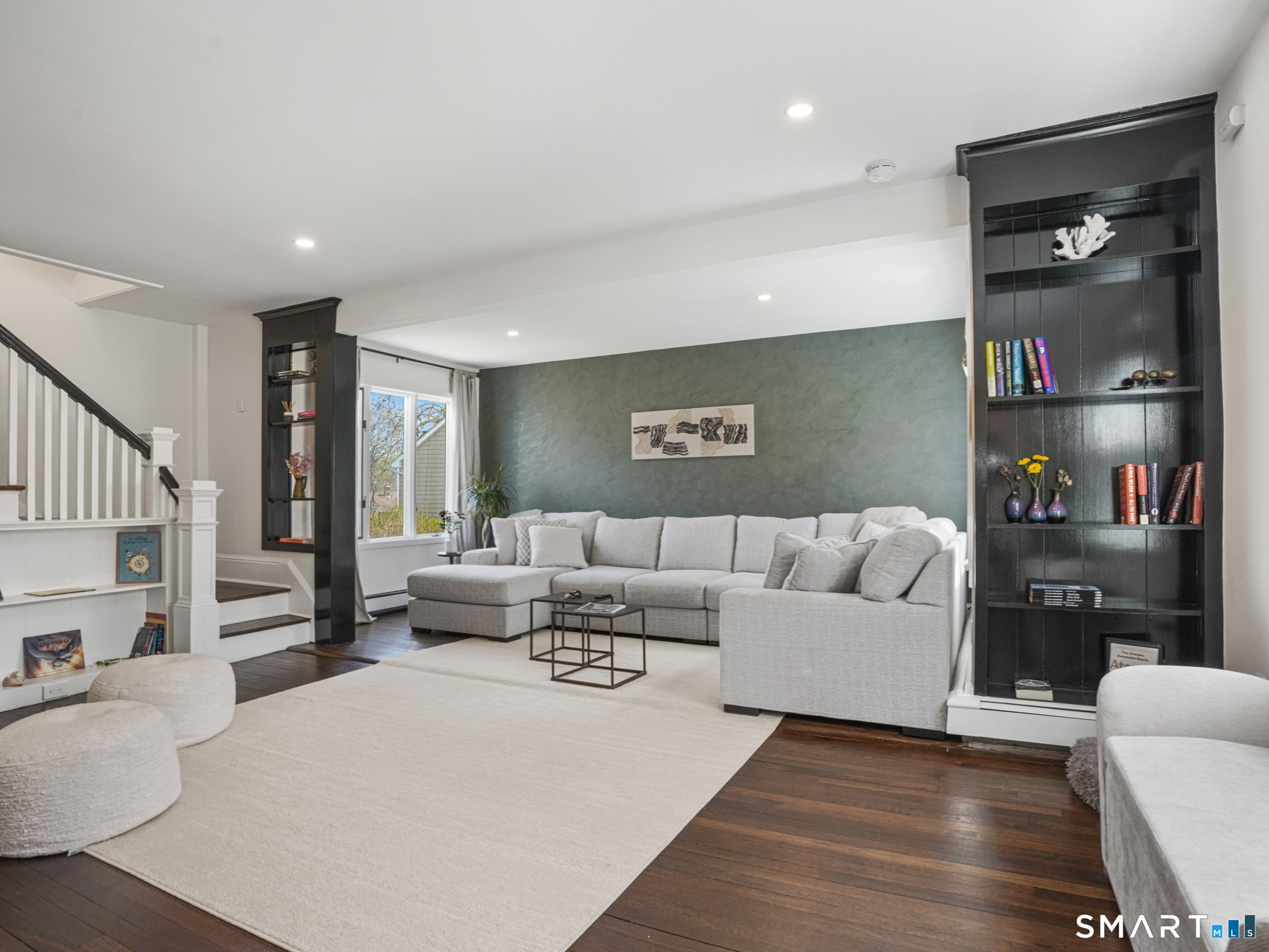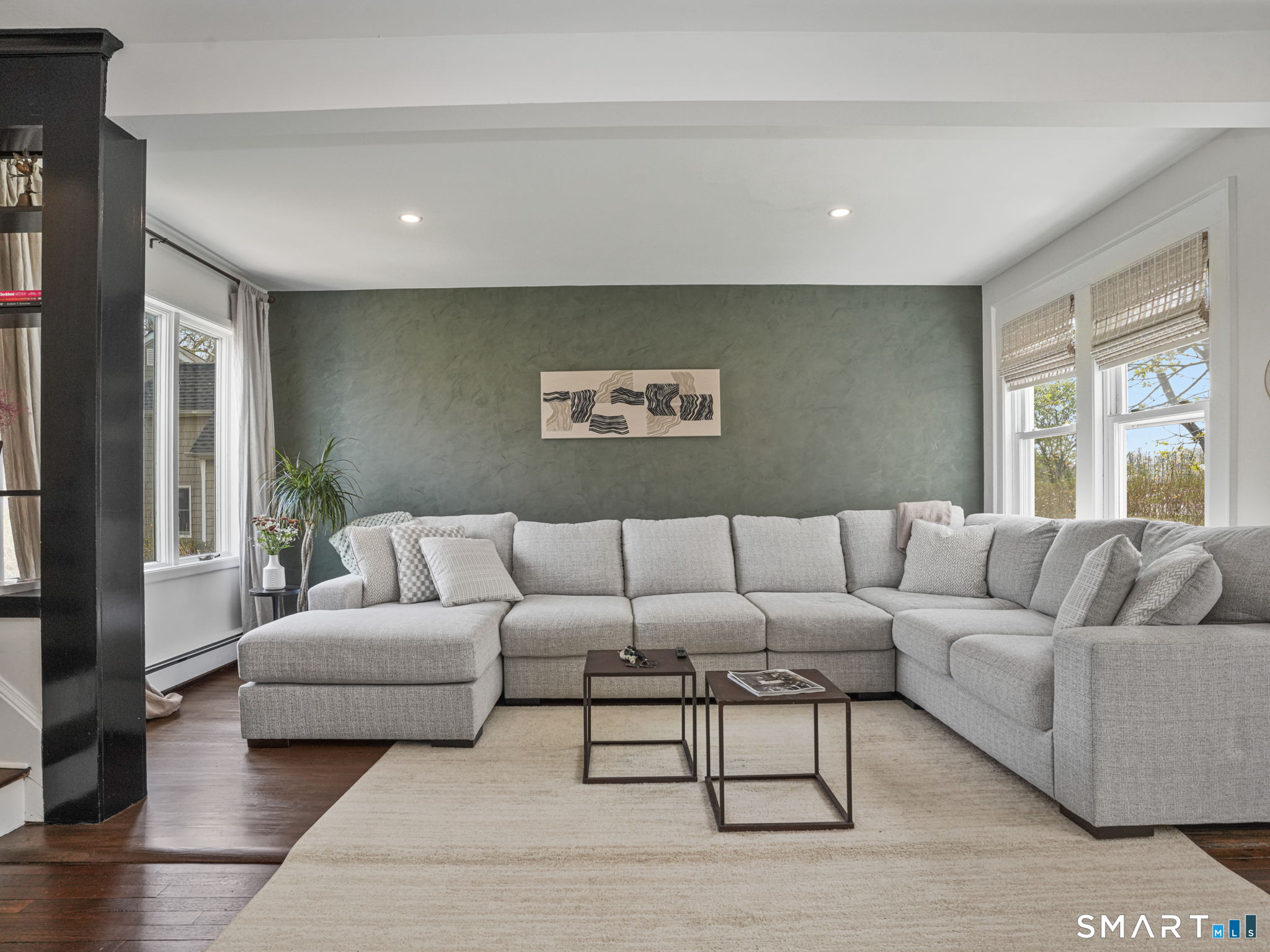Welcome to Casa Nossa at 91 Clovelly Road, a beautifully reimagined residence nestled in Stamford's highly sought after Glenbrook neighborhood, where timeless elegance meets modern comfort. This stunning home offers an exceptional layout where the spacious living room sets the tone with warmth and sophistication, while the oversized dining room provides the perfect backdrop for memorable gatherings. And just beyond, the area flows seamlessly into a newly updated sunroom or private office. Thoughtfully updated throughout, the home features modernized bathrooms and freshly painted interiors, delivering a clean contemporary aesthetic with a refined touch. The lower level presents a flexible bonus space ideal for a home gym, office or custom expansion. Step outside to a generous backyard retreat with newly installed stone patio and enjoy dining al fresco or quiet relaxation while savoring the outdoors. The property is further enhanced by two private driveways and a detached garage with electricity that is currently utilized as an artist's studio - a unique and inspiring bonus space perfect for creatives, a workshop or yoga studio. At Casa Nossa, every detail has been curated to create a warm yet elevated living experience, all within a prime location close to downtown Stamford.