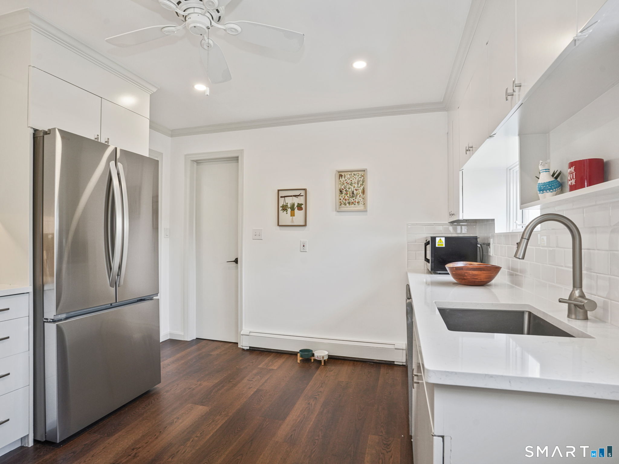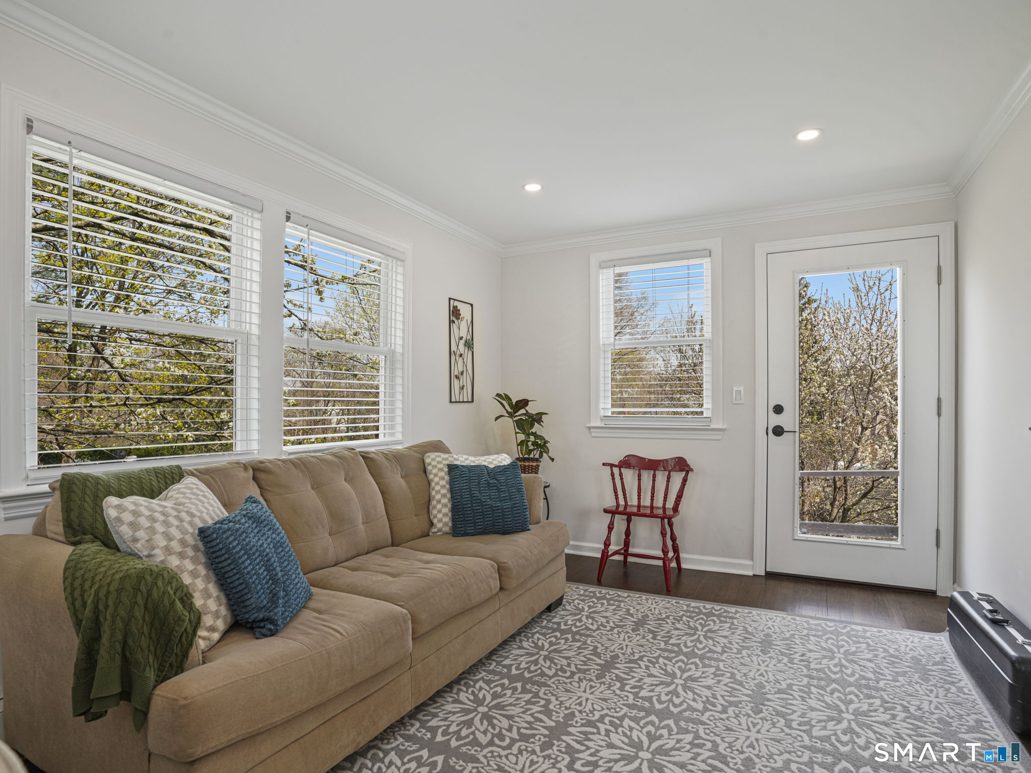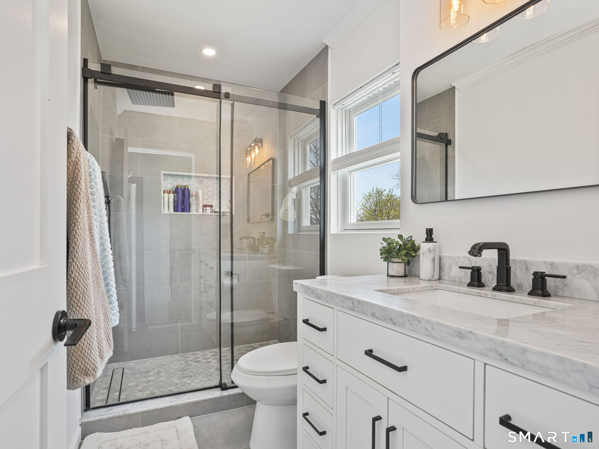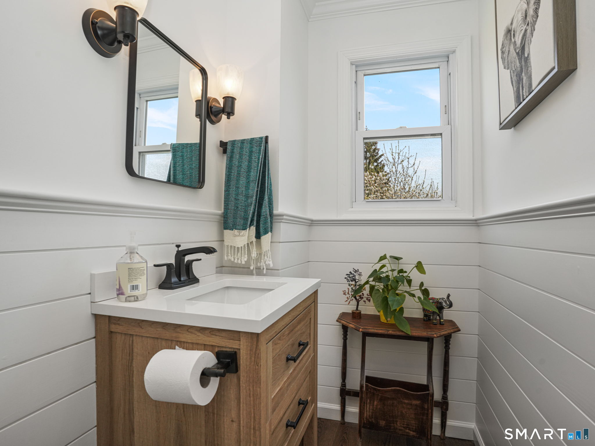 Welcome to Casa Nossa at 91 Clovelly Road, a beautifully reimagined residence nestled in Stamford's highly sought after Glenbrook neighborhood, where timeless elegance meets modern comfort. This stunning home offers an exceptional layout where the spacious living room sets the tone with warmth and sophistication, while the oversized dining room provides the perfect backdrop for memorable gatherings. And just beyond, the area flows seamlessly into a newly updated sunroom or private office. Thoughtfully updated throughout, the home features modernized bathrooms and freshly painted interiors, delivering a clean contemporary aesthetic with a refined touch. The lower level presents a flexible bonus space ideal for a home gym, office or custom expansion. Step outside to a generous backyard retreat with newly installed stone patio and enjoy dining al fresco or quiet relaxation while savoring the outdoors. The property is further enhanced by two private driveways and a detached garage with electricity that is currently utilized as an artist's studio - a unique and inspiring bonus space perfect for creatives, a workshop or yoga studio. At Casa Nossa, every detail has been curated to create a warm yet elevated living experience, all within a prime location close to downtown Stamford.