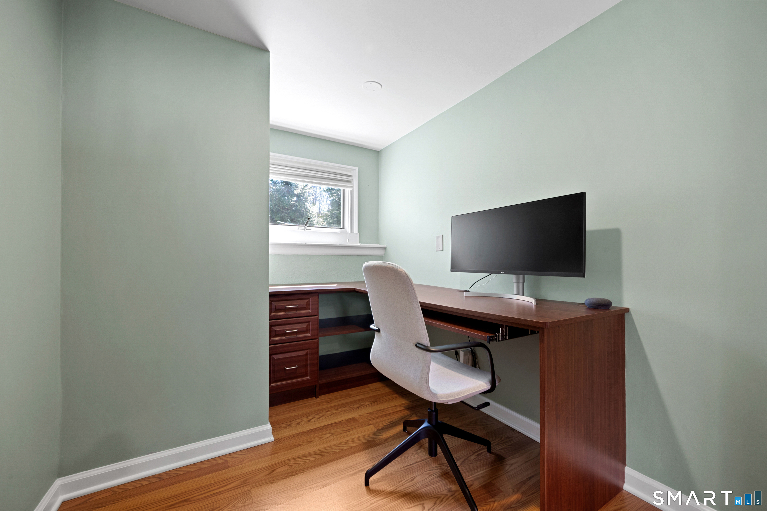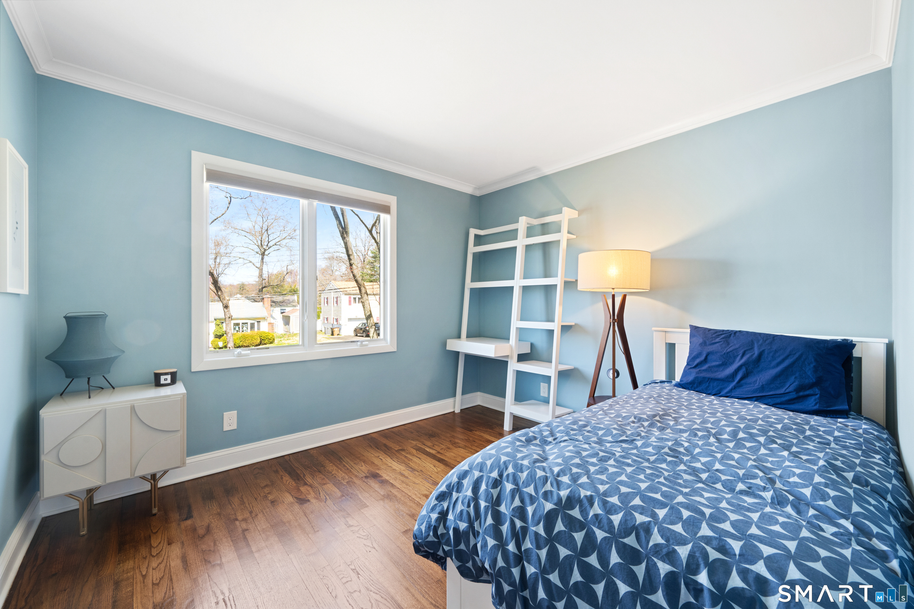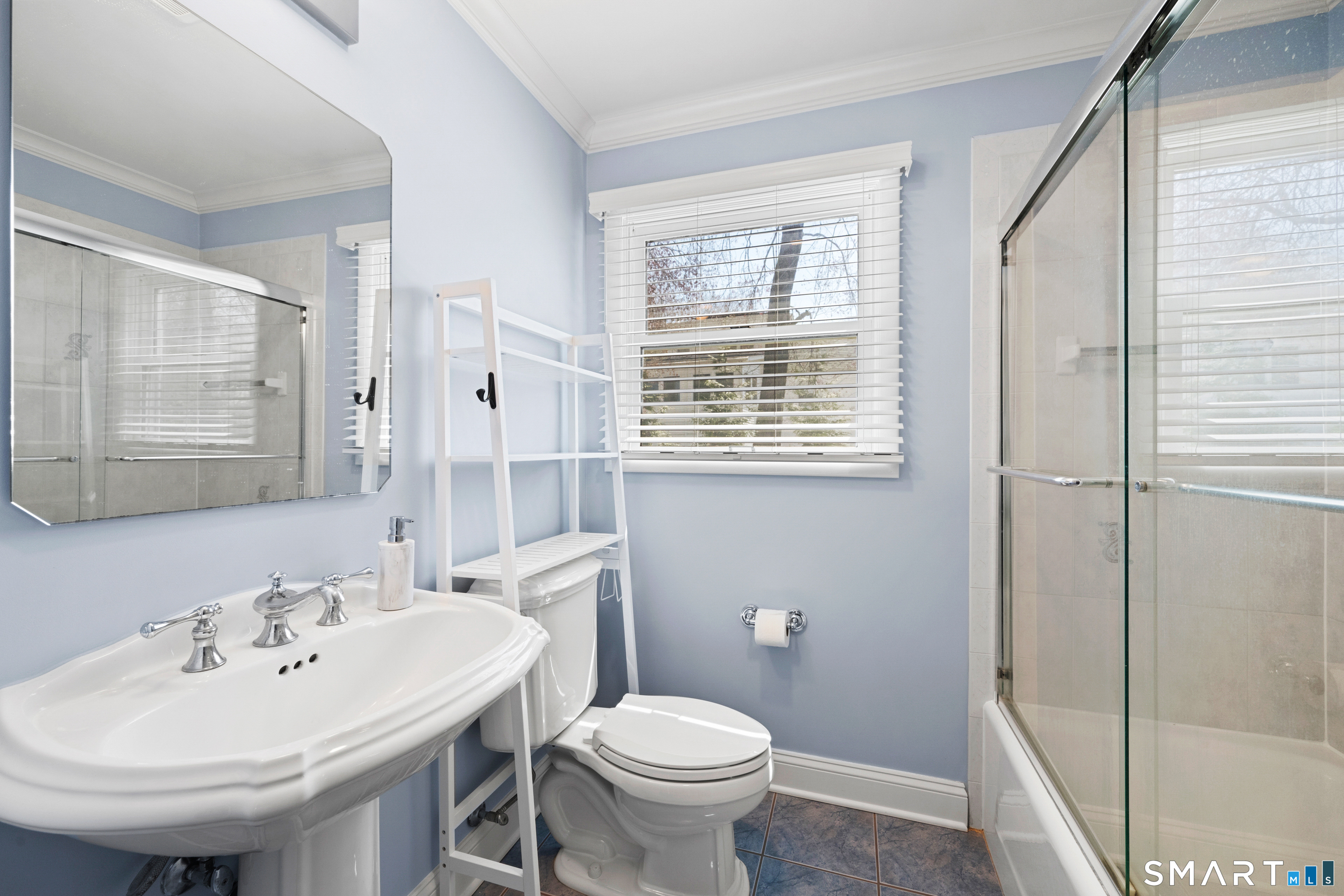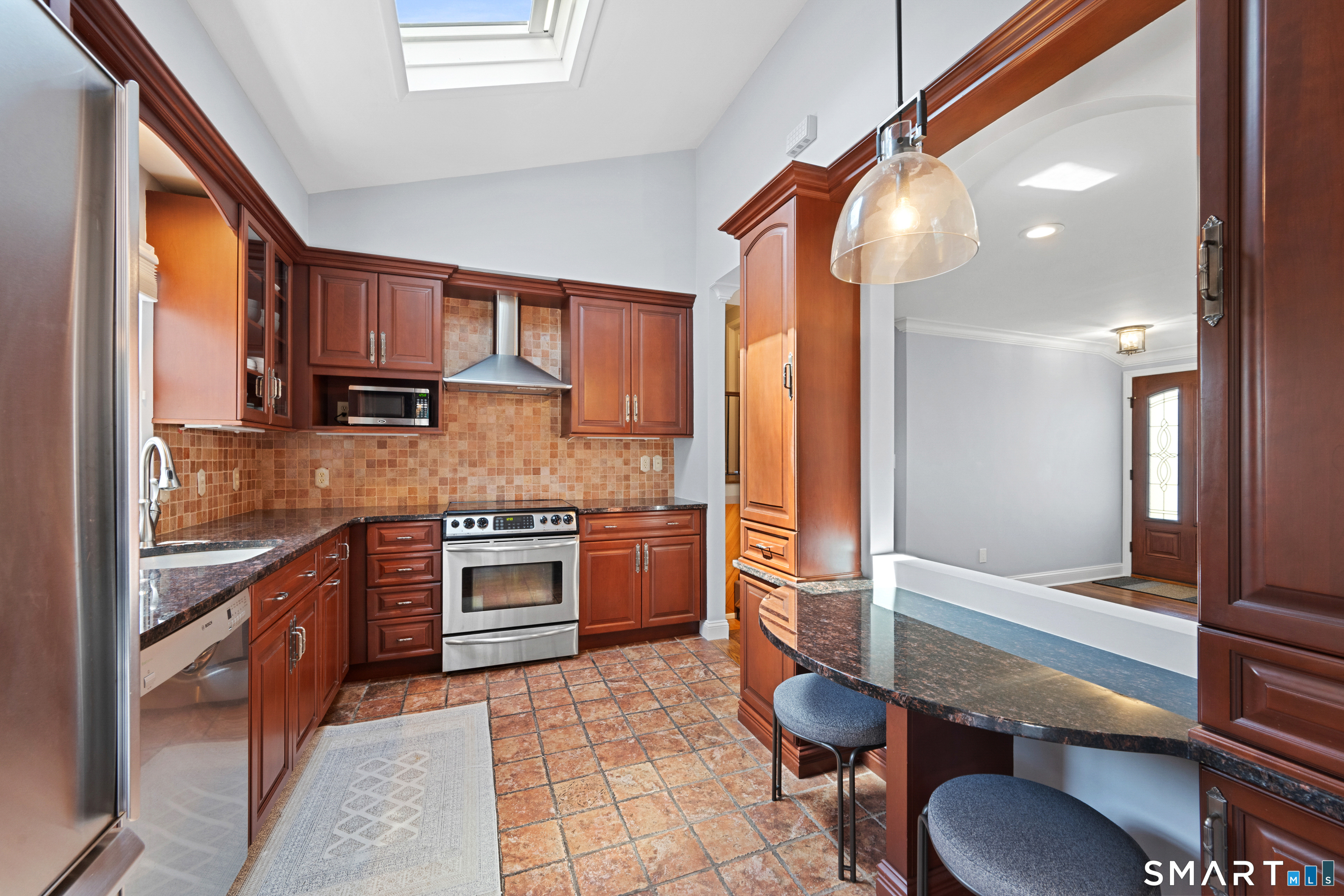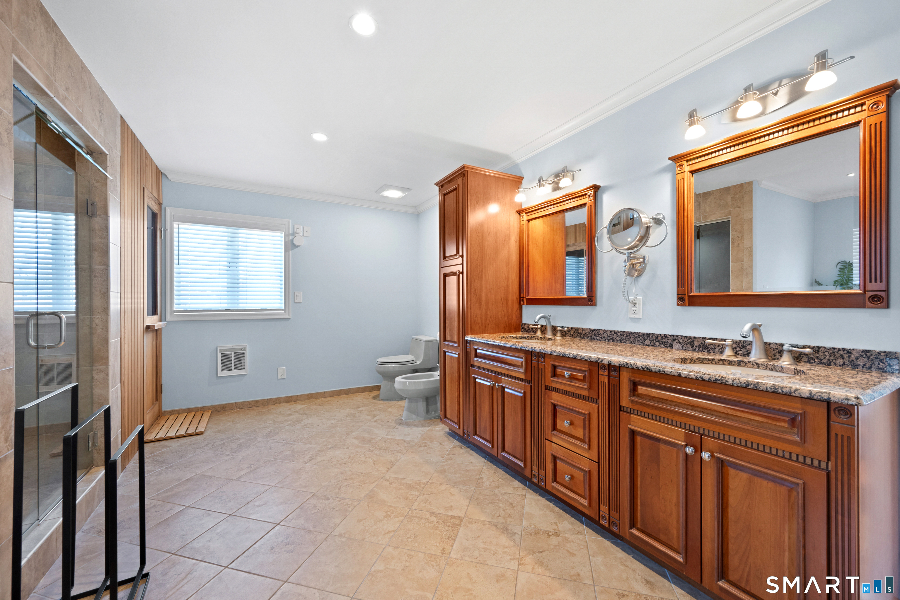 Centrally located on a quiet triple cul de sac, this inviting home offers an open floor plan, abundant natural light, and thoughtful updates throughout. It features 3 bedrooms and 3 full bathrooms, with hardwood floors running throughout the home. The living room with fireplace flows into the dining room, where sliders open to a spacious deck with an awning. The updated kitchen features a skylight, granite countertops, and stainless steel appliances. The primary suite is a true retreat, complete with an oversized walk in closet outfitted with California Closets cabinetry and shelving, plus a private spa like bath with double sinks, radiant heated floors, a shower stall, jacuzzi tub, and sauna. The lower level family room offers flexible space and could serve as a 4th bedroom, with a full bath and an alcove ideal for a home office. The home underwent a major renovation and addition in 2005, including updated electrical, plumbing, windows, and roof, along with an 80 gallon water heater replaced in 2021, a furnace updated in 2013, and the roof was replaced in 2020.