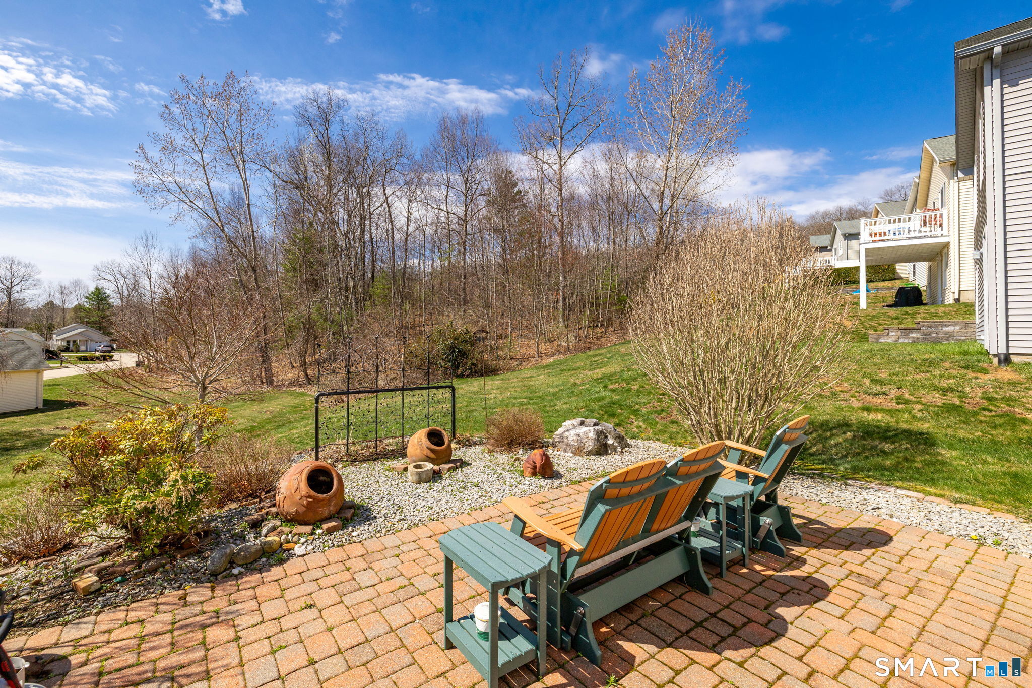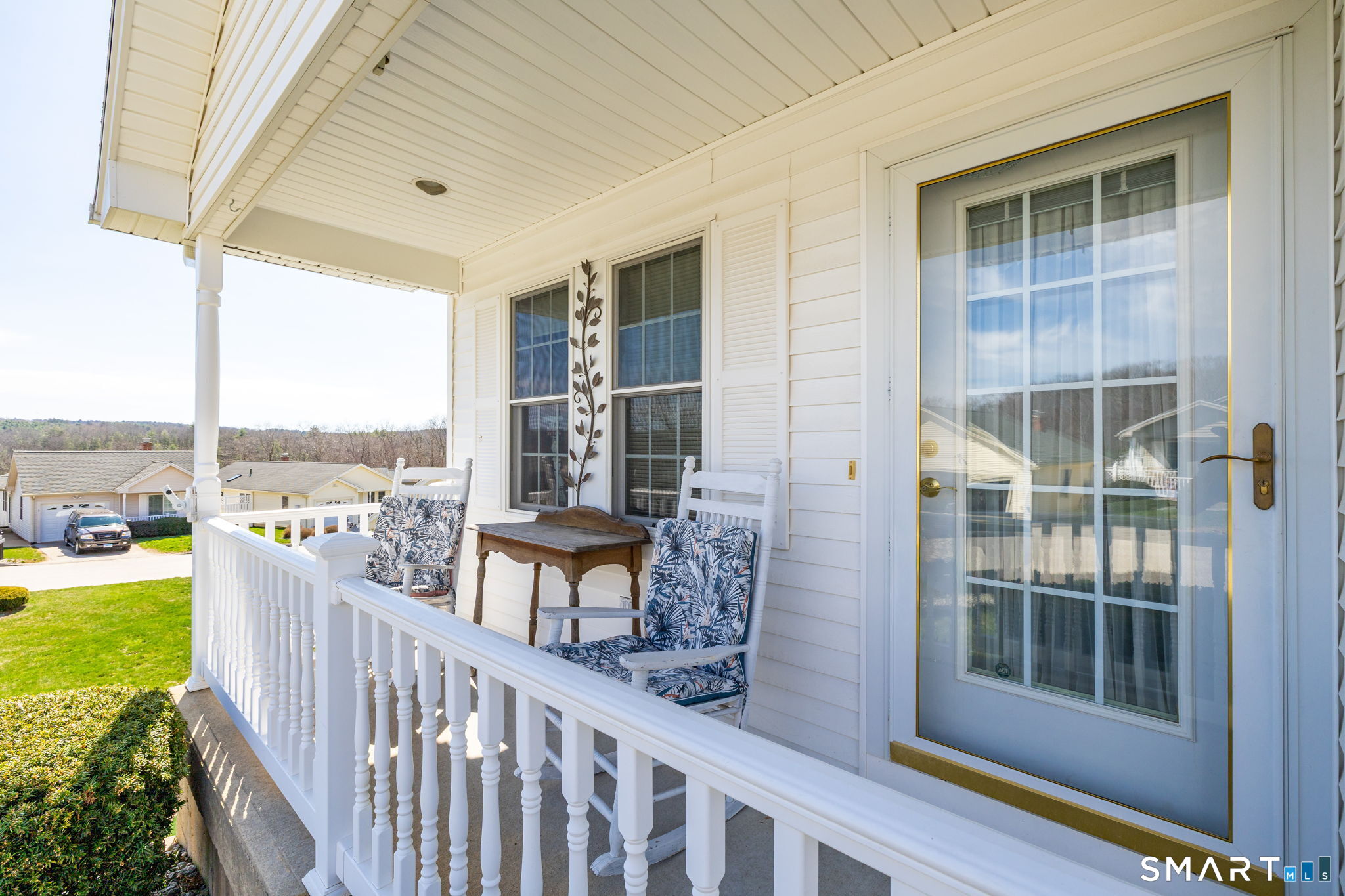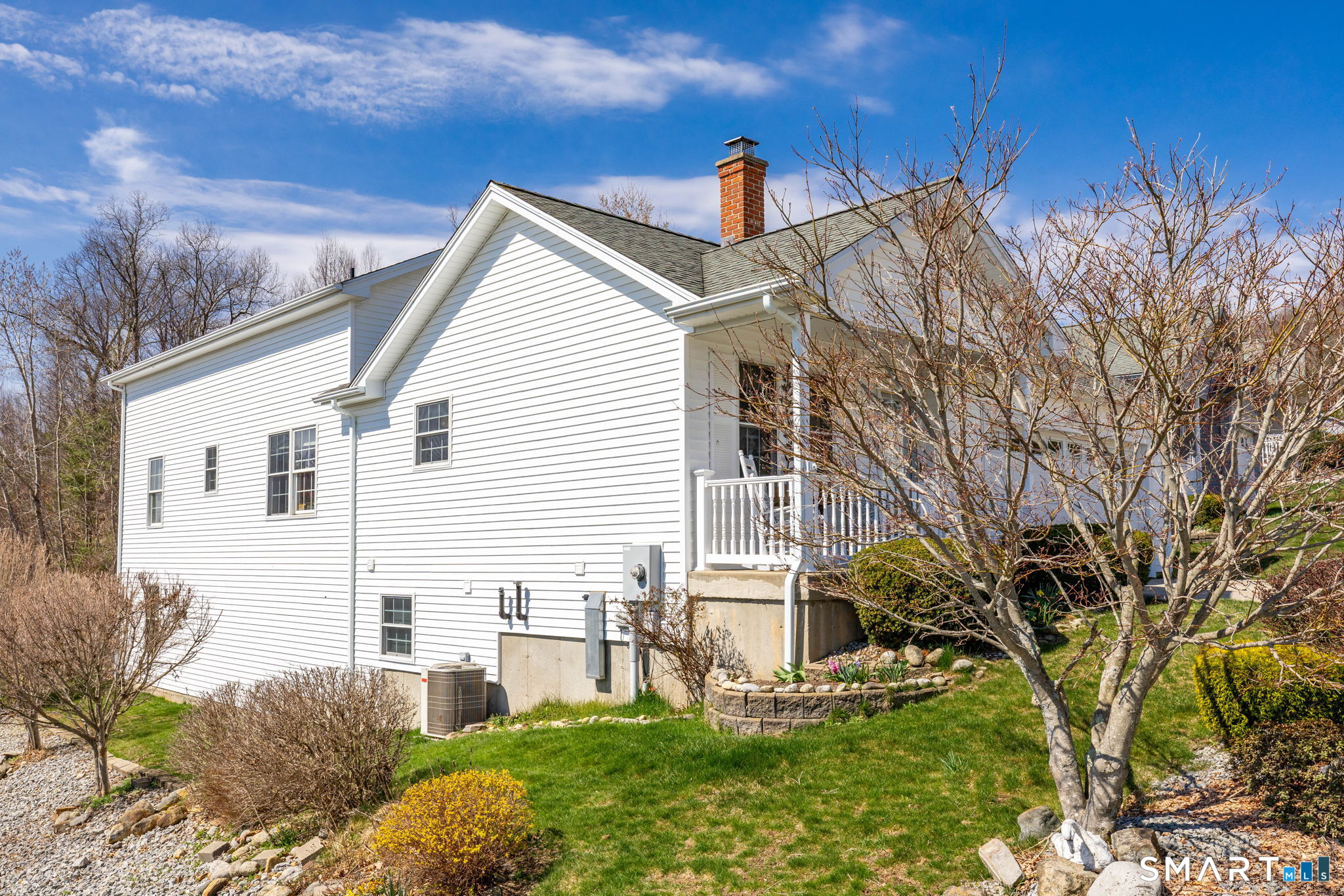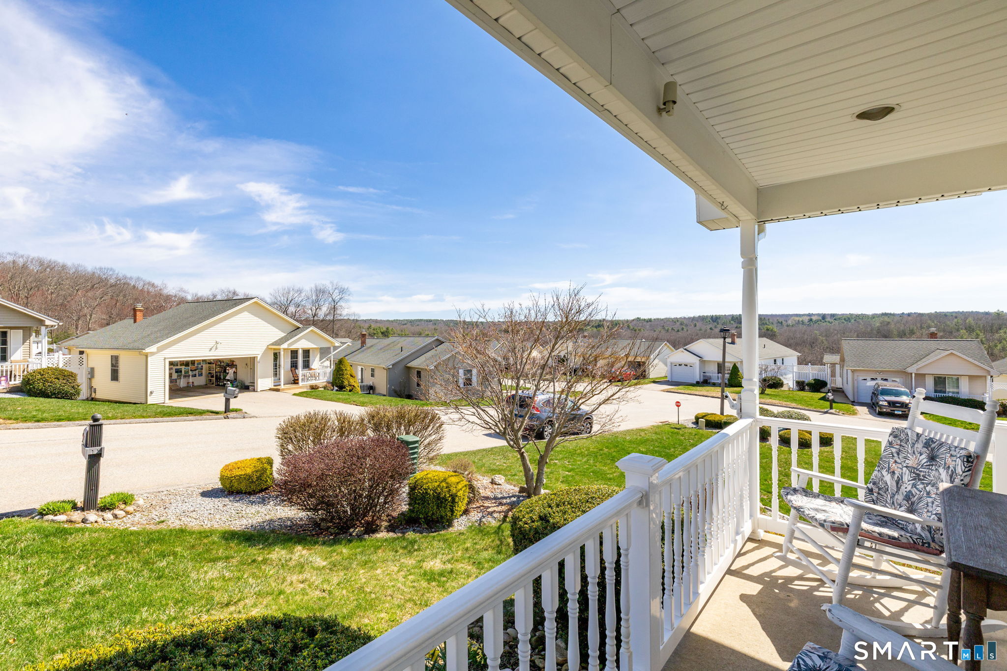 This one-of-a-kind 3-bedroom, 3 bath home at Isabella's Court, an active 55+ community in Stafford Springs, CT, offers a perfect blend of comfort, style, and flexibility. Beautifully decorated throughout, the unit features a welcoming covered front porch with serene treetop views stretching down toward the river. Outdoor living is just as impressive, with a spacious composite and vinyl deck as well as a charming patio surrounded by thoughtfully landscaped grounds-ideal for relaxing or entertaining. Inside, the home is designed for both convenience and elegance, offering the option of a first-floor or second-floor primary bedroom. The upstairs bath includes a luxurious soaking tub, creating a spa-like retreat. The updated kitchen is a standout, complete with granite countertops and stainless steel appliances, and flows seamlessly into the dining and living areas for easy entertaining. Additional highlights include a two-car garage and a fully finished walk-out basement featuring its own kitchen, full bath, workshop, and storage-perfect for in-law or multi-generational living. Residents also enjoy access to a clubhouse, providing a wonderful space for hosting gatherings and social events. You won't want to miss this one. No extra charge for the nice neighbors.