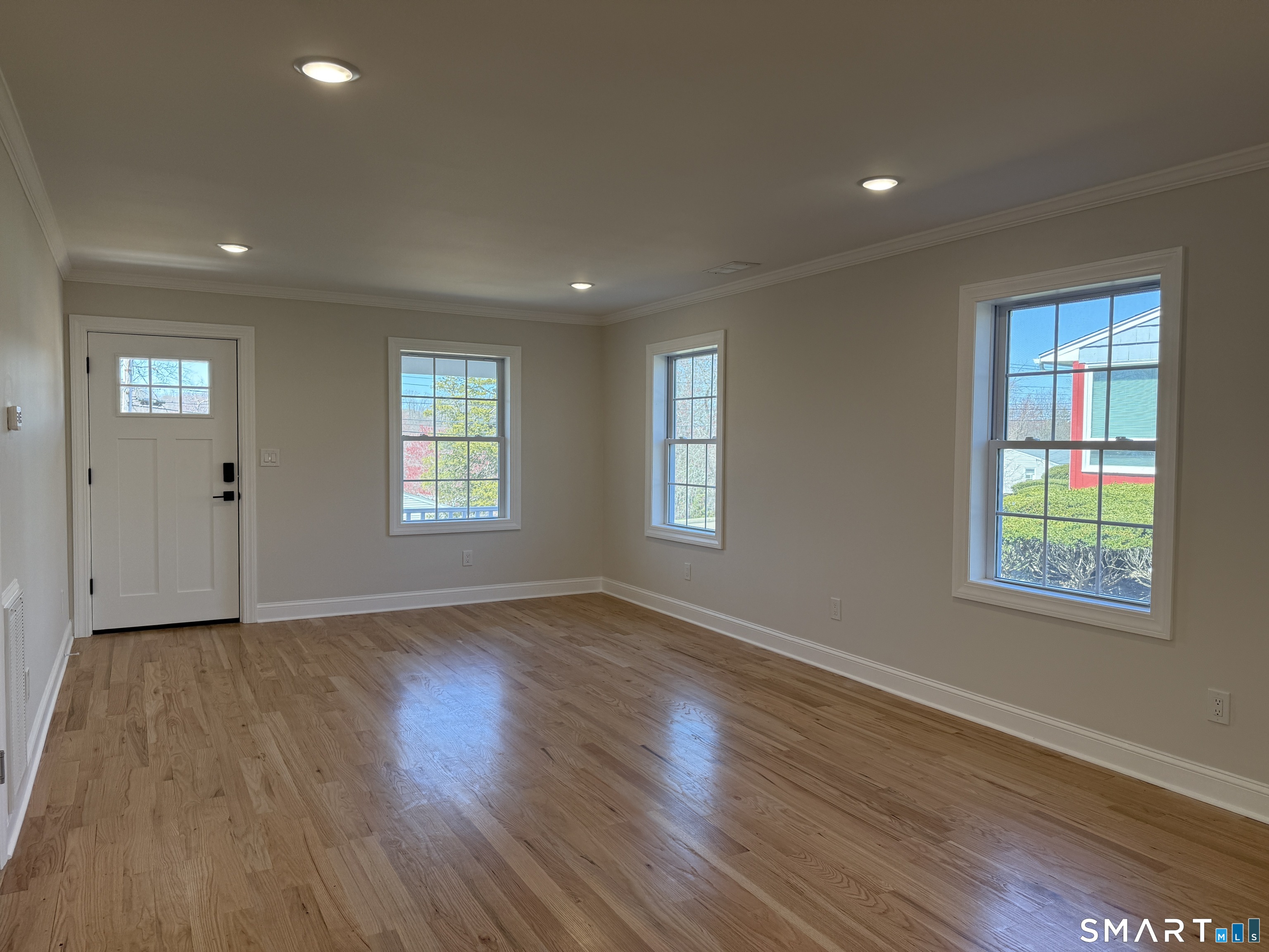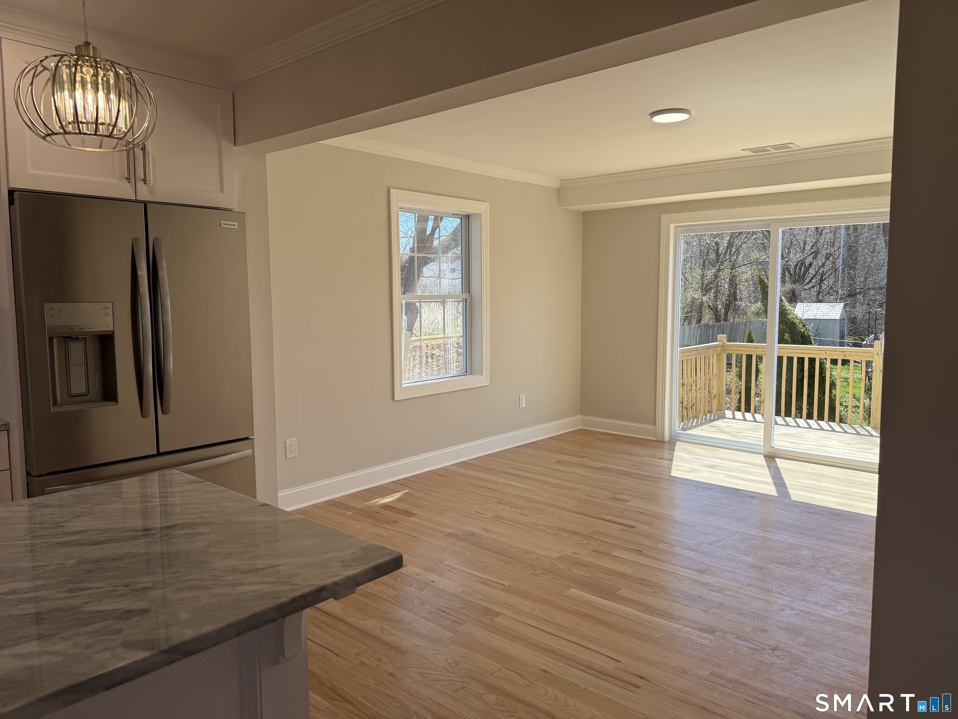 *Fully Completed New Construction built in 2026* - move-in ready 3 bedroom, 2.5 bath colonial, located adjacent to the Alling Memorial Golf Course. This beautifully constructed home features 3 spacious bedrooms, 2 full bathrooms, and 1 half bath. The main level offers an open-concept layout with generous living room and dining areas. The kitchen has custom built cabinets painted in Benjamin Moore Chantilly Lace with 42 inch uppers. The countertops are fabricated from Italian Bardiglio polished marble, complimented by a Carrara Chateau tumbled marble backsplash. The stainless steel Frigidaire appliances include a French door refrigerator, dishwasher, five burner self-cleaning gas range, and chimney hood. Off the dining area is a stylish half bath featuring a sage green vanity and complimenting gold fixtures, and there is a sliding glass door that leads to a 10' x 12' deck. On the upper level of this house is the primary suite which offers a spacious walk-in closet. The bathroom has a deep soaking tub with integrated shower and is finished with stunning Pianetto Sistene 15" x 30" polished porcelain tiles. There is a black 60 inch double vanity that creates a striking contrast, along with a dedicated makeup vanity area.