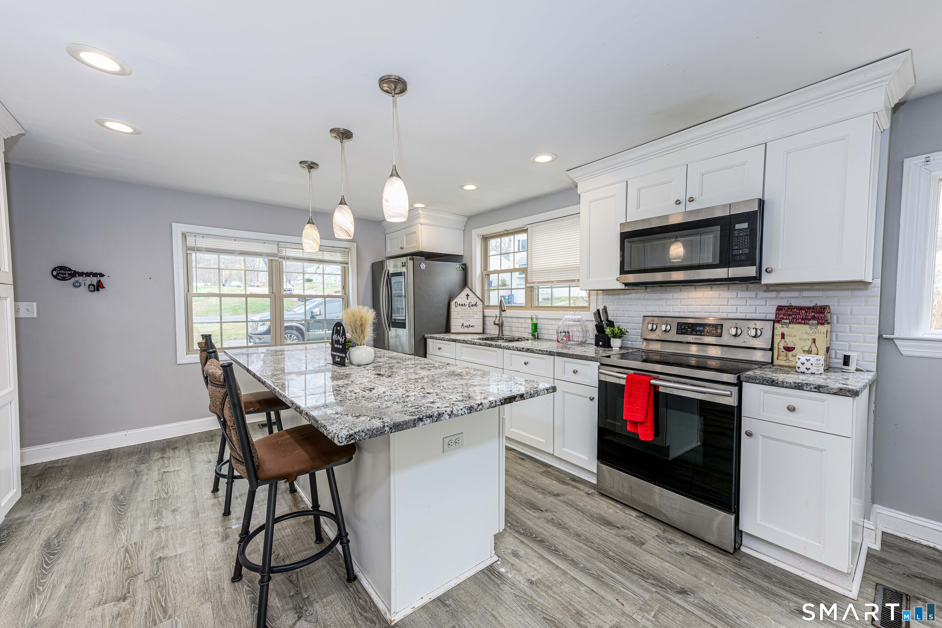 Tucked away on a quiet cul-de-sac in East Meriden, 112 Orchard St offers the perfect blend of space, privacy, and versatility. Step inside to a thoughtfully designed kitchen featuring granite countertops, stainless steel appliances, a center island, and recessed lighting. The living room welcomes you with a cozy fireplace and sliders that open to a Trex deck, creating a seamless indoor-outdoor flow. Overlooking a generous 0.63-acre lot, the backyard provides plenty of room to relax, host, or create your own private retreat. The primary bedroom suite is a standout, complete with a full bathroom featuring a double granite vanity, tiled shower with glass doors, a walk-in closet, and an additional room perfect for a home office, sitting area, or nursery. Downstairs, the partially finished basement offers a separate entrance and its own driveway-making it ideal for potential in-law use, multi-generational living, or rental income. With additional unfinished space, there's plenty of opportunity to expand and add even more value.