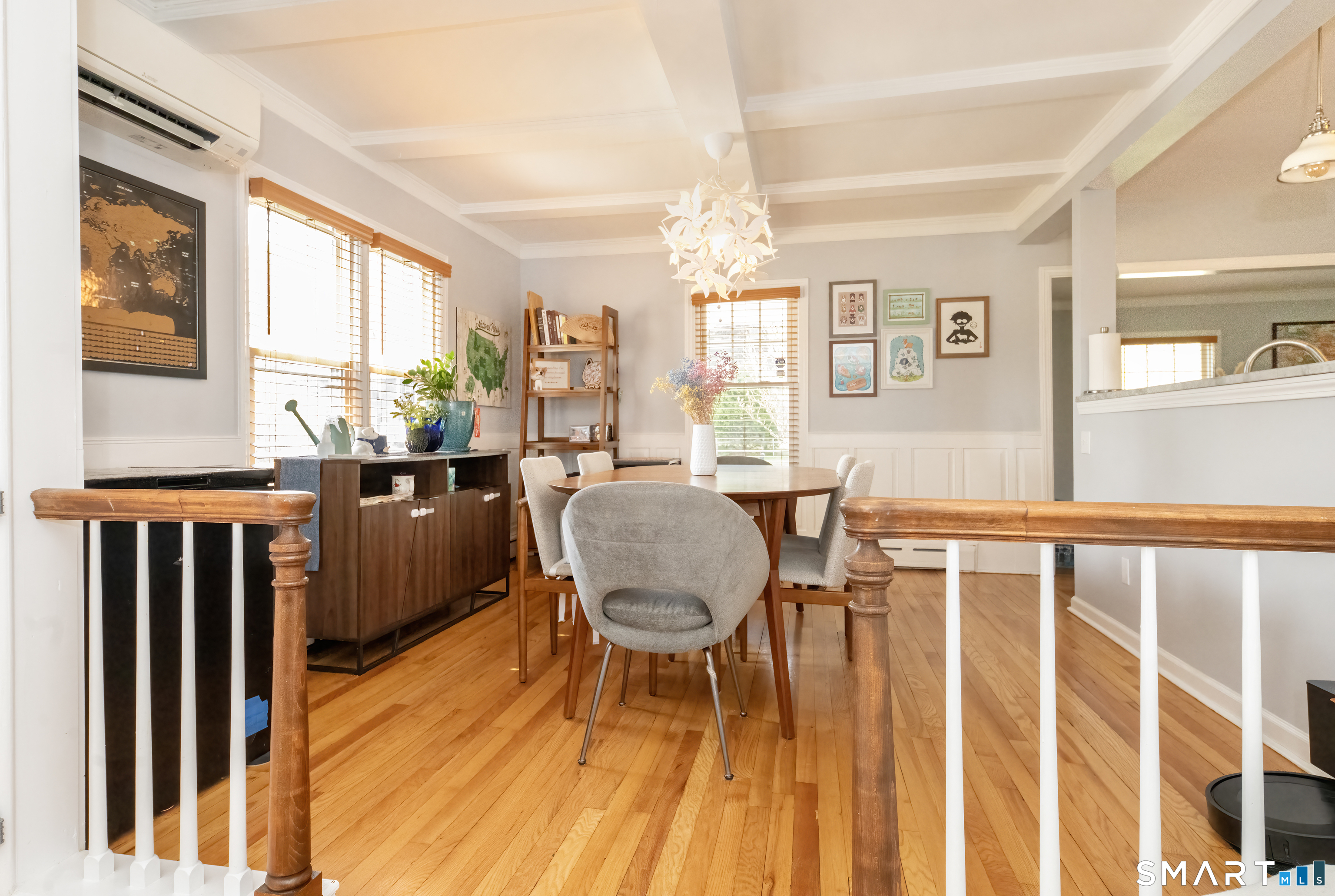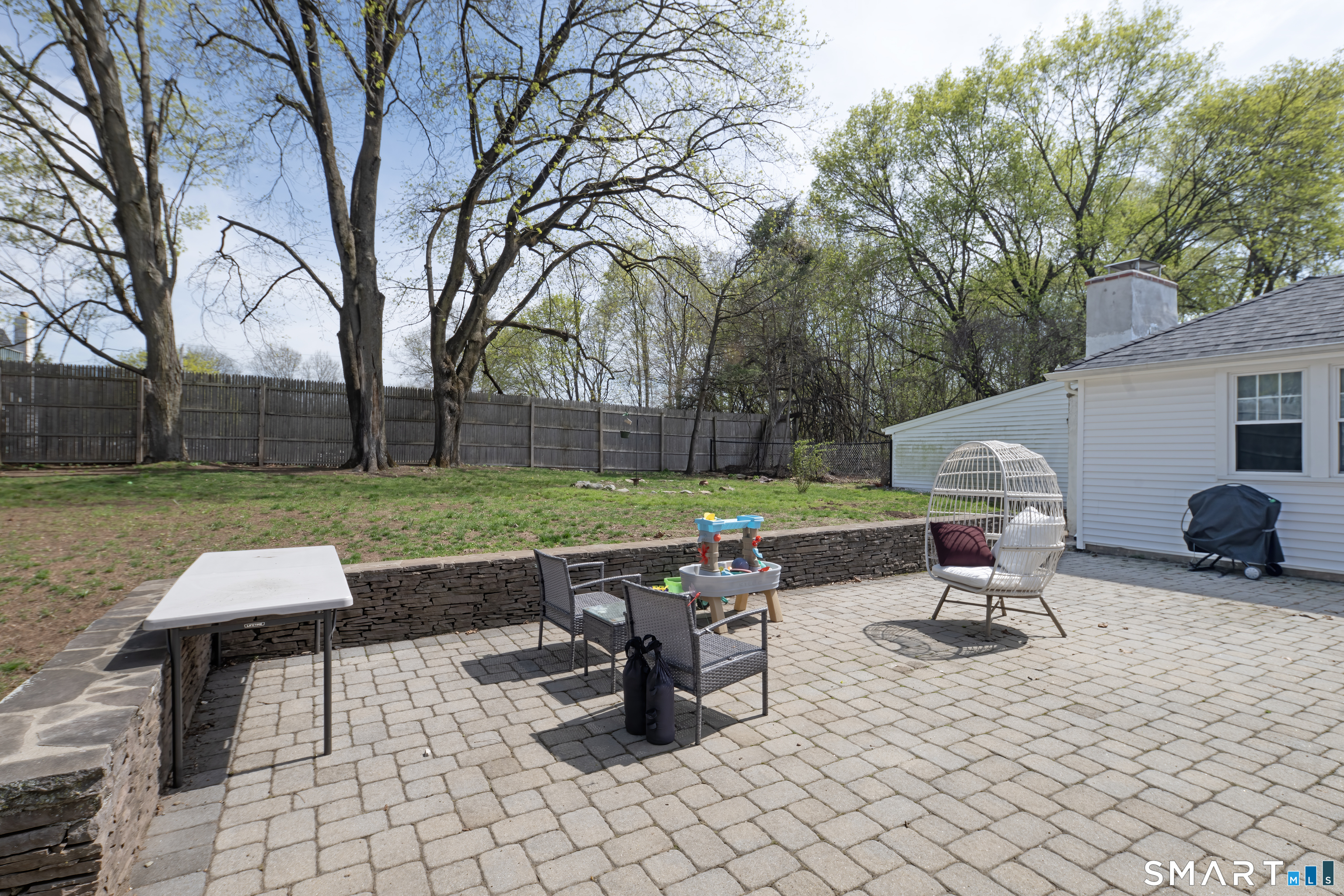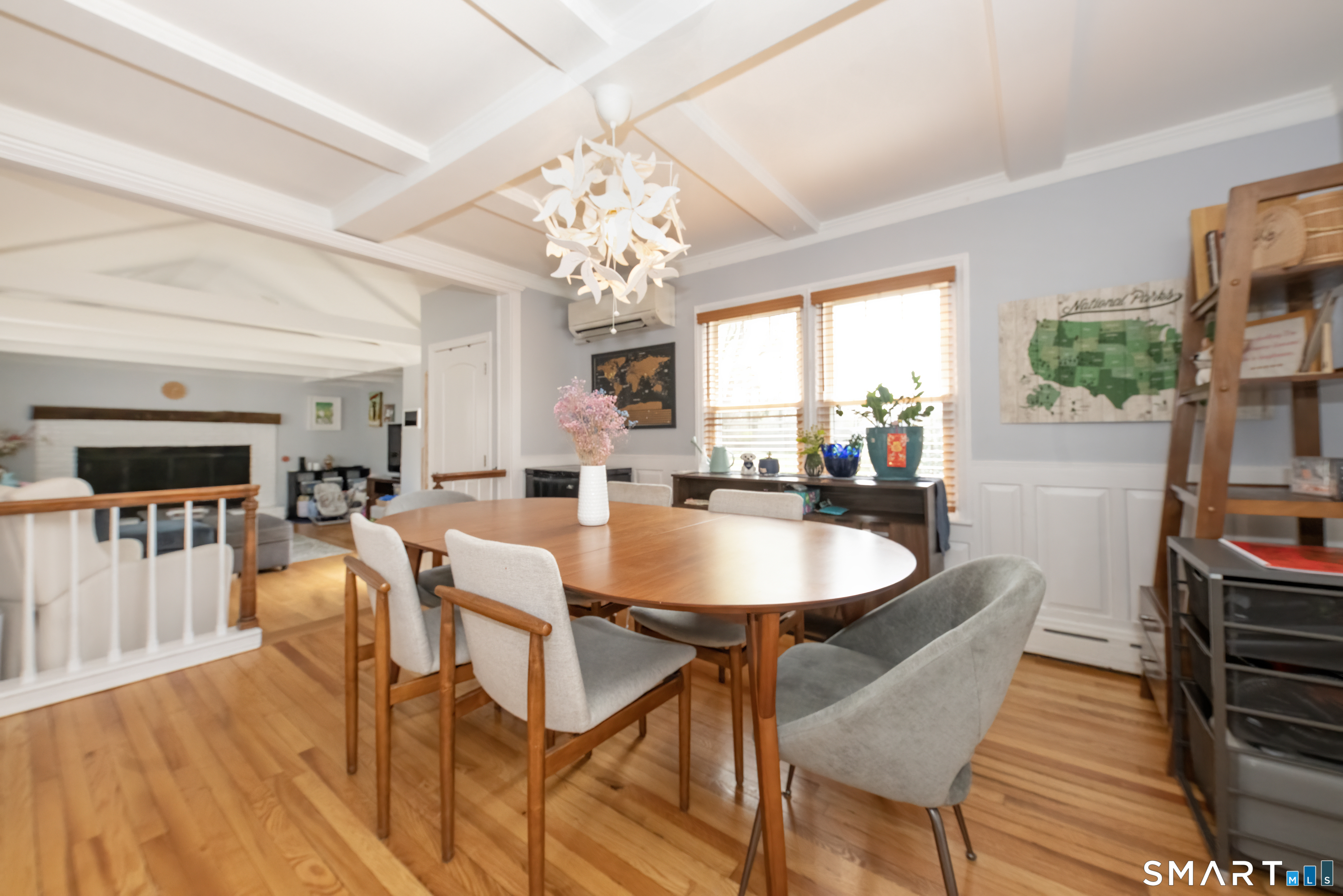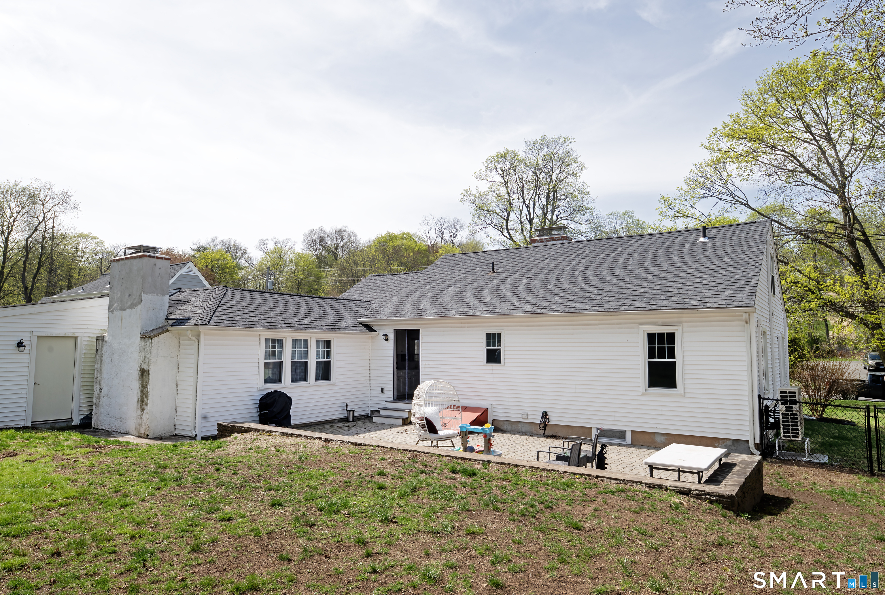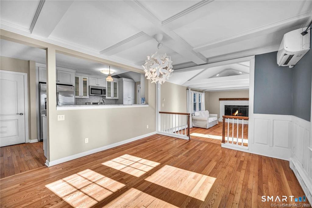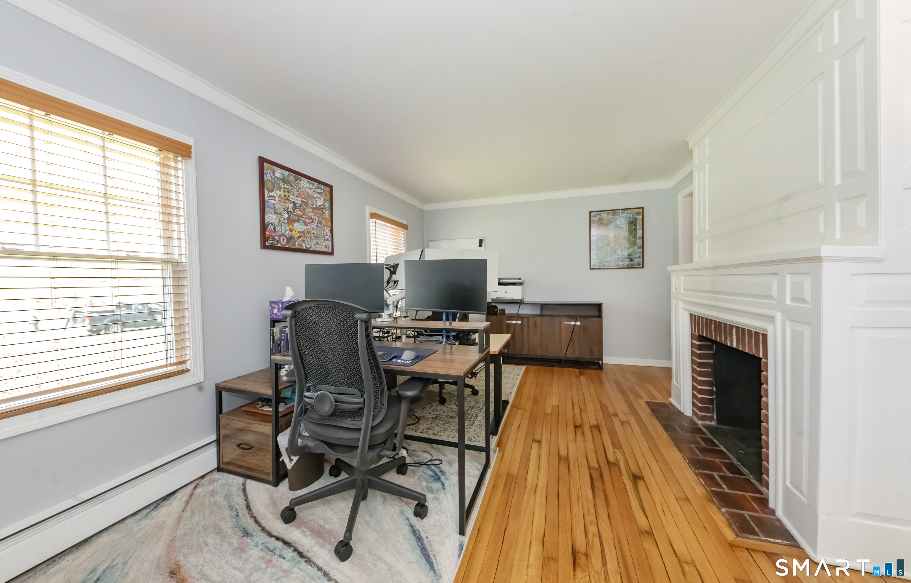 Welcome to 338 South Elm St. Just a few blocks from Wallingford's Center, you'll find this charming, spacious, updated Cape that is designed to impress! Seamless hardwood floors extend throughout the home. The thoughtful floorplan lends itself to single-level living if needed, starting with the large, formal living room (currently being used as an office) with multiple windows, raised-panel wainscoting and a cozy fireplace. The open-concept kitchen, dining room and den is perfect for entertaining. Stylish white kitchen cabinetry, stainless appliances and expansive granite counters are a chef's dream with direct access to a dining area that leads to a light-filled family room accented with a vaulted, beamed ceiling and a huge fireplace. The home's main level also has a separate wing with the primary bedroom, attached bath and walk-in closet. A second bedroom with a full, hall bath completes the first floor. A staircase leads to the third bedroom on the second floor. The long hallway has exposed brick walls and lots of closets under the eaves. This upper level also has a bonus space for a playroom or additional storage. The home is sited on a level lot with a tandem garage, stone patio and a fenced yard. Enjoy the great location with proximity to parks, restaurants, shopping and major highways. This inviting Cape will be a great place to call home!