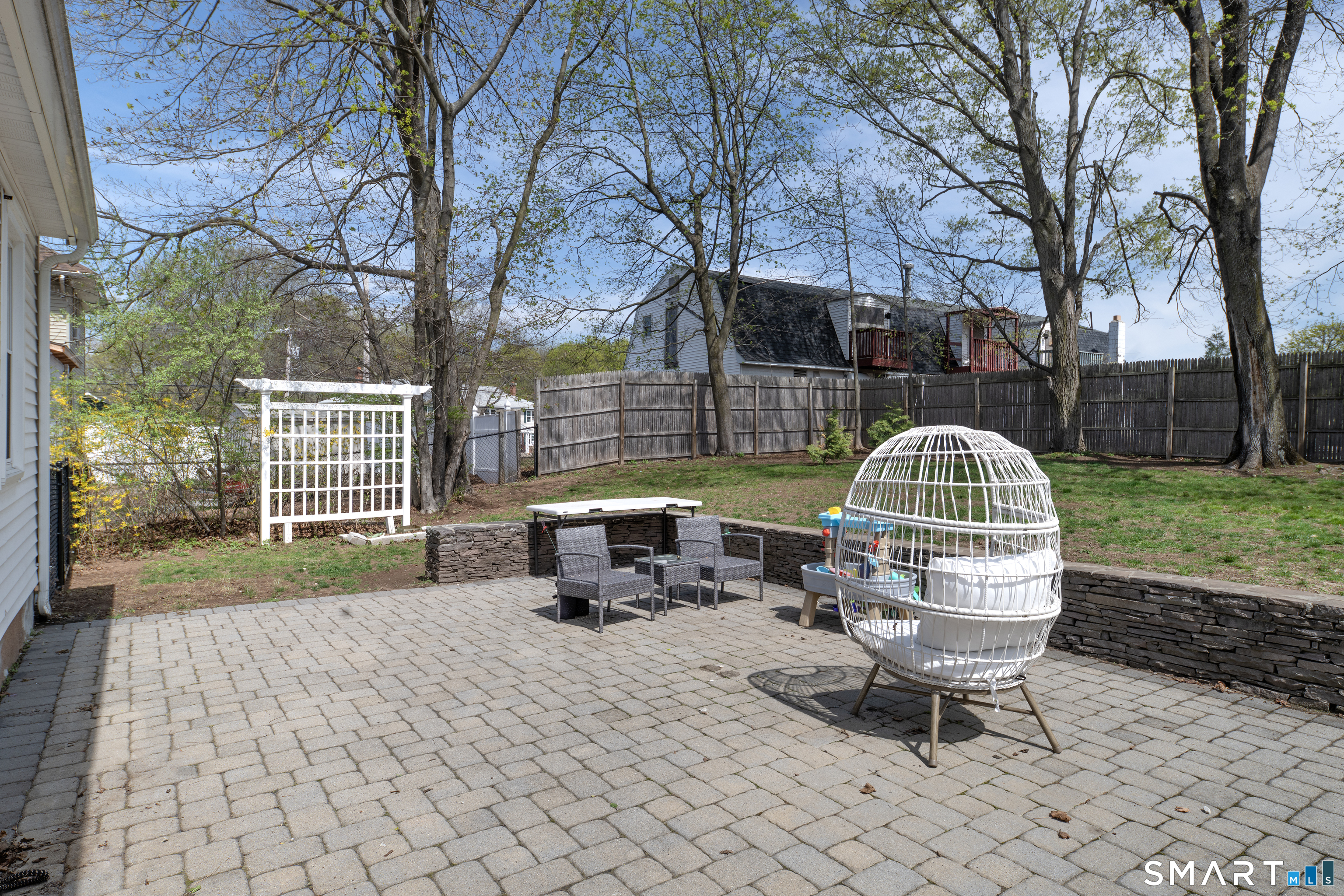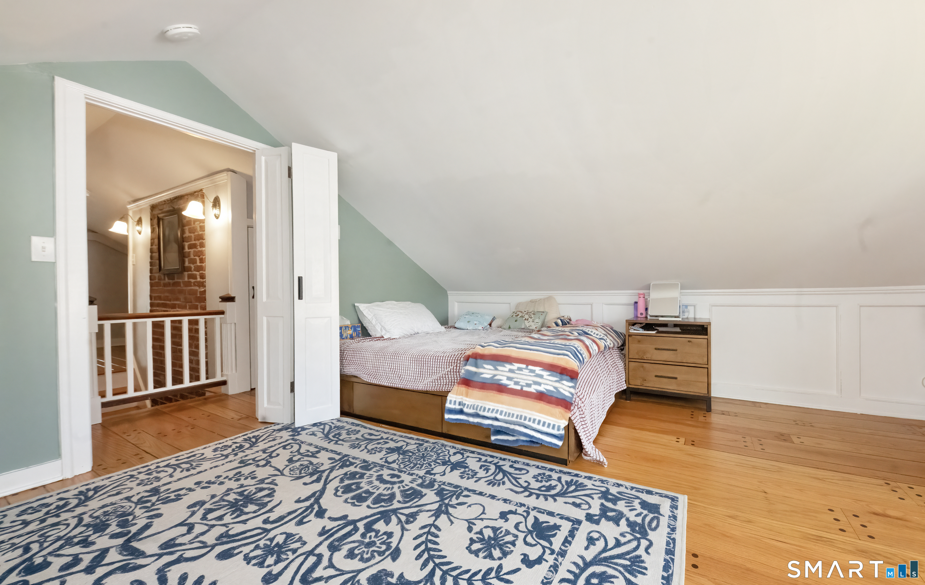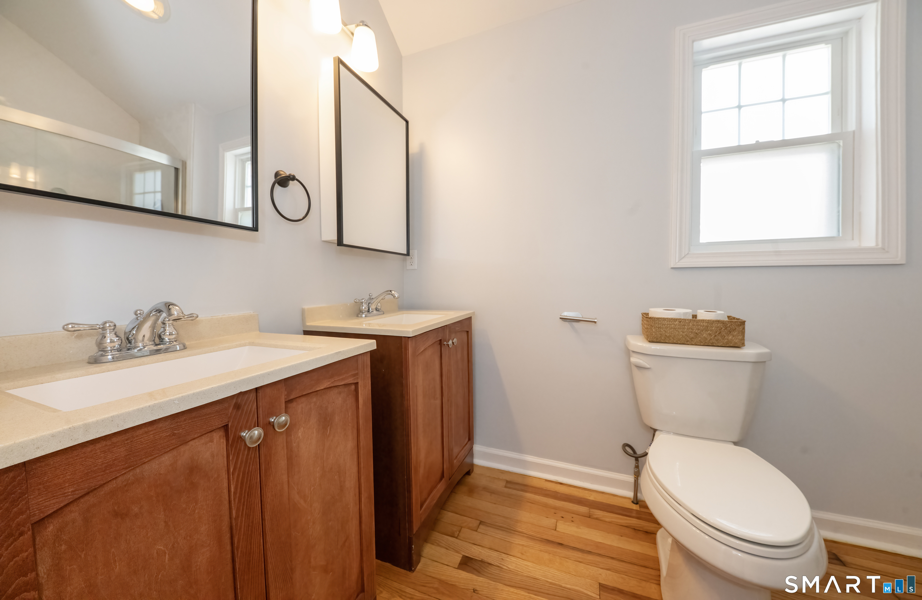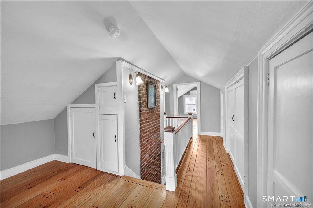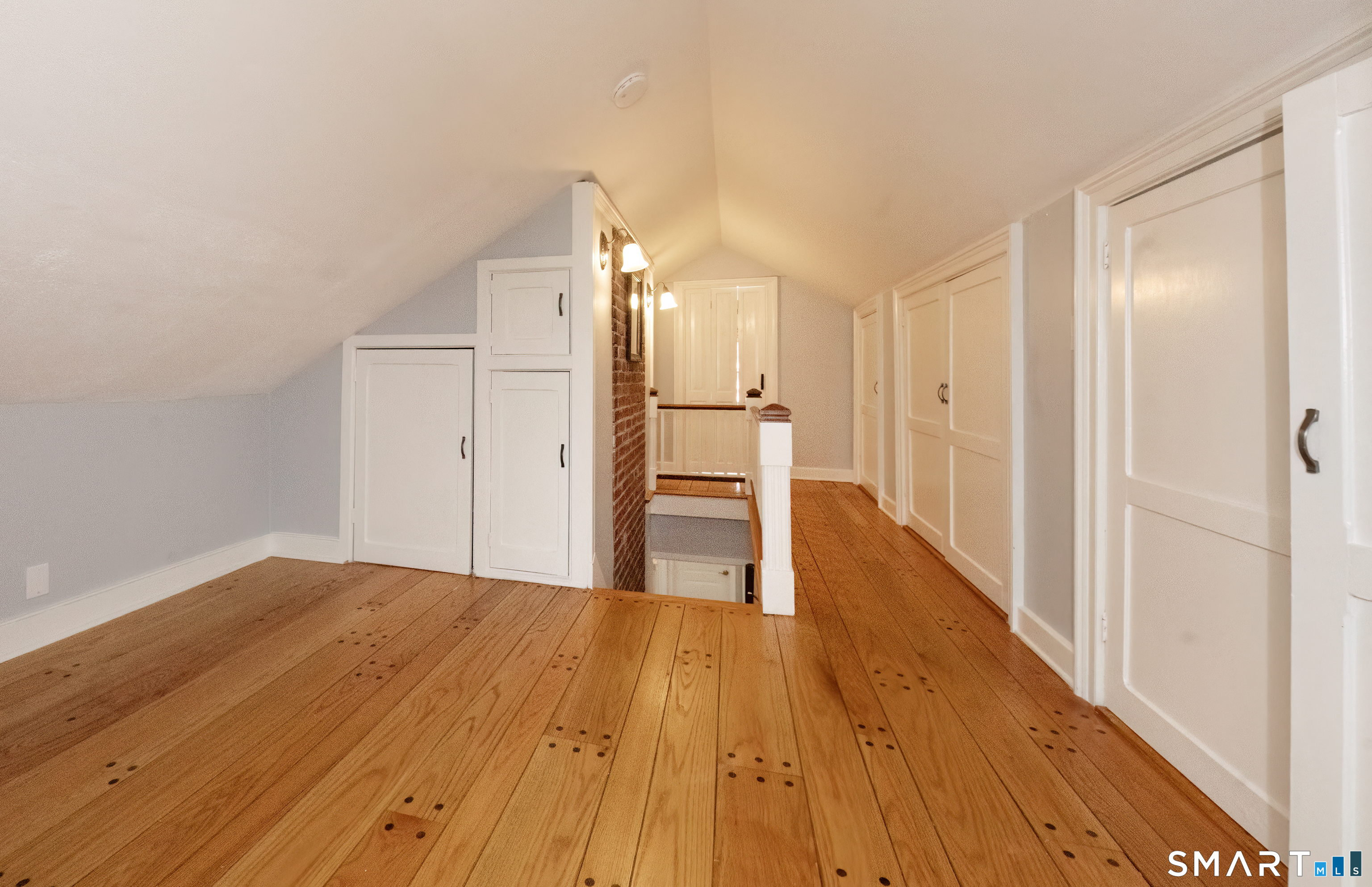 Welcome to 338 South Elm St. Just a few blocks from Wallingford's Center, you'll find this charming, spacious, updated Cape that is designed to impress! Seamless hardwood floors extend throughout the home. The thoughtful floorplan lends itself to single-level living if needed, starting with the large, formal living room (currently being used as an office) with multiple windows, raised-panel wainscoting and a cozy fireplace. The open-concept kitchen, dining room and den is perfect for entertaining. Stylish white kitchen cabinetry, stainless appliances and expansive granite counters are a chef's dream with direct access to a dining area that leads to a light-filled family room accented with a vaulted, beamed ceiling and a huge fireplace. The home's main level also has a separate wing with the primary bedroom, attached bath and walk-in closet. A second bedroom with a full, hall bath completes the first floor. A staircase leads to the third bedroom on the second floor. The long hallway has exposed brick walls and lots of closets under the eaves. This upper level also has a bonus space for a playroom or additional storage. The home is sited on a level lot with a tandem garage, stone patio and a fenced yard. Enjoy the great location with proximity to parks, restaurants, shopping and major highways. This inviting Cape will be a great place to call home!