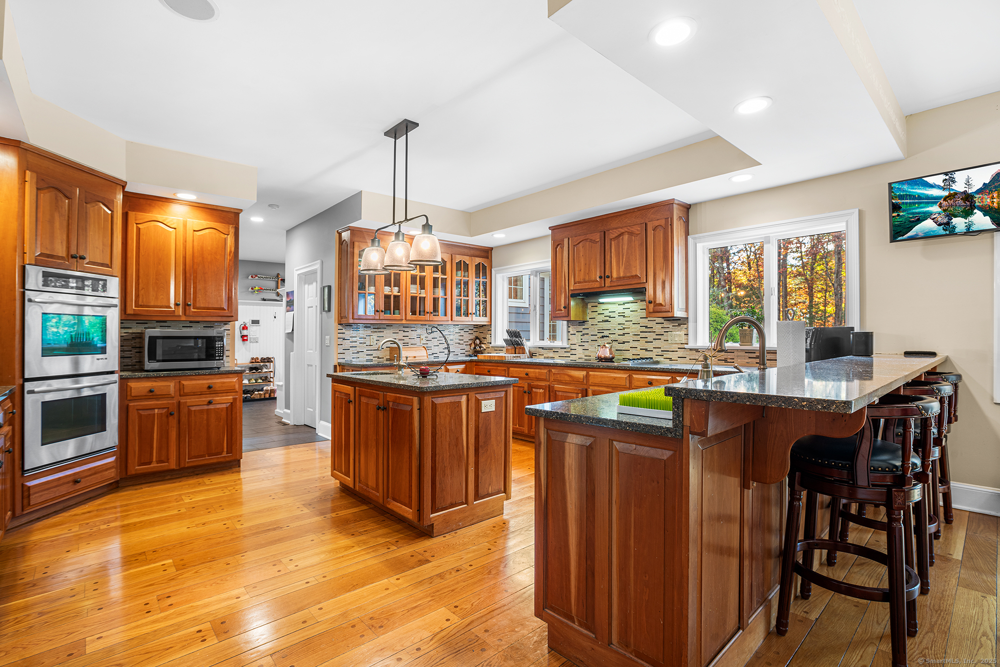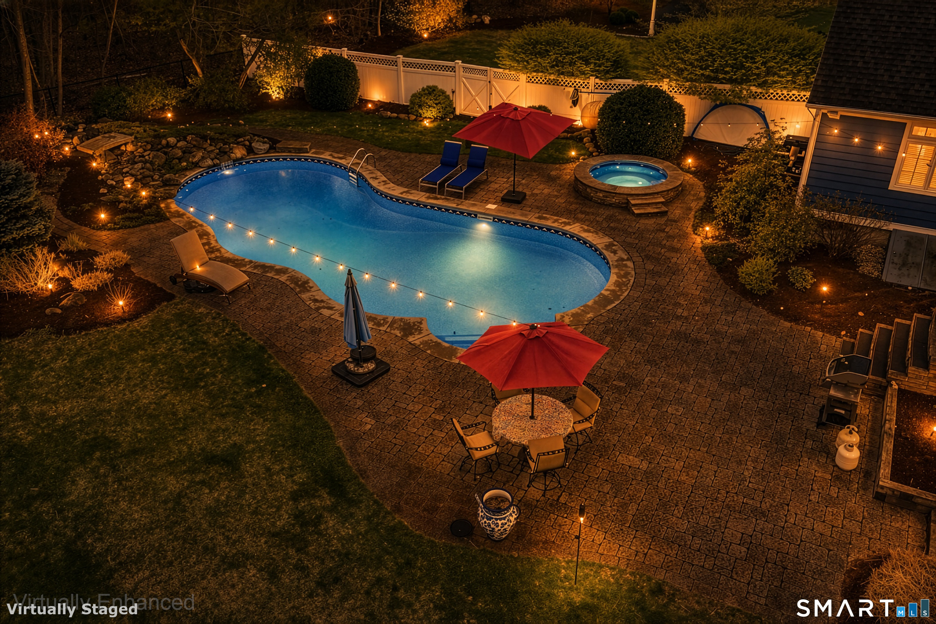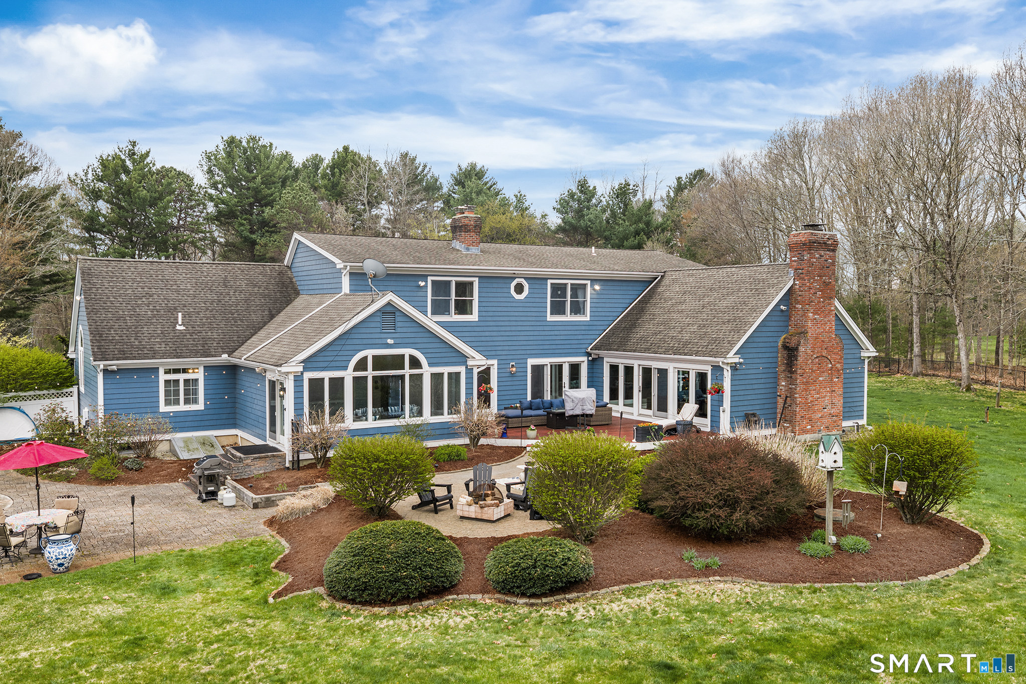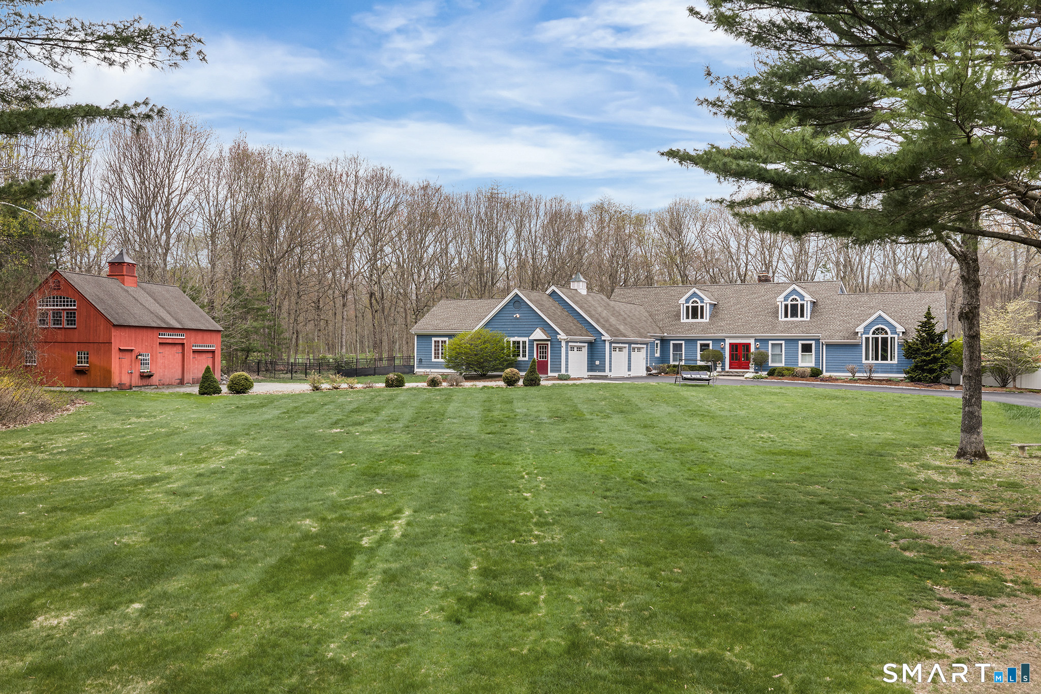 Experience luxury living on Blackledge Country Club in this 6BR, 4.5BA Cape Cod retreat offering nearly 6,000 sq ft of elegant living space. Inside, enjoy vaulted ceilings, three fireplaces, detailed millwork, and a chef's kitchen with cherry cabinetry, quartz counters, high-end appliances, island, and breakfast bar. The main-level primary suite features vaulted ceilings, radiant heated tile, granite vanities, steam shower, and a private office with fireplace. A three-season porch with bar opens to the heated pool and spa, perfect for entertaining. Additional highlights include a custom gym, guest suite, multiple decks and patios, and a finished lower level. Major upgrades include a full HVAC replacement (2024) with high-efficiency systems, upgraded water softener, enhanced smart security with cameras and sensors, and smart exterior lighting. A whole-house generator provides reliable backup power. Outside, enjoy a post-and-beam barn with loft, 25-zone irrigation, stone walls, mature landscaping, and full fencing for privacy. A true resort-style escape combining timeless craftsmanship, technology, and tranquility.