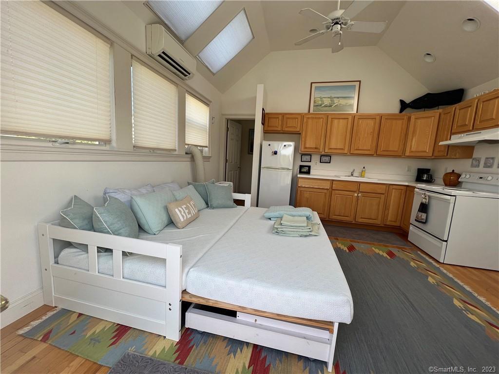 Furnished Studio Apartment- Available May 15th- Sept 15th. The studio is graced with stunning views of Fence Creek, providing a picturesque backdrop to your daily living. Just steps away from the sandy shores of East Wharf Beach and the vibrant Madison town center, you'll have the best of coastal living right at your fingertips. Designed with efficiency in mind, the space features a queen bed that effortlessly converts into a couch, allowing you to maximize the living area during the day. The apartment is equipped with a modern split system to ensure your comfort in all temperatures, and the convenience of an in-unit washer and dryer adds to the ease of your stay. Whether you're seeking a tranquil spot to unwind or a base to explore the local attractions, this studio apartment is the ideal choice for a memorable summer getaway. Embrace the laid-back lifestyle of Madison and let the gentle sea breeze and calming creek views soothe your soul.