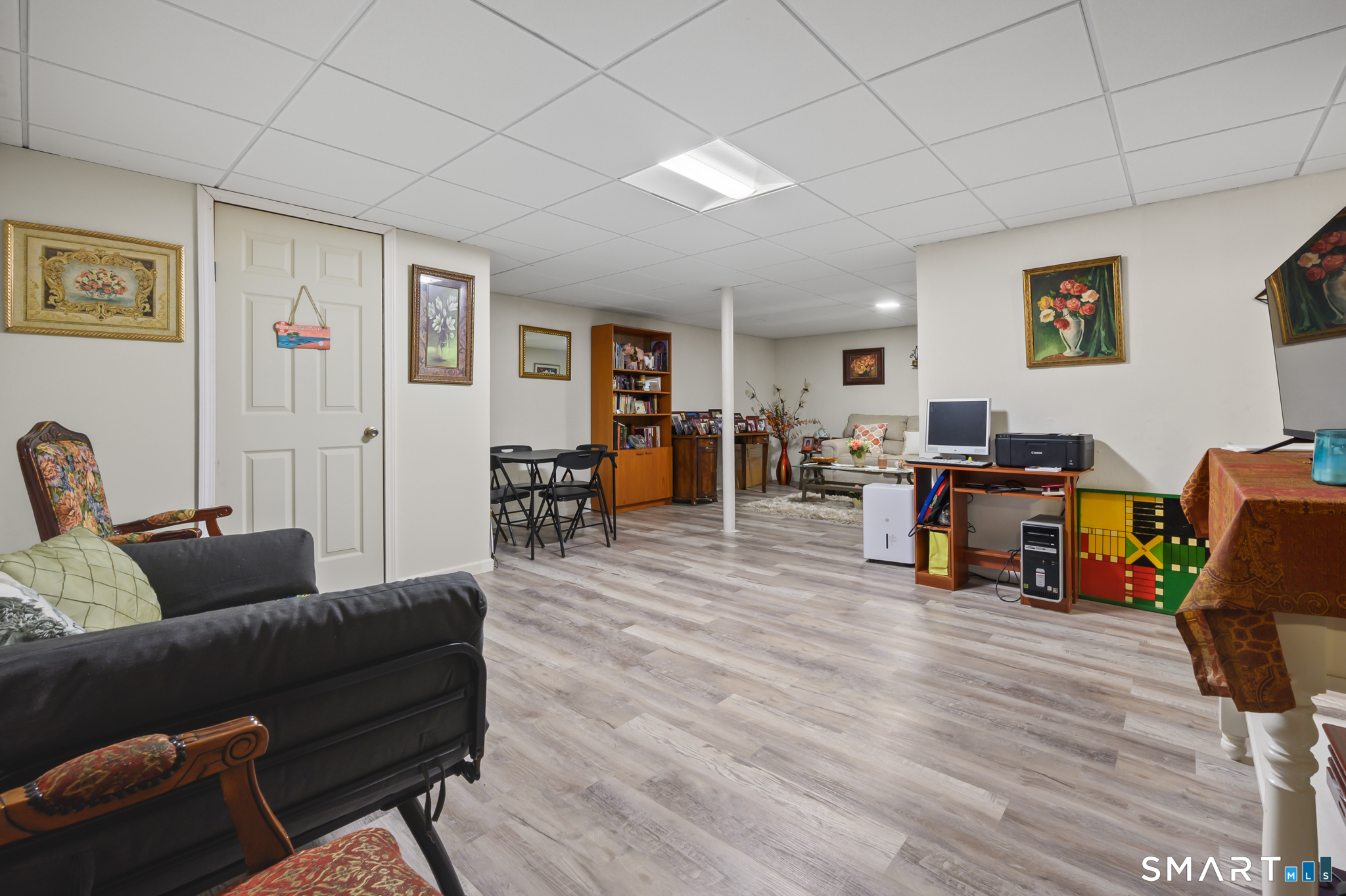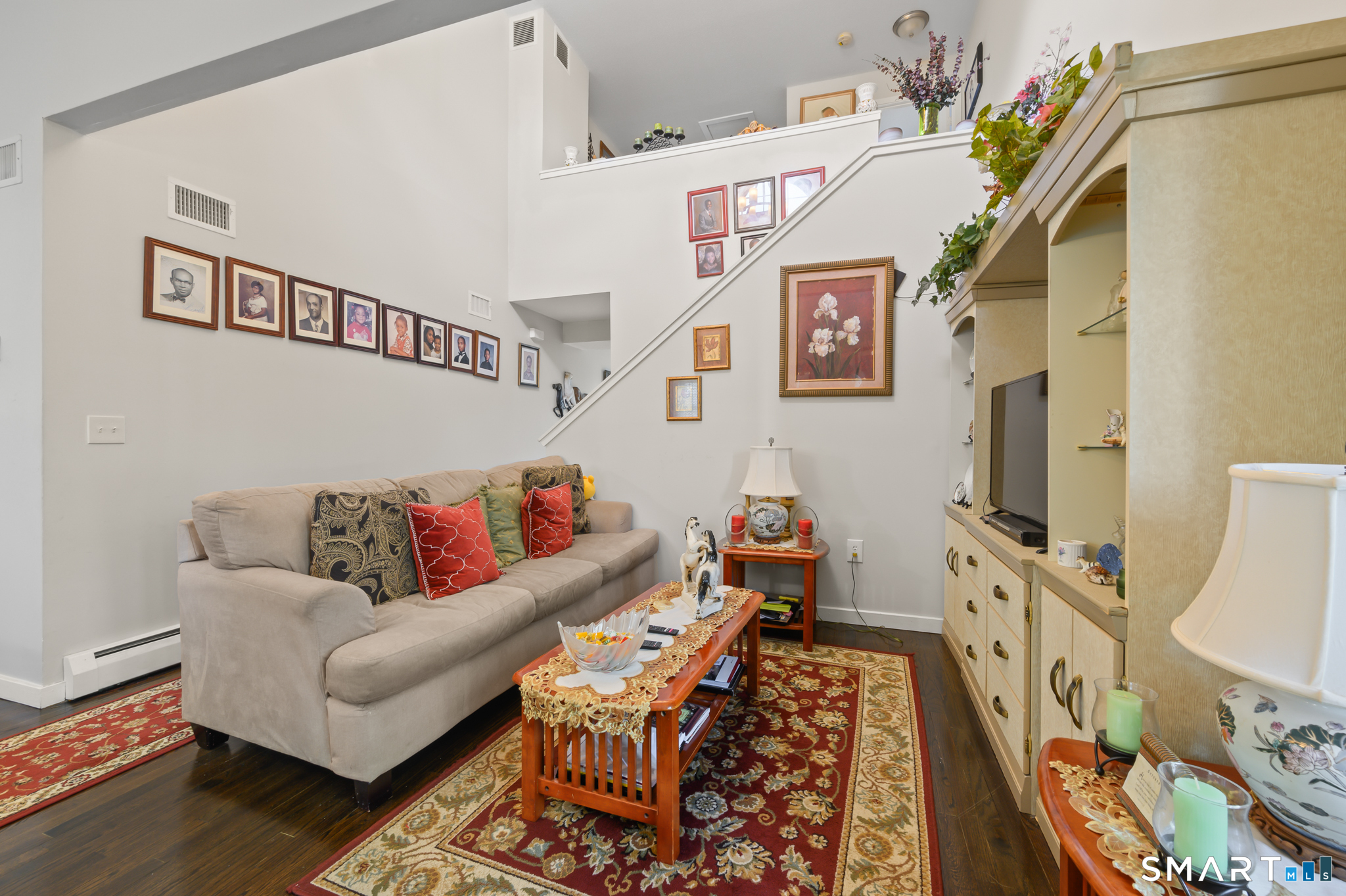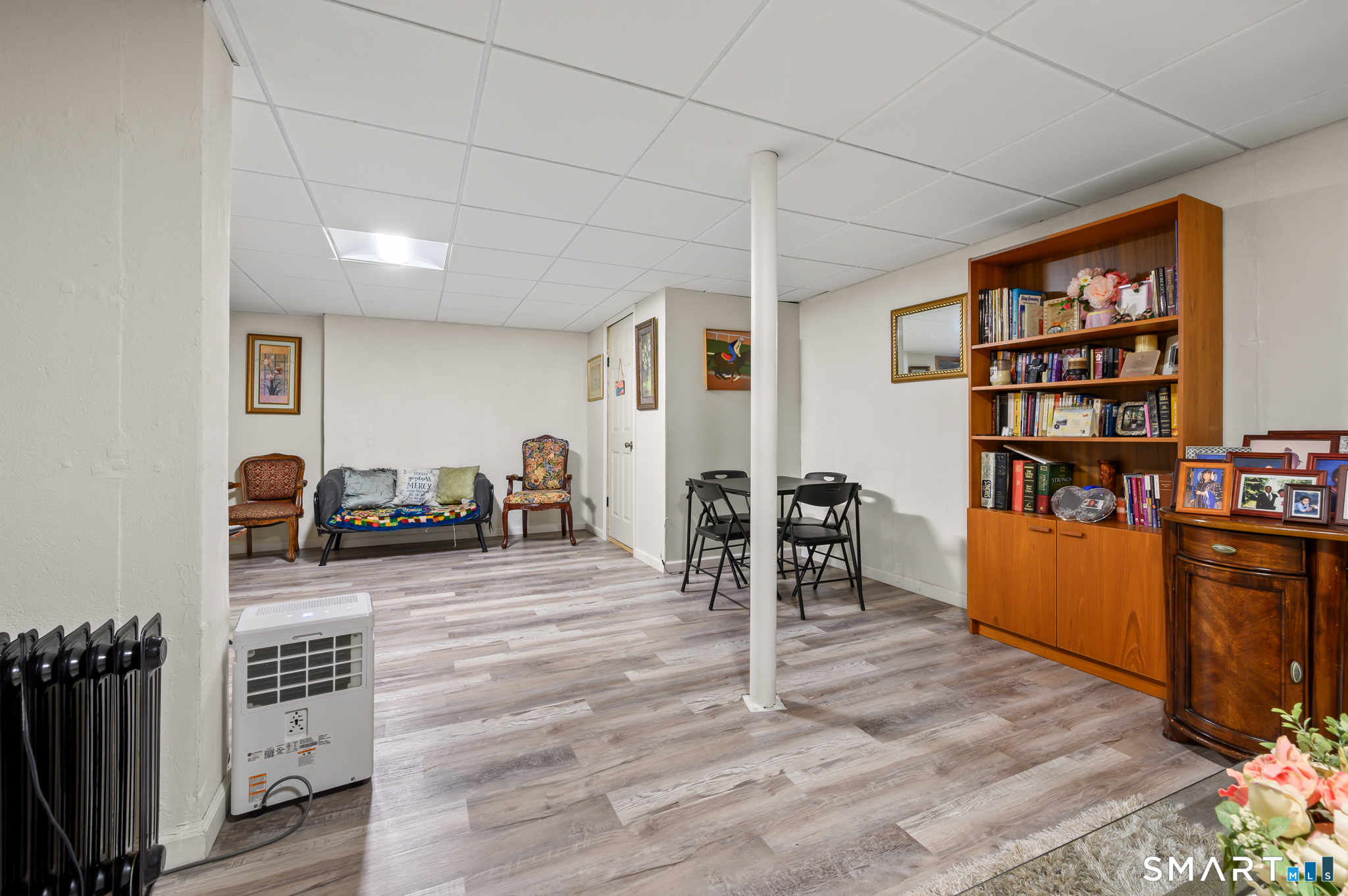 Welcome to 10 Linden Court. This stunning end unit townhouse is located in desirable Mills Pond. Spacious open floor plan features a living room with cathedral ceiling, fireplace, and slider to a private deck, perfect for an evening cocktail or entertaining. Hardwood floors flow through the main living and dining areas. The white kitchen offers a large island with seating, stainless steel appliances, gas stove, and pantry closet. This home offers true one floor living. The first floor includes a master suite with walk-in closet, full bath and convenient first-floor laundry. Upstairs, a versatile loft with luxury vinyl plank flooring and an updated half bath provides ideal space for a home office, guest area or den. The lower lever with 2 finished rooms and full bath can be used as a workout space, family room, or an additional bedroom. Other features include an attached one-car garage, gas heat, and gas hot water. Unit is located at the end of a cul-de-sac. Complex hosts an inground pool, basketball court and more. Located on the Bloomfield/Simsbury line, less than 5 miles to I-91 and less than 20 minutes to Bradley Airport. Do not miss out on this one, come see it today!